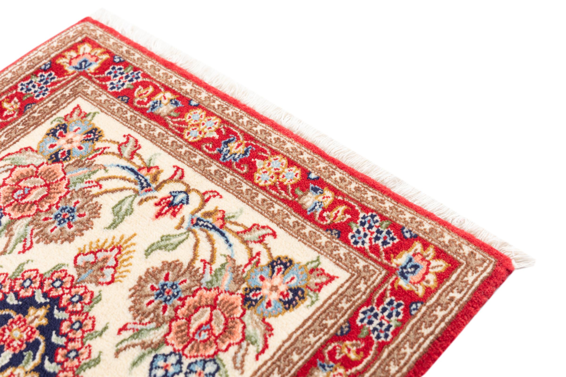 Nr.dywanu: 297929008651 Wielkość: 90x58 cm Grubość: ok. 10 mm Gęstość tkania: 320 000 - 360 000 / m² Przetwarzanie: Ręcznie tkane Włosie: Wełna ręcznie przędzona Osnowa: Bawełna Pochodzenie: Persja / Iran Wiek: nowe Waga: ok. 2 kg Ilość w magazynie: Unikalny - Tylko 1 na składzie