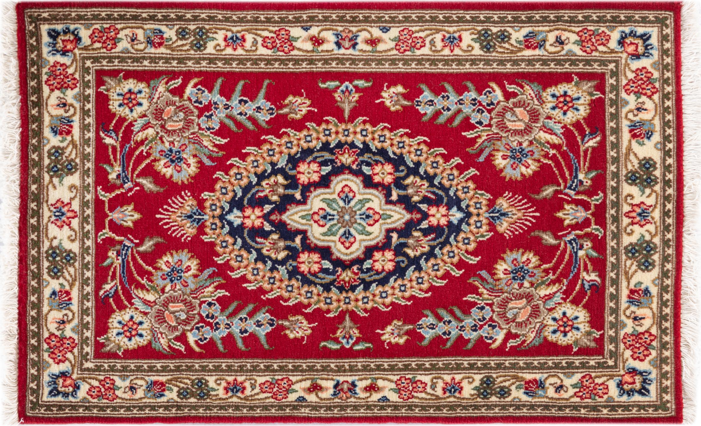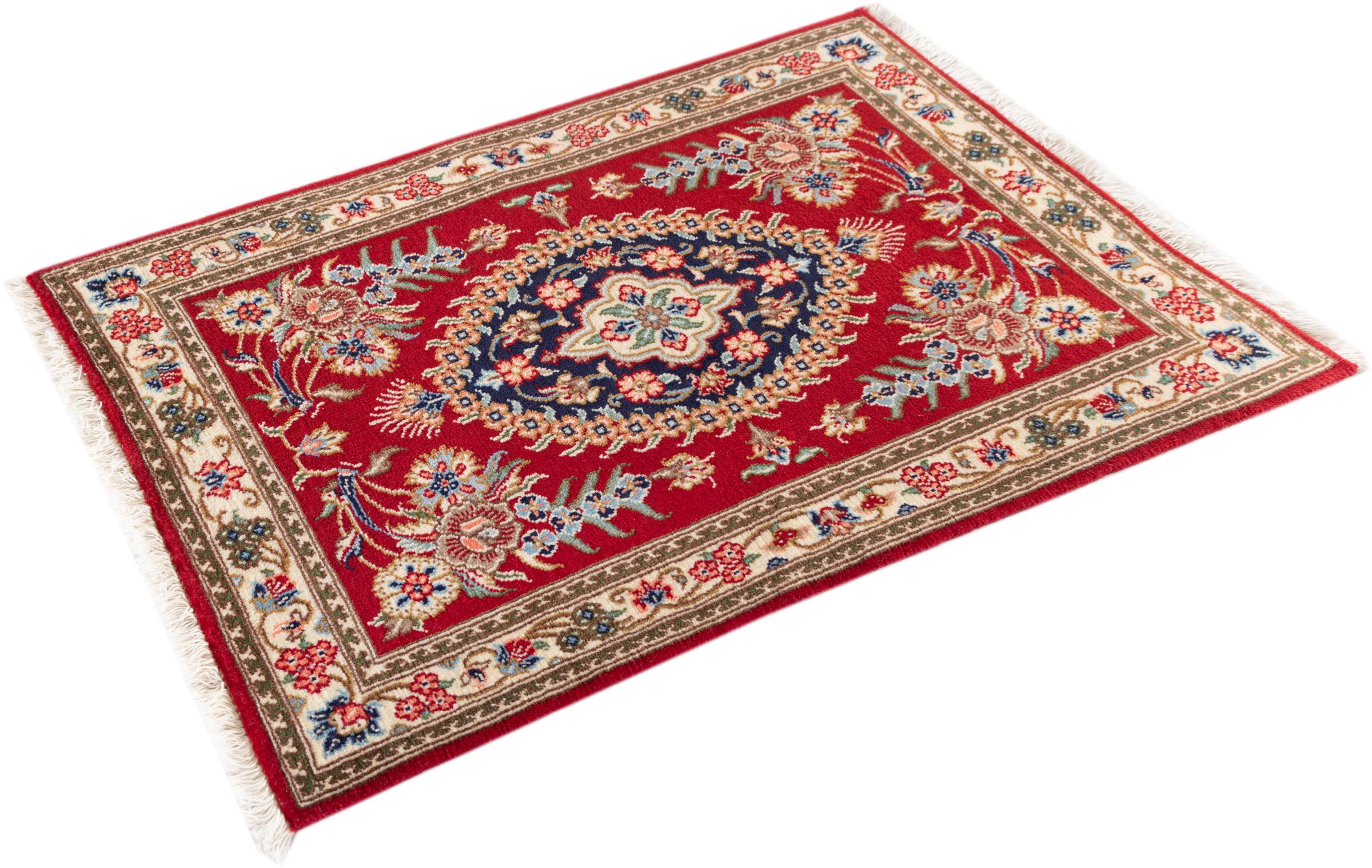 Nr.dywanu: 297959008650 Wielkość: 90x58 cm Grubość: ok. 10 mm Gęstość tkania: 320 000 - 360 000 / m² Przetwarzanie: Ręcznie tkane Włosie: Wełna ręcznie przędzona Osnowa: Bawełna Pochodzenie: Persja / Iran Wiek: nowe Waga: ok. 2 kg Ilość w magazynie: Unikalny - Tylko 1 na składzie