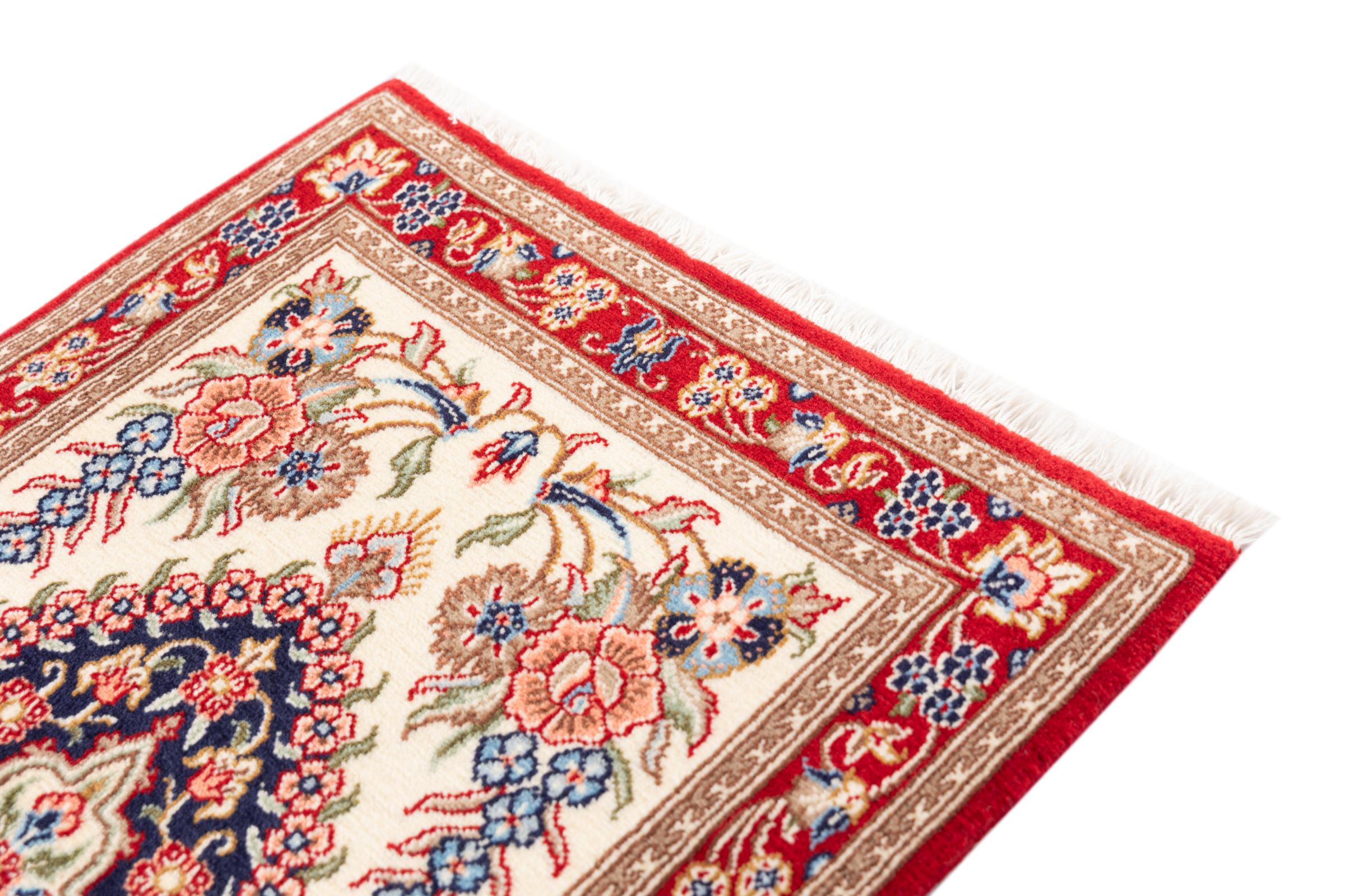 Nr.dywanu: 297924008639 Wielkość: 90x60 cm Grubość: ok. 10 mm Gęstość tkania: 320 000 - 360 000 / m² Przetwarzanie: Ręcznie tkane Włosie: Wełna ręcznie przędzona Osnowa: Bawełna Pochodzenie: Persja / Iran Wiek: nowe Waga: ok. 2 kg Ilość w magazynie: Unikalny - Tylko 1 na składzie