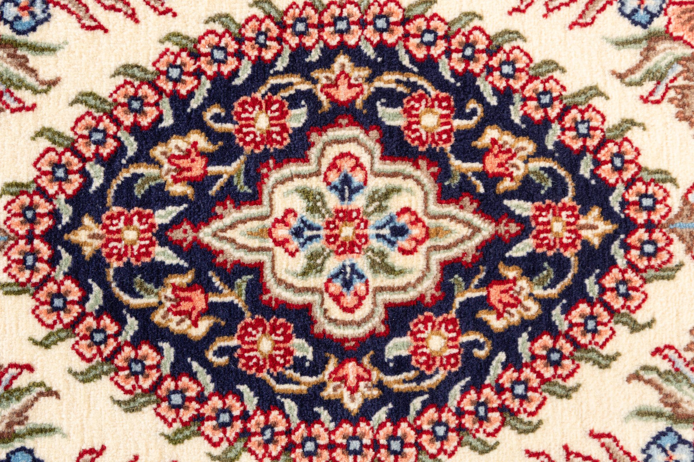Dywan ten wykonany jest z ręcznie formowanej wełny owczej najwyższej jakości. Zwłaszcza w Iranie (była Persja), Afganistanie i Pakistanie wełna jest nadal ręcznie skręcana, zanim rozpocznie się faktyczne wiązanie dywanu. Wełna sprawdziła się jako naturalny i niezwykle wytrzymały materiał na przestrzeni wieków. Ma m.in. właściwości antybrudzące i termoizolacyjne. Jednocześnie wełna jest nieporównywalnie miękka i ma naturalny połysk.