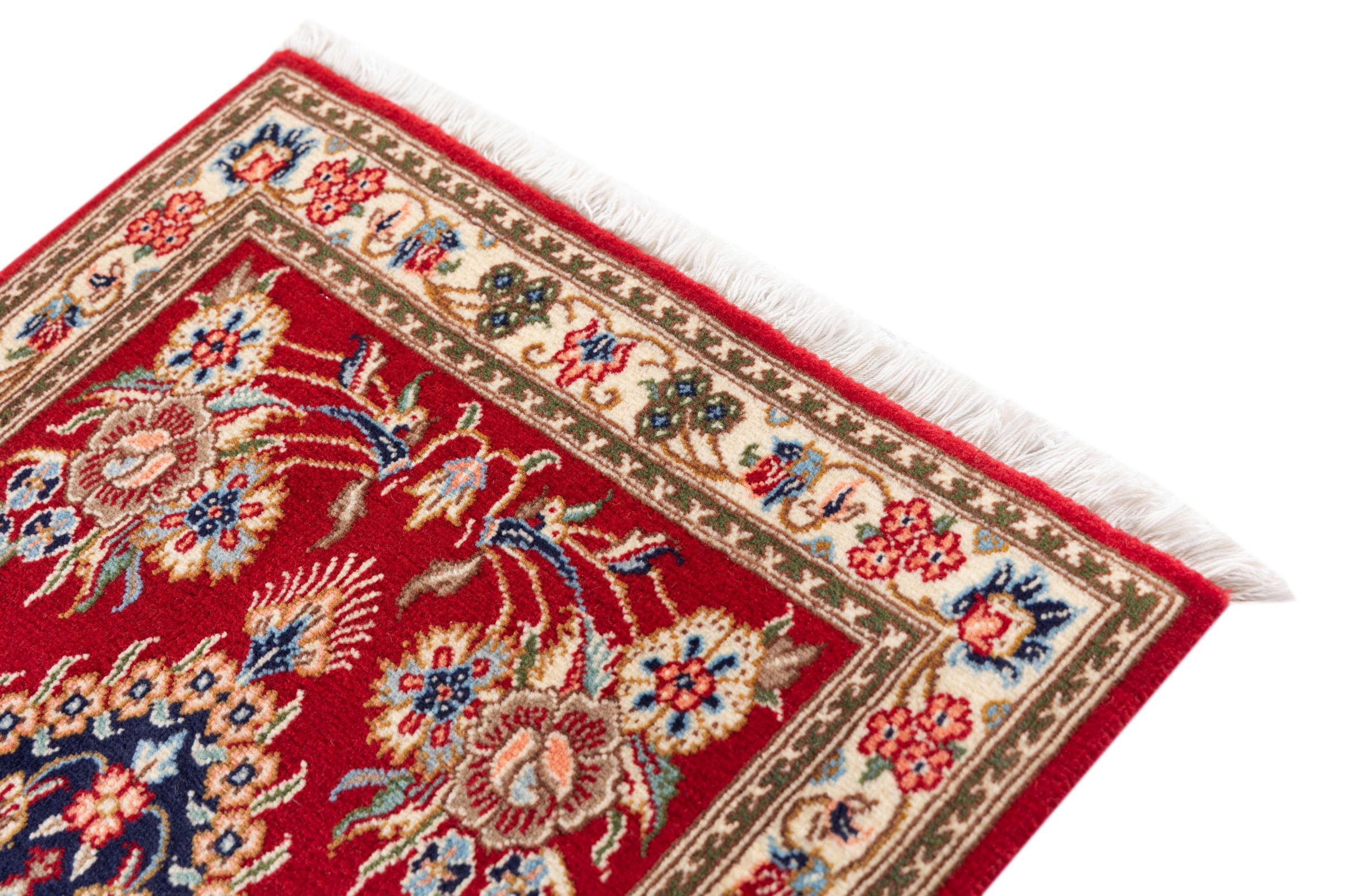 Nr.dywanu: 297958008649 Wielkość: 91x60 cm Grubość: ok. 10 mm Gęstość tkania: 320 000 - 360 000 / m² Przetwarzanie: Ręcznie tkane Włosie: Wełna ręcznie przędzona Osnowa: Bawełna Pochodzenie: Persja / Iran Wiek: nowe Waga: ok. 2 kg Ilość w magazynie: Unikalny - Tylko 1 na składzie