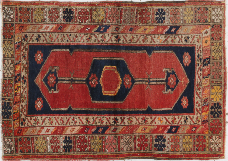 Nr.dywanu: 310070006661160 Wielkość: 159x111 cm Grubość: ok. 5 mm Gęstość tkania: 200 000 - 250 000 / m² Przetwarzanie: Ręcznie tkane Włosie: Wełna ręcznie przędzona Osnowa: Bawełna Stan / Konserwacja doskonały Pochodzenie: Turcja Wiek: Antyczny, starsze niż 80 lat Waga: ok. 6 kg Ilość w magazynie: Unikalny - Tylko 1 na składzie