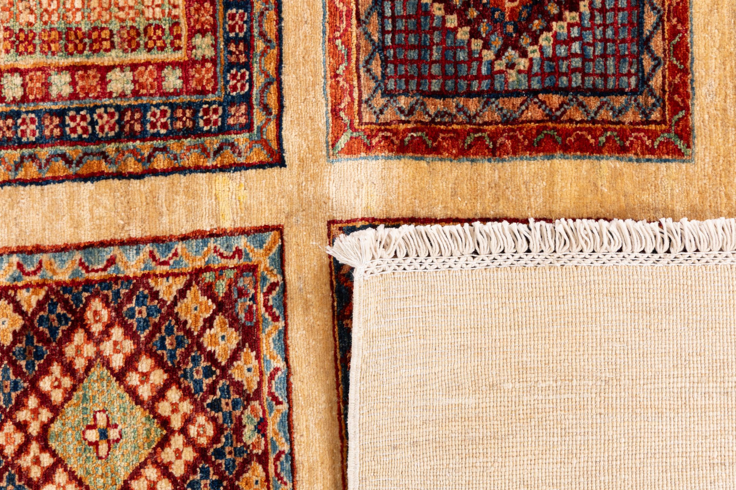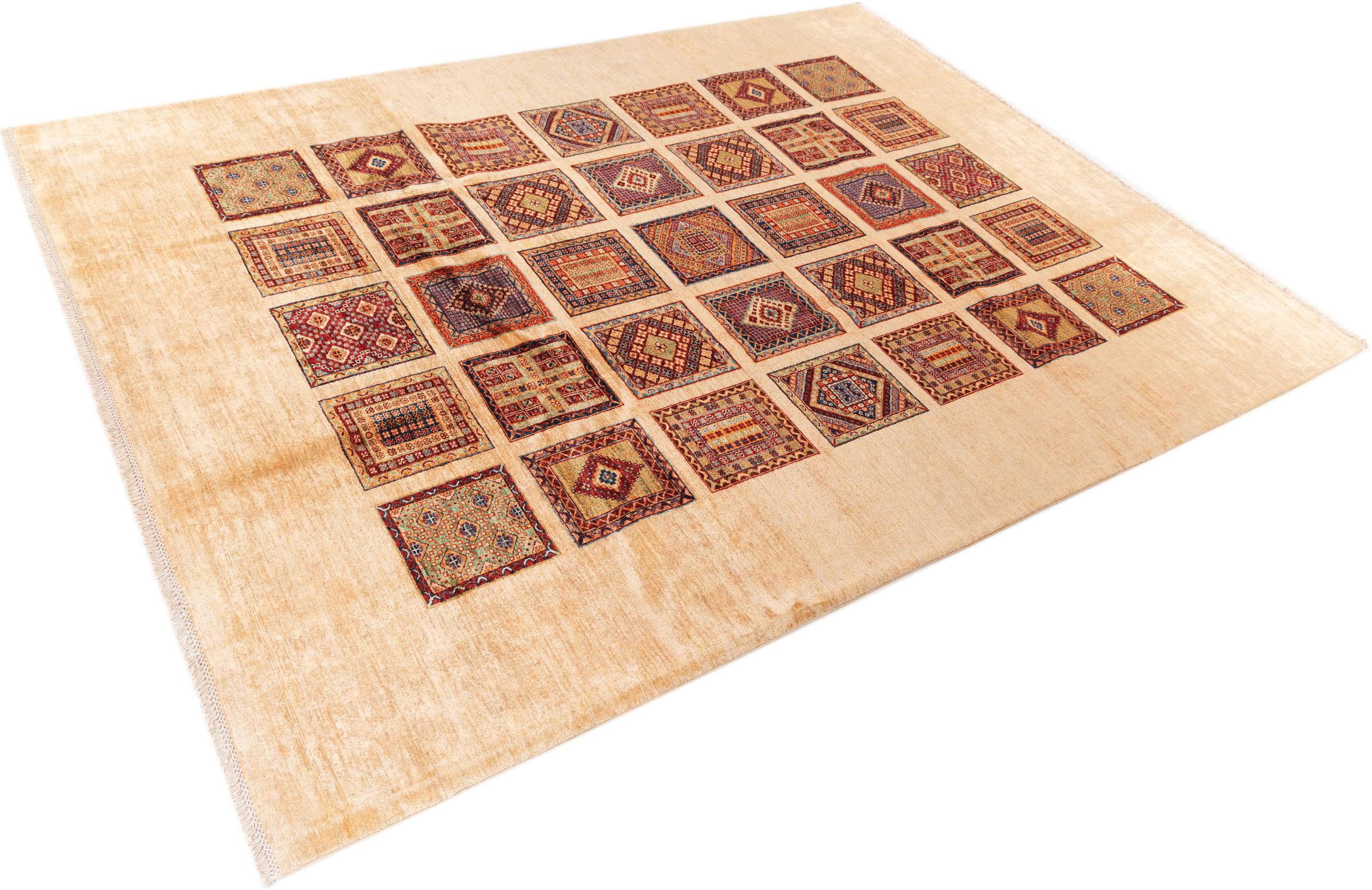 Ten dywan Arijana Bakhtiari wnosi naturę do twojego domu. Tradycyjne projektowanie ogrodów z perskich ogrodów inspiruje natychmiast. Tradycyjne motywy ogrodowe zawsze były popularne w kulturze orientalnej i można je znaleźć na różnych perskich dywanach. Ten orientalny dywan został wykonany ręcznie w Pakistanie z wysokiej jakości wełny owczej. Ręcznie wiązana jakość jest doceniana, gdy dotkniesz tego miękkiego rzemiosła.