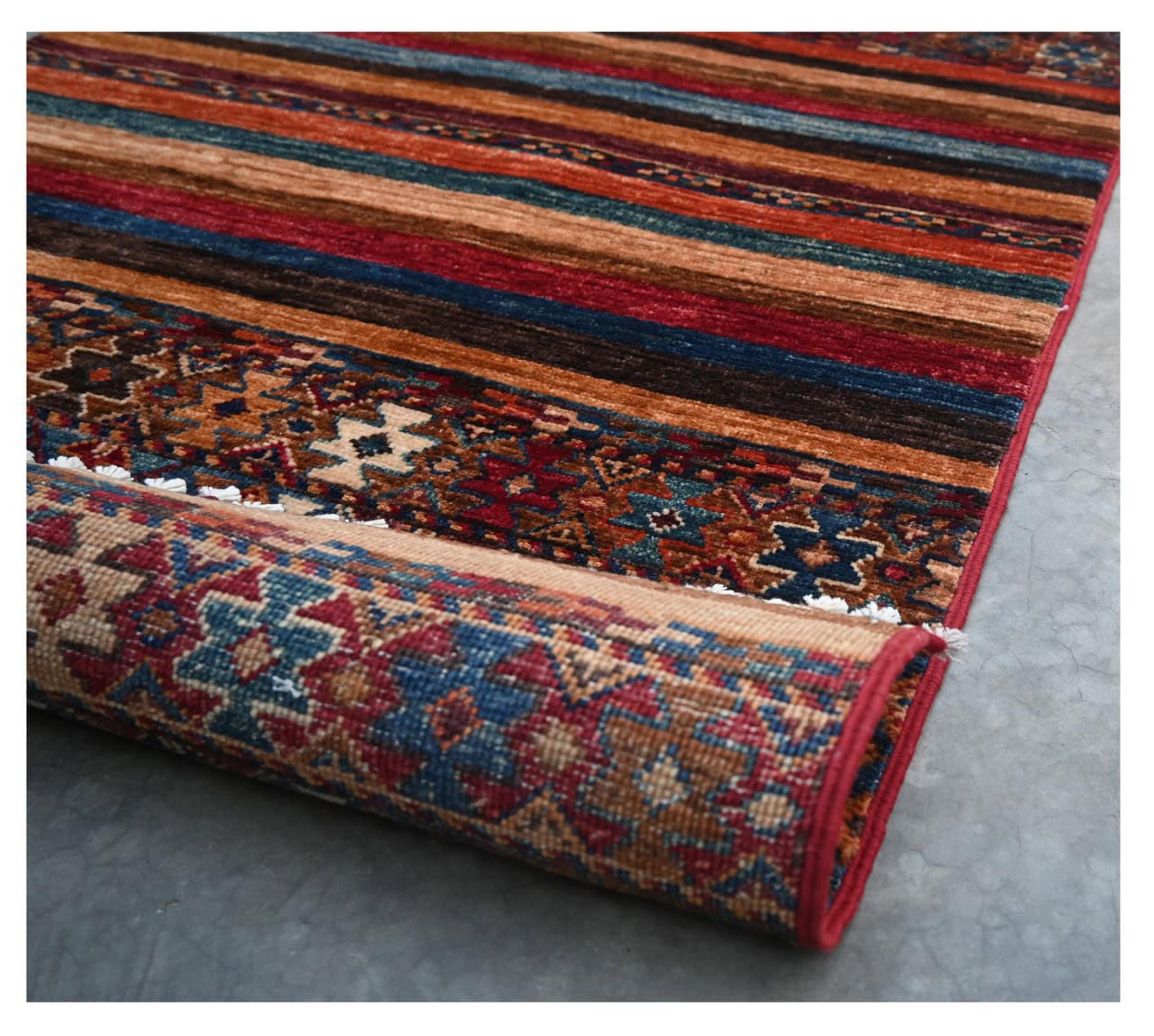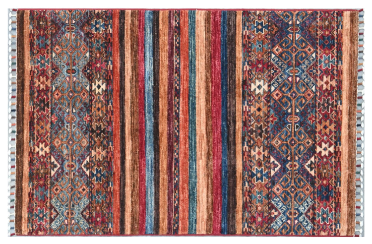 Nr.dywanu: 299388004228256 Wielkość: 125x79 cm Grubość: ok. 5 mm Gęstość tkania: 144 000 - 180 000 / m² Przetwarzanie: Ręcznie tkane Włosie: Wełna ręcznie przędzona Osnowa: Bawełna Pochodzenie: Afganistan Wiek: nowe Waga: ok. 3 kg Ilość w magazynie: Unikalny - Tylko 1 na składzie