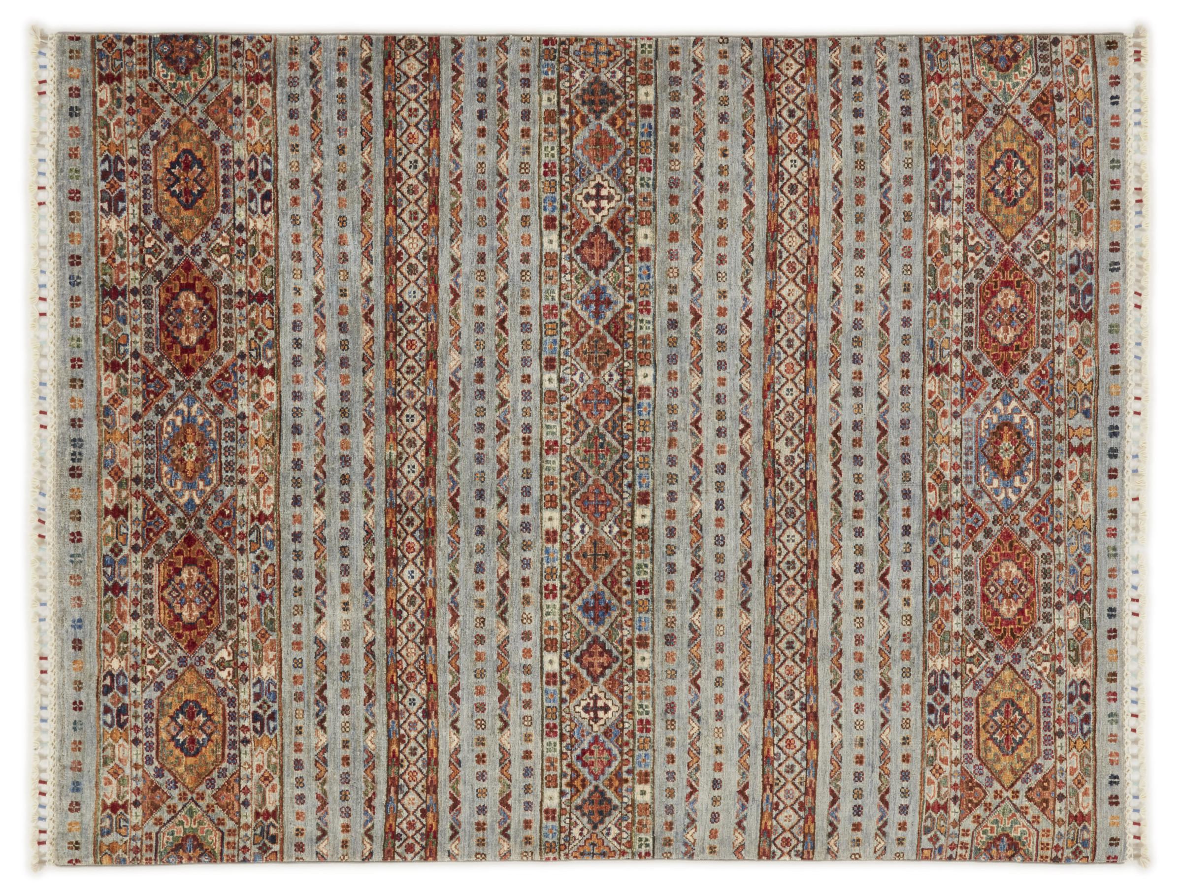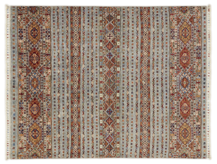 Nr.dywanu: 291833006145029 Wielkość: 194x152 cm Grubość: ok. 5 mm Gęstość tkania: 160 000 - 200 000 / m² Przetwarzanie: Ręcznie tkane Włosie: Wełna ręcznie przędzona Osnowa: Bawełna Pochodzenie: Afganistan Wiek: nowe Waga: ok. 10 kg Ilość w magazynie: Unikalny - Tylko 1 na składzie