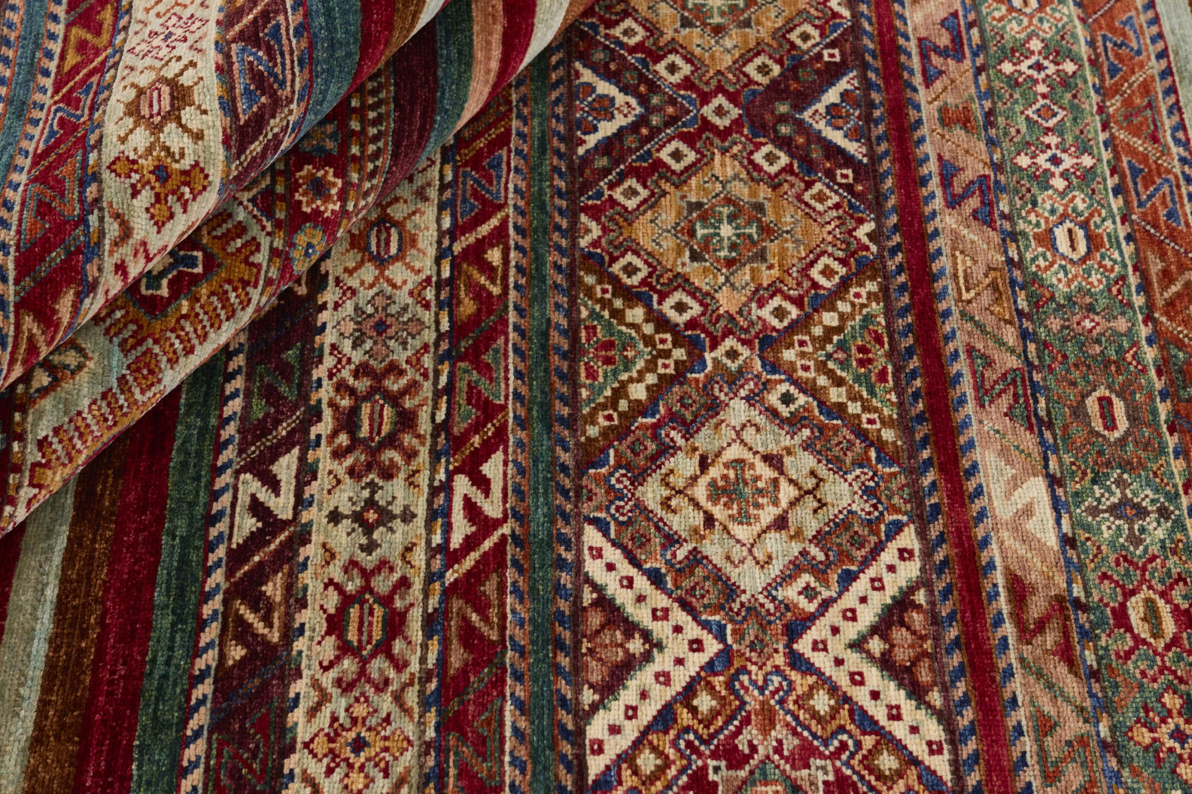 Ten dywan Arijana Shaal był ręcznie tkany w Pakistanie z najlepszym kunsztem. Obiecuje on bardzo wysoką jakość i tym samym oferuje długotrwałą przyjemność. Wzór w paski jest zróżnicowany i ekscytujący. Inspiracją był znany projekt Moharamatiego. Jeśli monochromatyczne dywany są dla Ciebie zbyt nudne, z pewnością będziesz zachwycony tym Arijana Shaal.