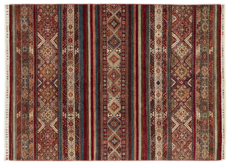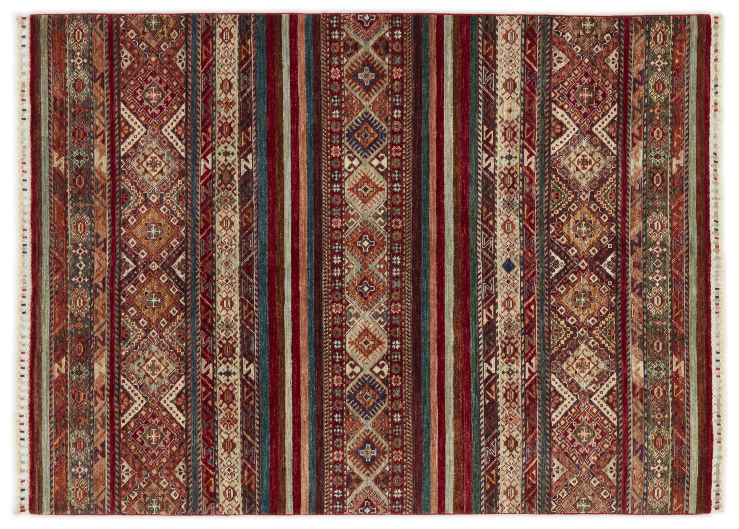 Nr.dywanu: 291832006877161 Wielkość: 207x156 cm Grubość: ok. 5 mm Gęstość tkania: 160 000 - 200 000 / m² Przetwarzanie: Ręcznie tkane Włosie: Wełna ręcznie przędzona Osnowa: Bawełna Pochodzenie: Afganistan Wiek: nowe Waga: ok. 11 kg Ilość w magazynie: Unikalny - Tylko 1 na składzie