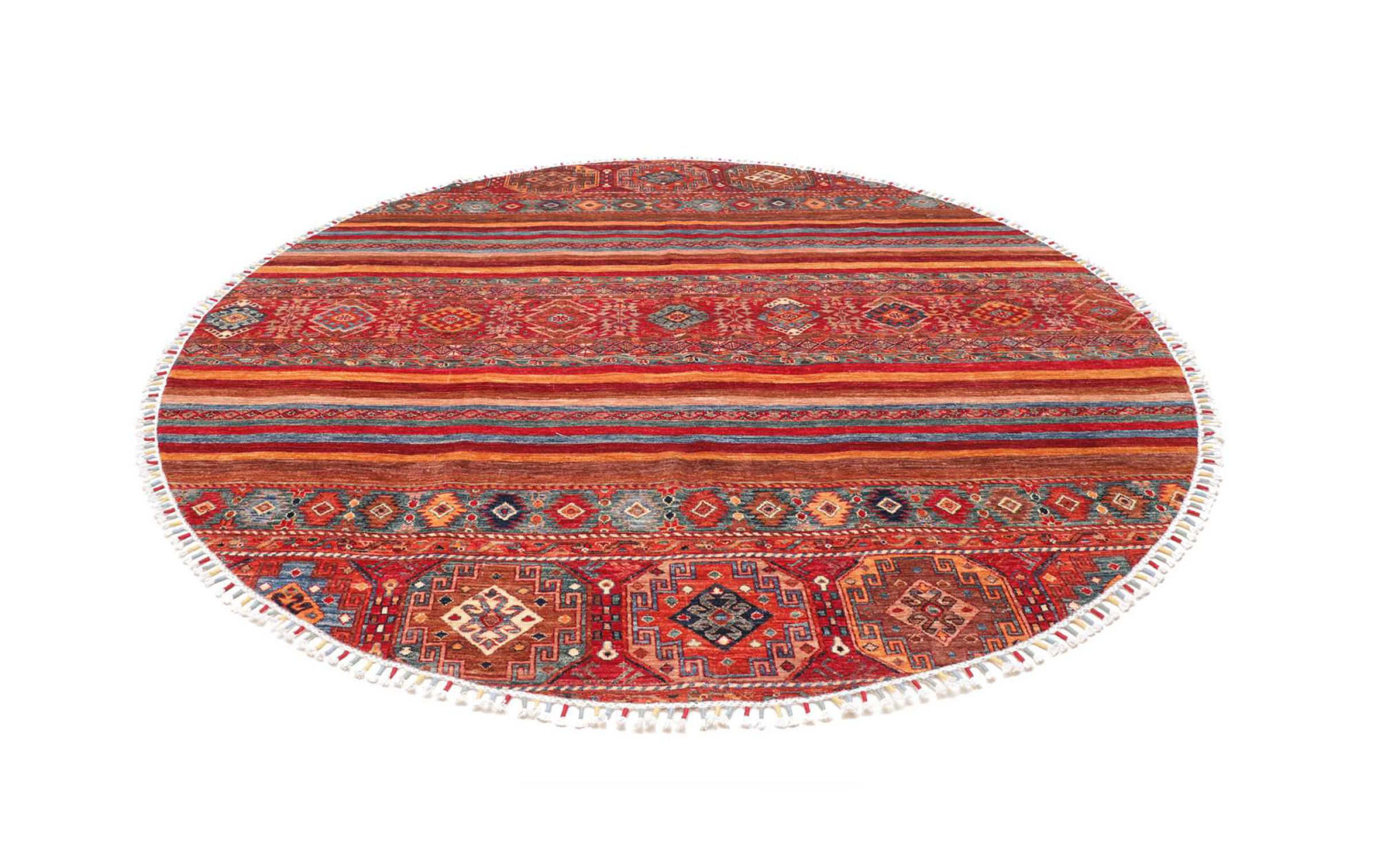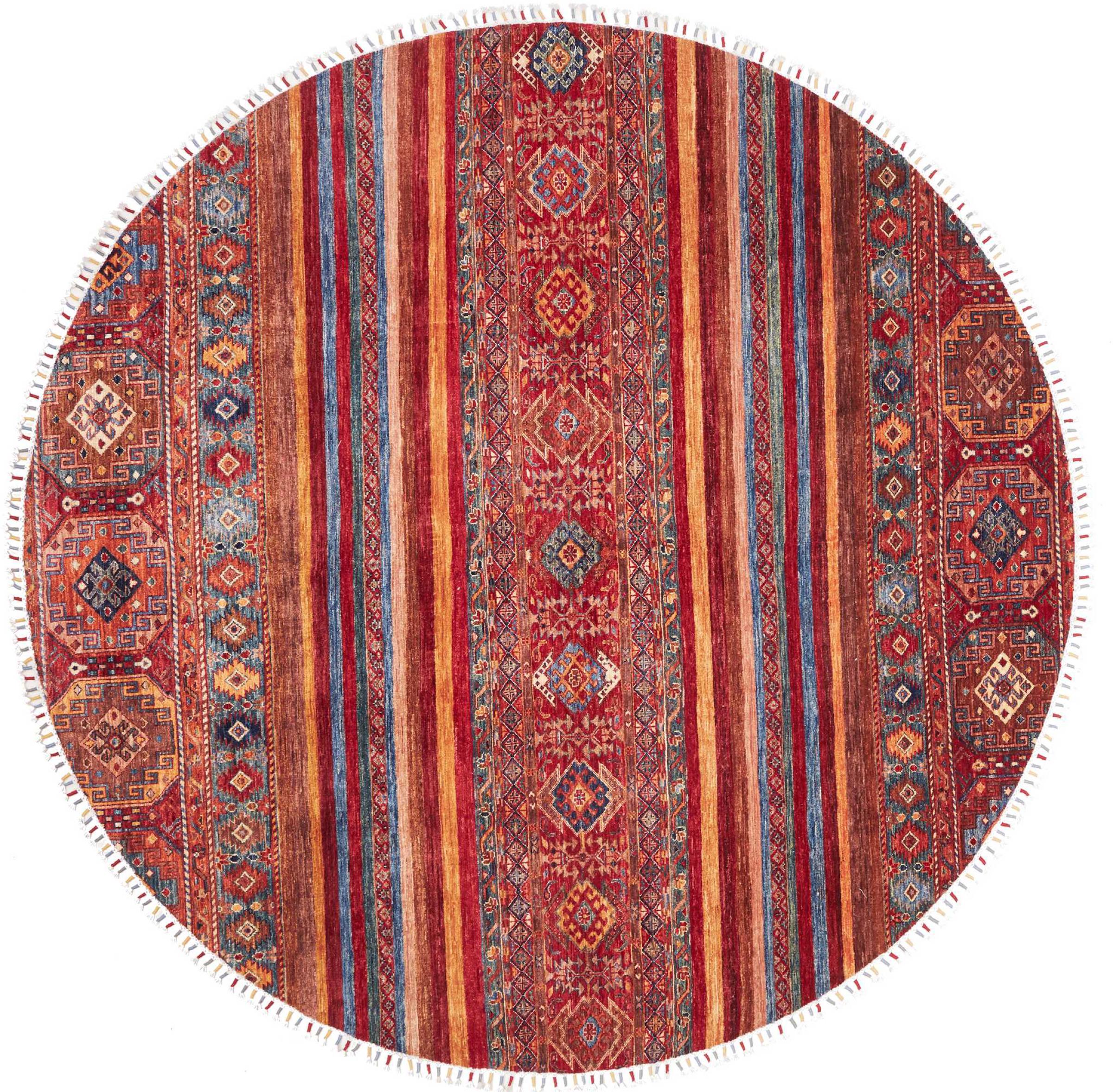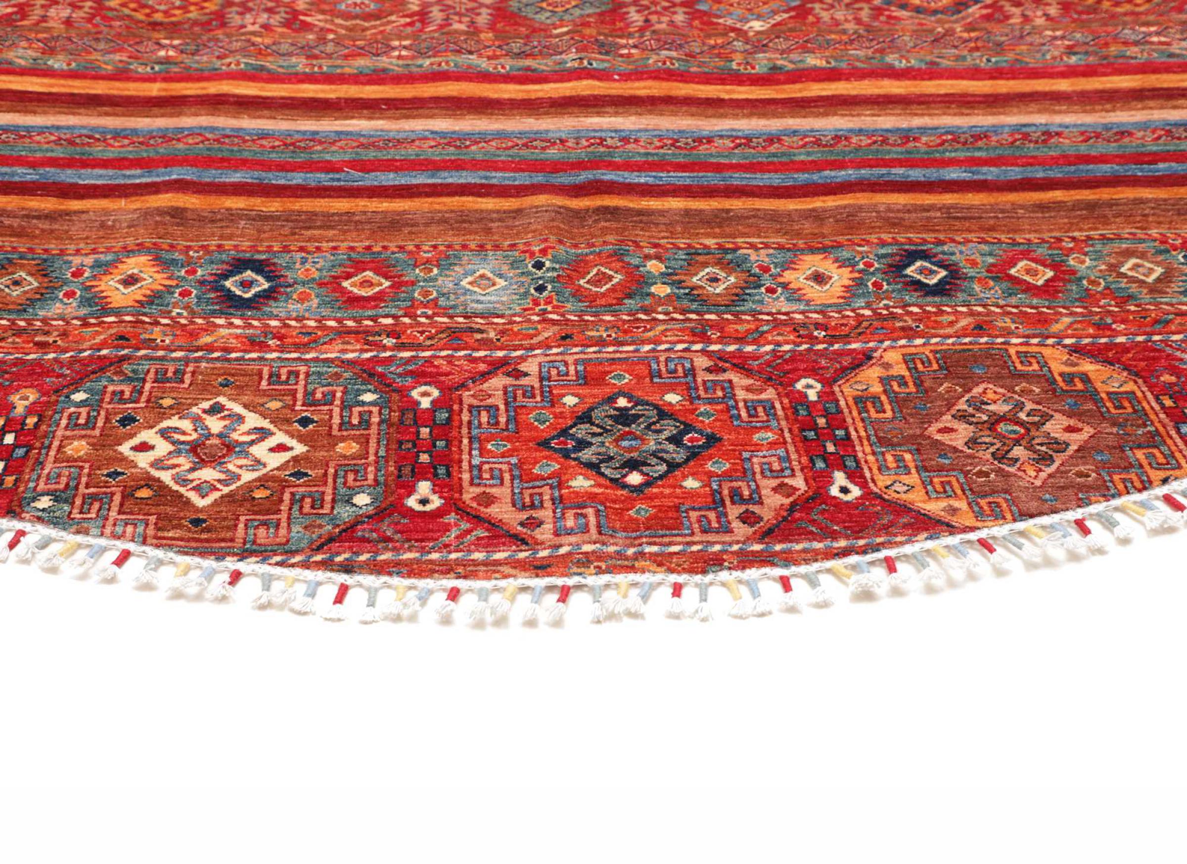 Nr.dywanu: 306480007647310 Wielkość: 250x250 cm Grubość: ok. 5 mm Gęstość tkania: 128 000 - 160 000 / m² Przetwarzanie: Ręcznie tkane Włosie: Wełna ręcznie przędzona Osnowa: Bawełna Pochodzenie: Pakistan Wiek: nowe Waga: ok. 22 kg Ilość w magazynie: Unikalny - Tylko 1 na składzie