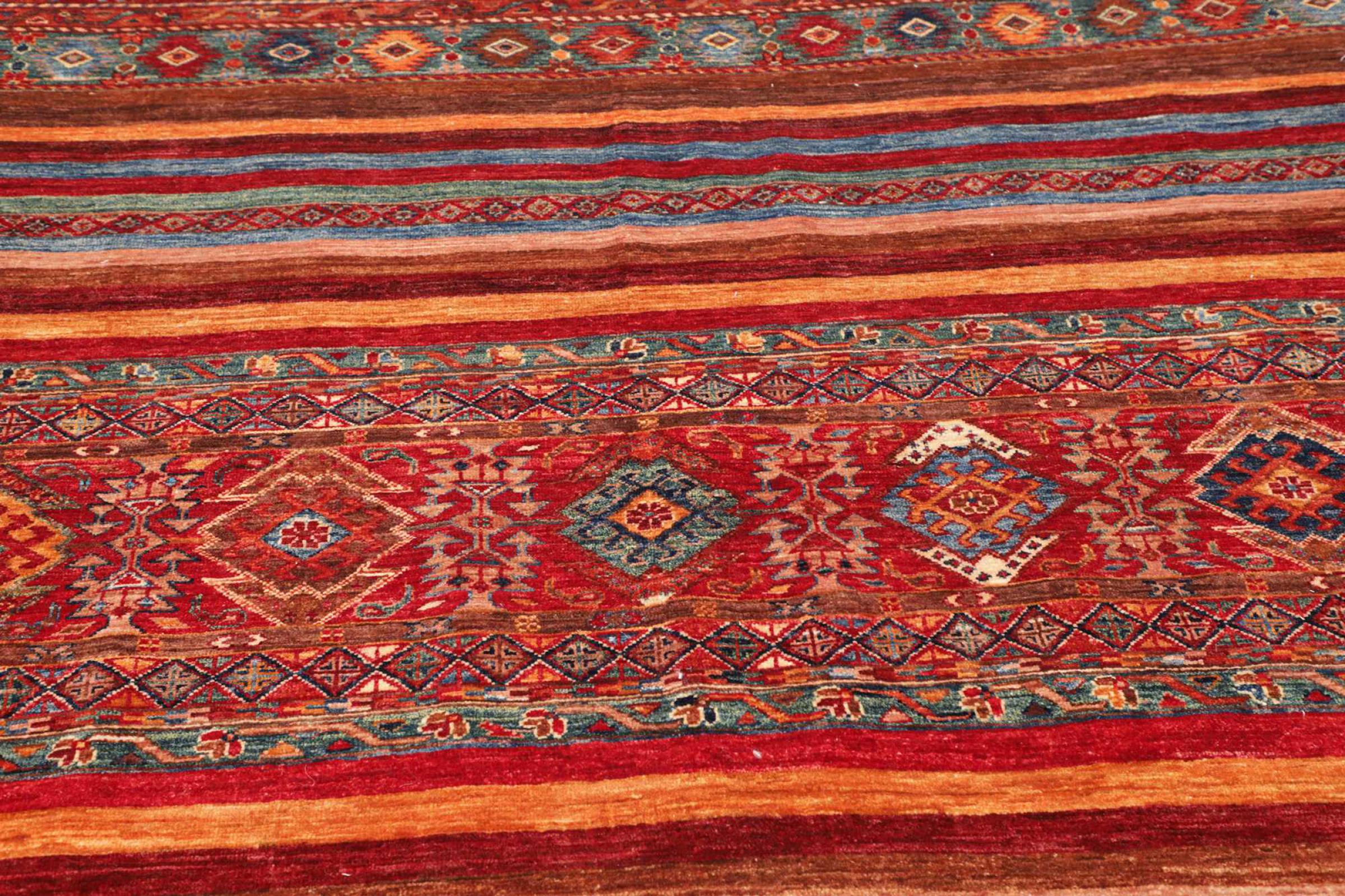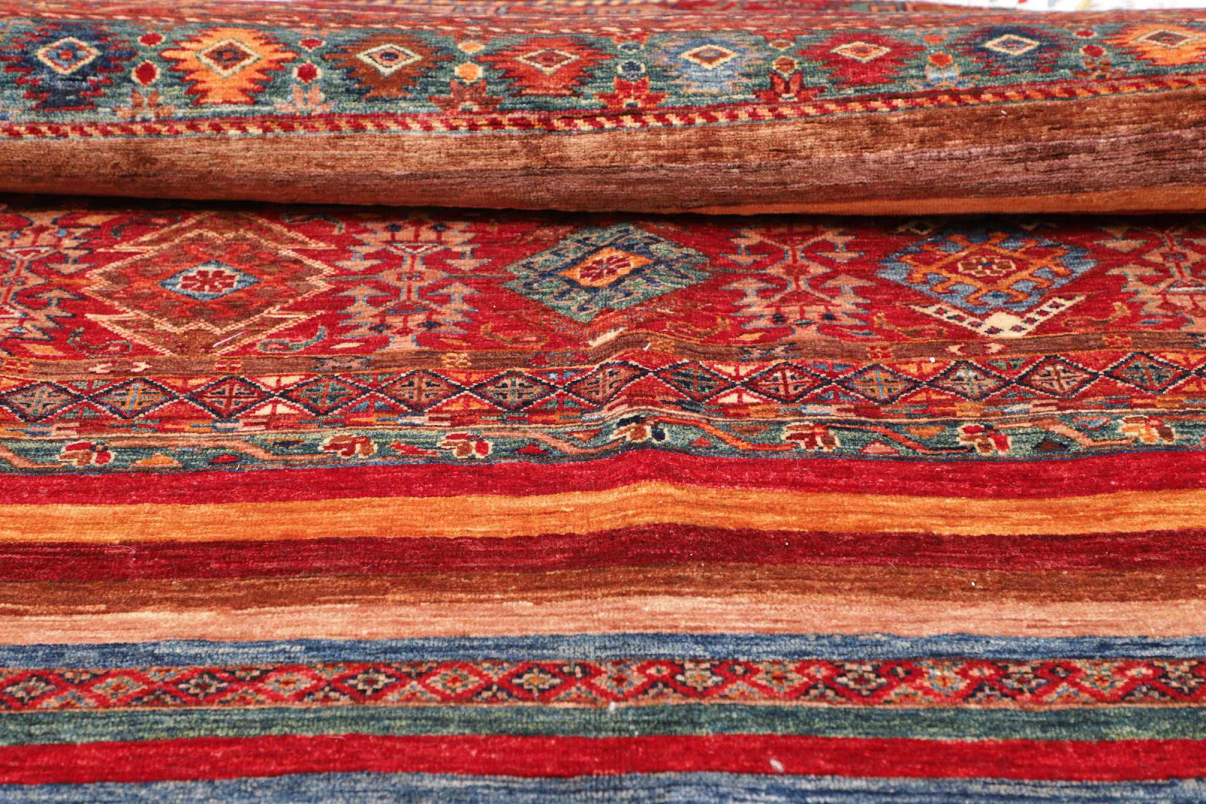 Dywan ten wykonany jest z ręcznie formowanej wełny owczej najwyższej jakości. Zwłaszcza w Iranie (była Persja), Afganistanie i Pakistanie wełna jest nadal ręcznie skręcana, zanim rozpocznie się faktyczne wiązanie dywanu. Wełna sprawdziła się jako naturalny i niezwykle wytrzymały materiał na przestrzeni wieków. Ma m.in. właściwości antybrudzące i termoizolacyjne. Jednocześnie wełna jest nieporównywalnie miękka i ma naturalny połysk.