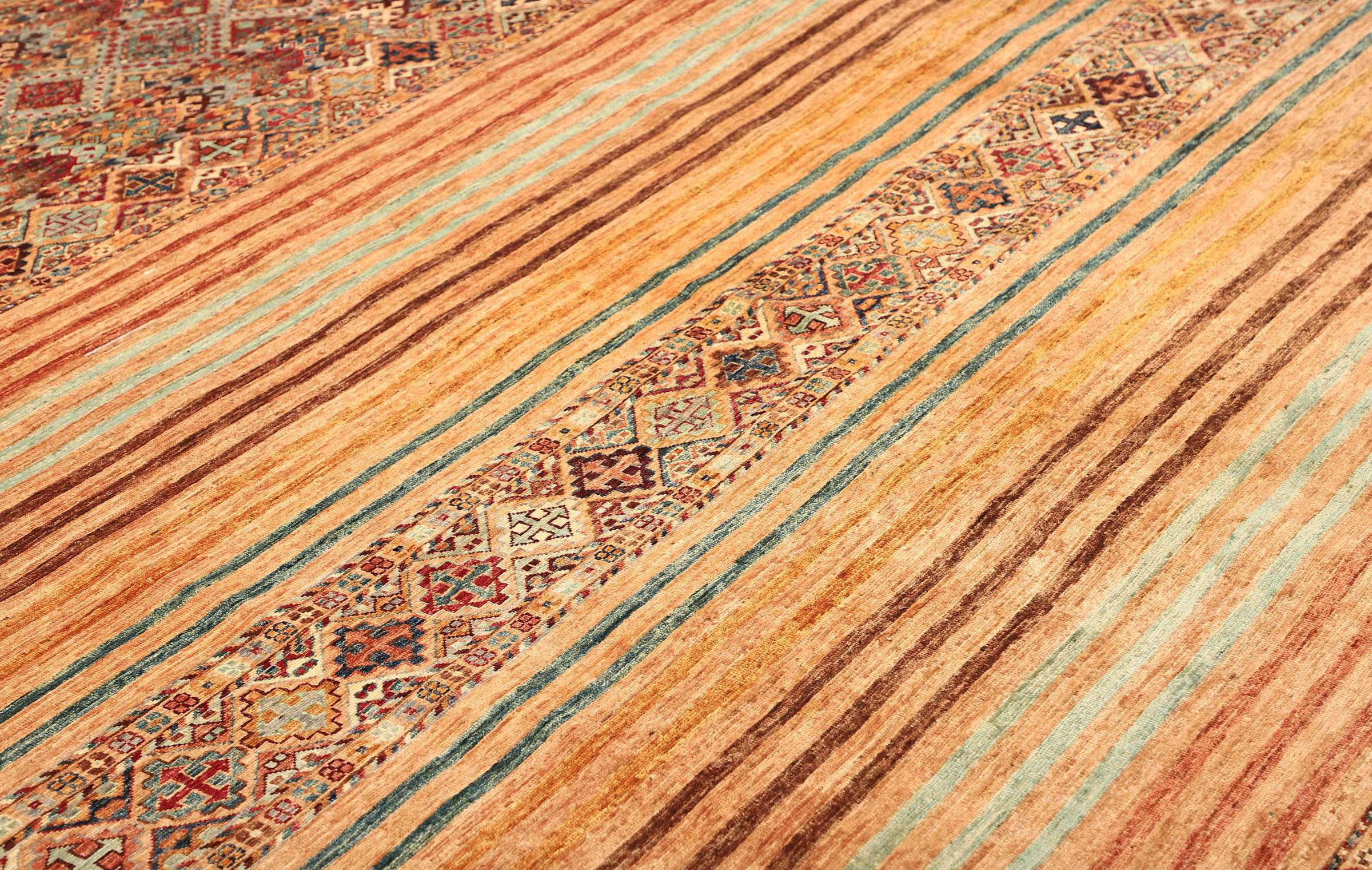 Dywan ten wykonany jest z ręcznie formowanej wełny owczej najwyższej jakości. Zwłaszcza w Iranie (była Persja), Afganistanie i Pakistanie wełna jest nadal ręcznie skręcana, zanim rozpocznie się faktyczne wiązanie dywanu. Wełna sprawdziła się jako naturalny i niezwykle wytrzymały materiał na przestrzeni wieków. Ma m.in. właściwości antybrudzące i termoizolacyjne. Jednocześnie wełna jest nieporównywalnie miękka i ma naturalny połysk.