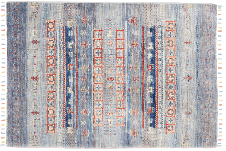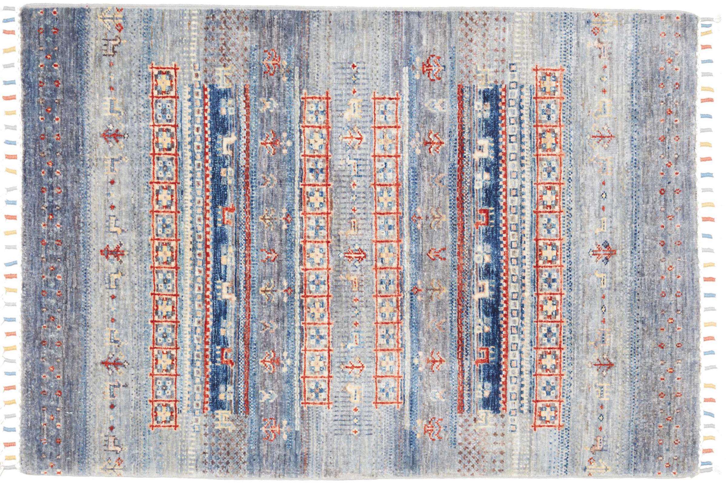Nr.dywanu: 310680009875699 Wielkość: 116x80 cm Grubość: ok. 5 mm Gęstość tkania: 128 000 - 160 000 / m² Przetwarzanie: Ręcznie tkane Włosie: Wełna ręcznie przędzona Osnowa: Bawełna Pochodzenie: Pakistan Wiek: nowe Waga: ok. 3 kg Ilość w magazynie: Unikalny - Tylko 1 na składzie