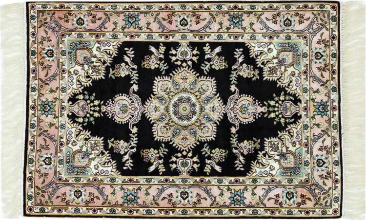 Nr.dywanu: 303295001947855 Wielkość: 89x62 cm Grubość: ok. 5 mm Gęstość tkania: 440 000 - 490 000 / m² Przetwarzanie: Ręcznie tkane Włosie: Jewab Osnowa: Jewab Pochodzenie: Chiny Wiek: nowe Waga: ok. 2 kg Ilość w magazynie: Unikalny - Tylko 1 na składzie