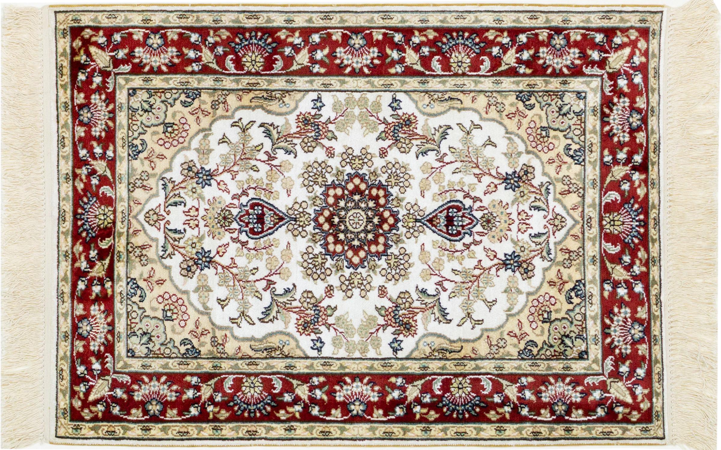Nr.dywanu: 303333008321337 Wielkość: 92x63 cm Grubość: ok. 5 mm Gęstość tkania: 440 000 - 490 000 / m² Przetwarzanie: Ręcznie tkane Włosie: Jewab Osnowa: Jewab Pochodzenie: Chiny Wiek: nowe Waga: ok. 2 kg Ilość w magazynie: Unikalny - Tylko 1 na składzie
