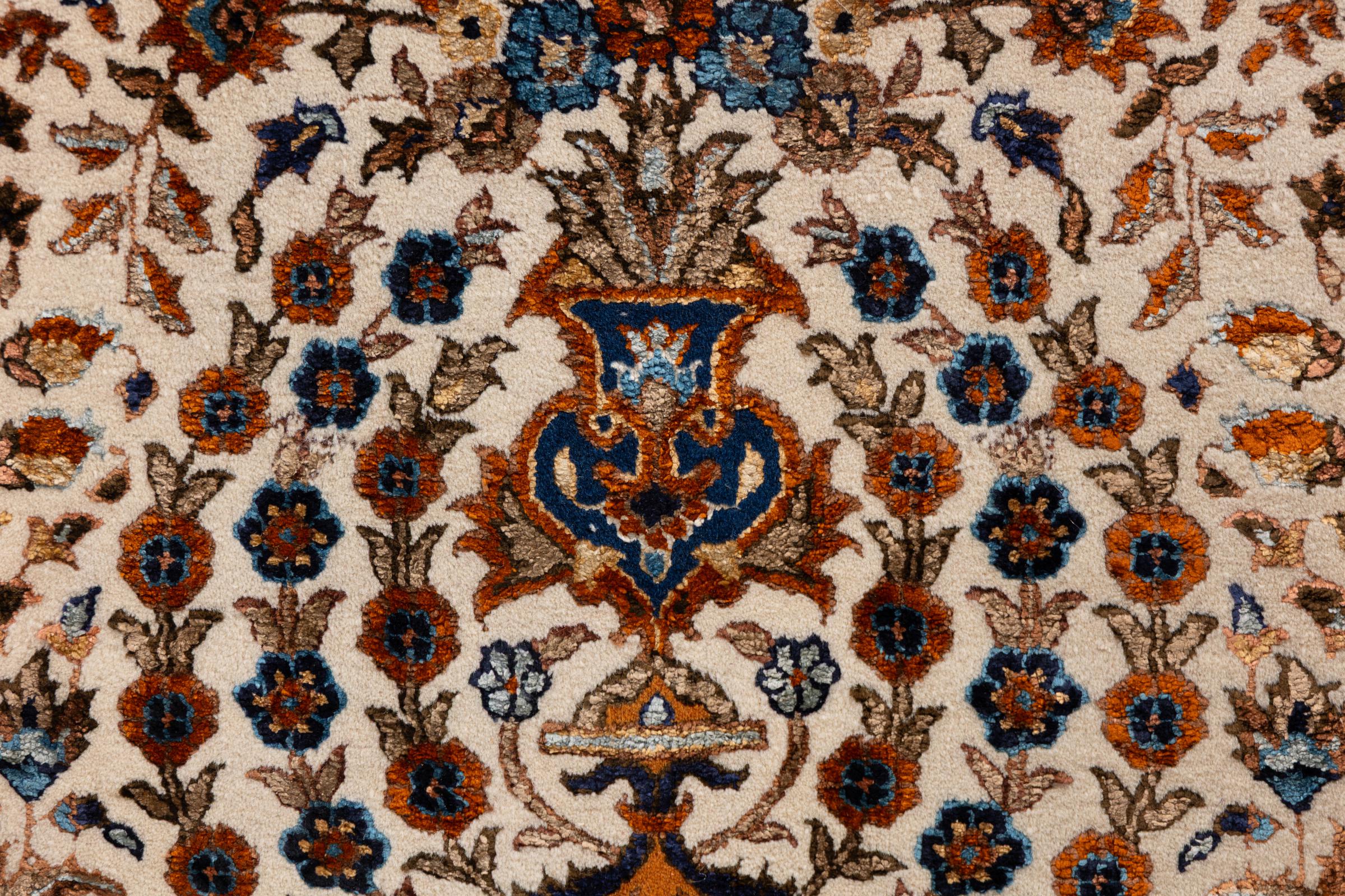Połączenie prawdopodobnie najlepszych właściwości wełny owczej i czystego jedwabiu. Wełna naturalna charakteryzuje się wysoką trwałością, odpornością na zabrudzenia i izolacyjnością termiczną. Jednocześnie zawartość jedwabiu tworzy wyjątkowy połysk, który wydaje się świecić pod odpowiednim kątem. Ornamenty wykonane z jedwabiu stanowią tym samym akcent w projekcie, tworząc prawdziwy efekt wow. Nawet dzisiaj, jedwab jest wyrazem czystego luksusu. Uzyskuje się go ręcznie i wpleciony we włókna tekstylne.