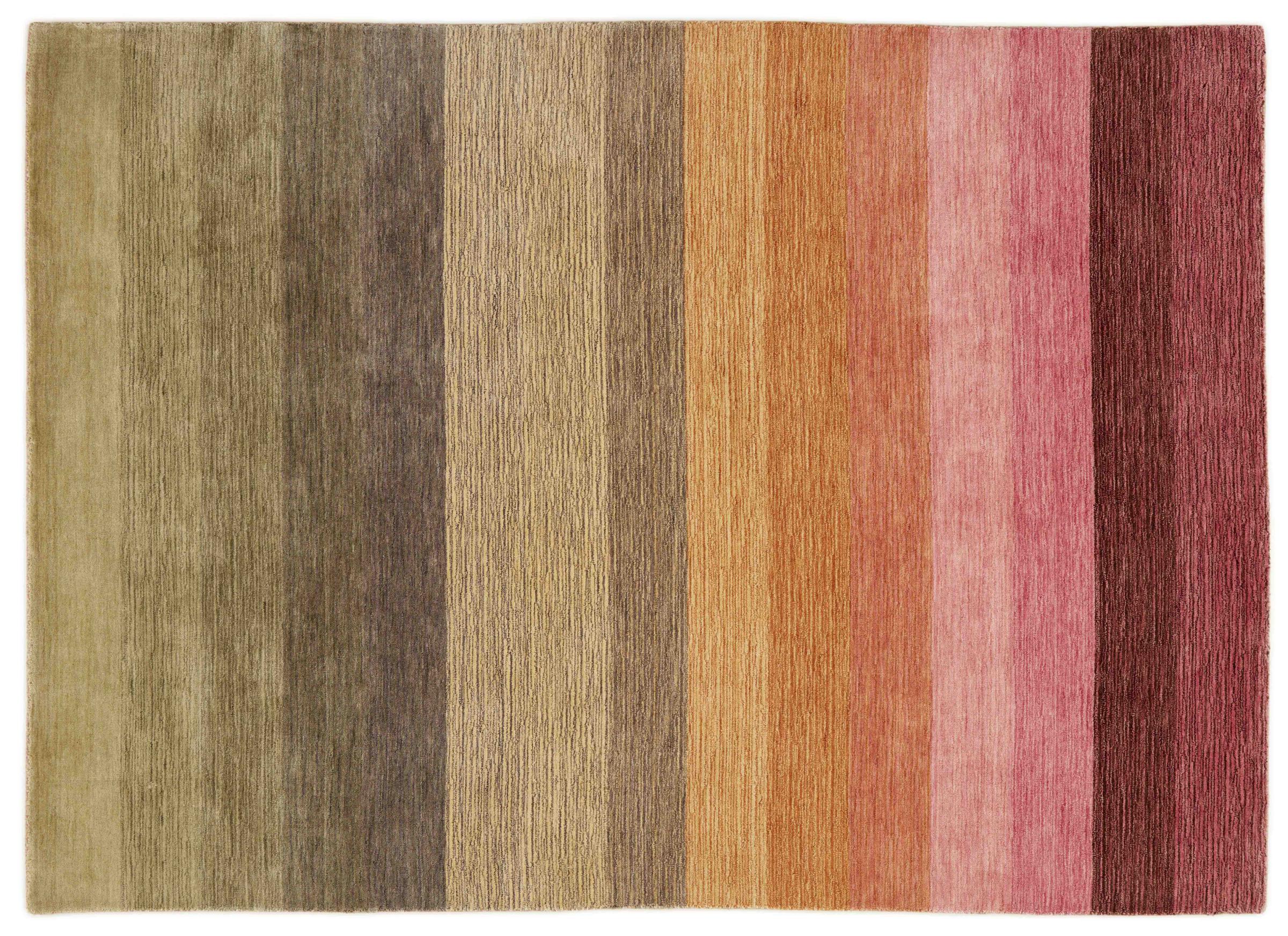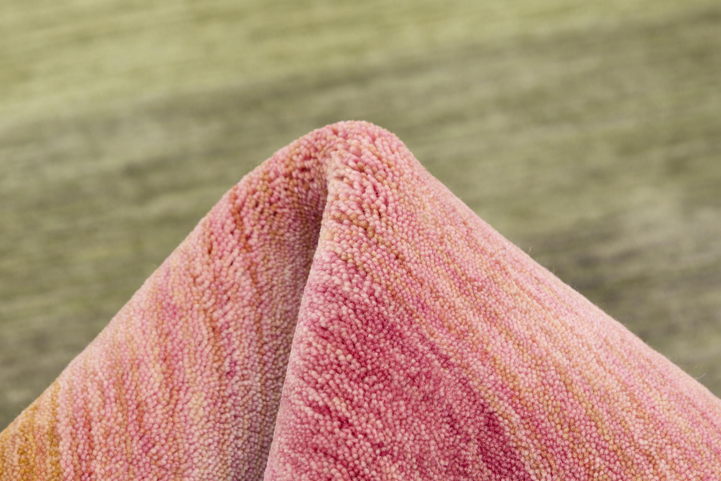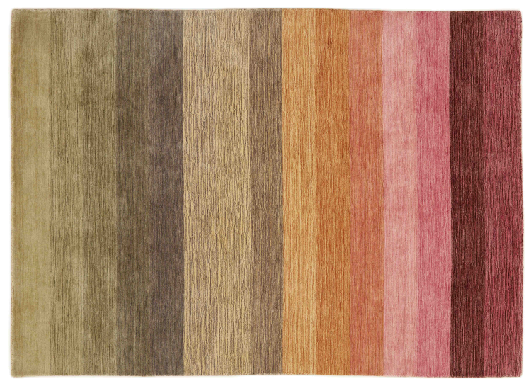 Ten ręcznie robiony designerski dywan celowo wykorzystuje delikatne gradacje określonego spektrum kolorów. Tworzy to spokojny i jednocześnie nowoczesny design. Zastosowano naturalną wełnę w połączeniu z wiskozą, aby uzyskać piękny połysk. Spektrum kolorów w rzeczywistości zapiera dech w piersiach.