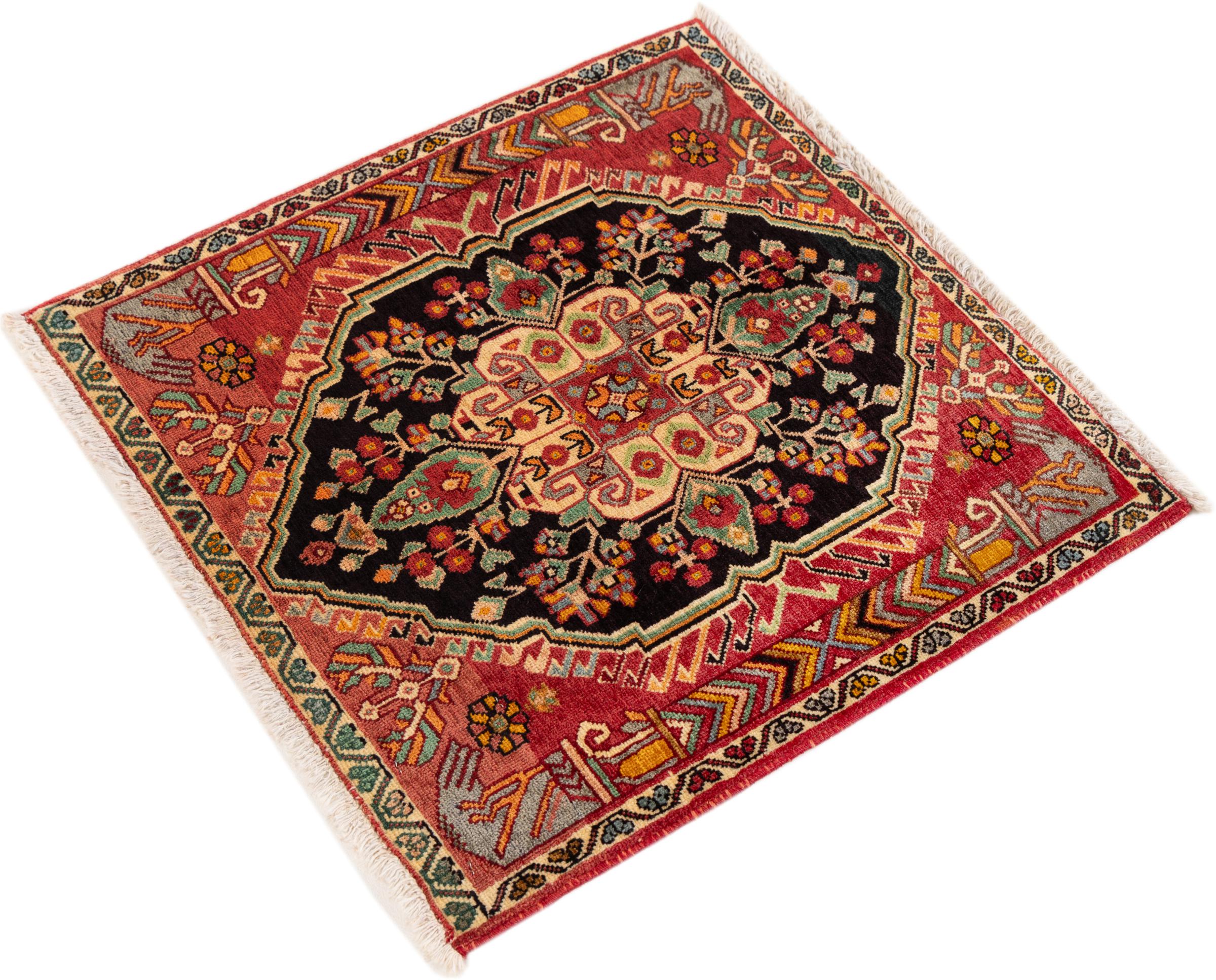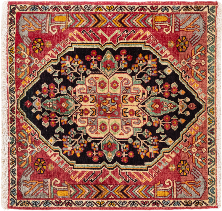 Nr.dywanu: 295224004003 Wielkość: 64x63 cm Grubość: ok. 12 mm Gęstość tkania: 200 000 - 250 000 / m² Przetwarzanie: Ręcznie tkane Włosie: Wełna ręcznie przędzona Osnowa: Bawełna Pochodzenie: Persja / Iran Wiek: nowe Waga: ok. 1 kg Znany także jako Qashqai, Gaschgai, Gashghai, Kashgai Ilość w magazynie: Unikalny - Tylko 1 na składzie