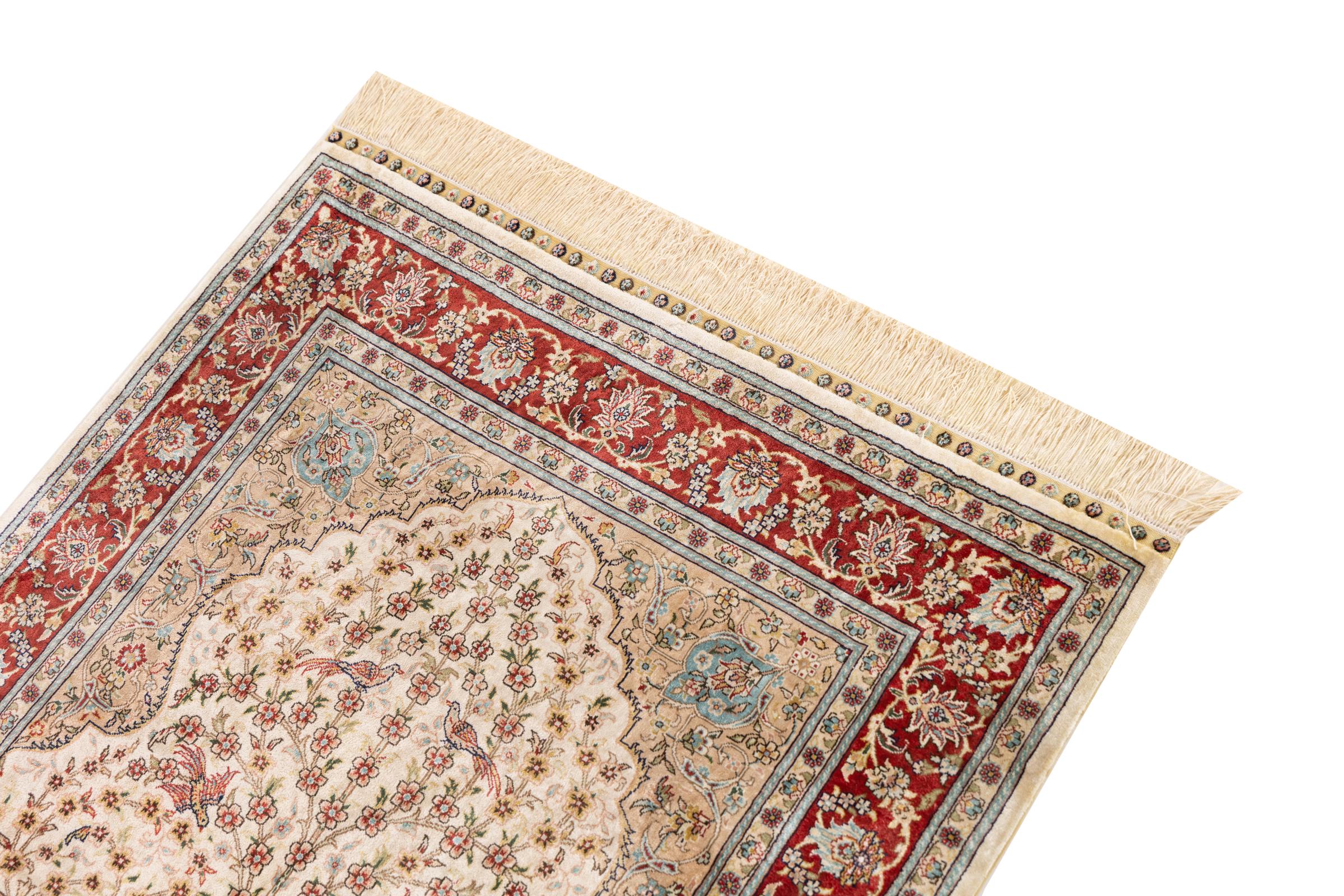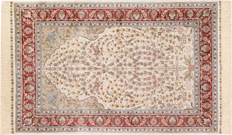 Nr.dywanu: 30699800105528 Wielkość: 123x79 cm Grubość: ok. 3 mm Gęstość tkania: 810 000 / m² Przetwarzanie: Ręcznie tkane Włosie: Jewab Osnowa: Jewab Pochodzenie: Turcja Wiek: nowe Waga: ok. 2 kg Ilość w magazynie: Unikalny - Tylko 1 na składzie