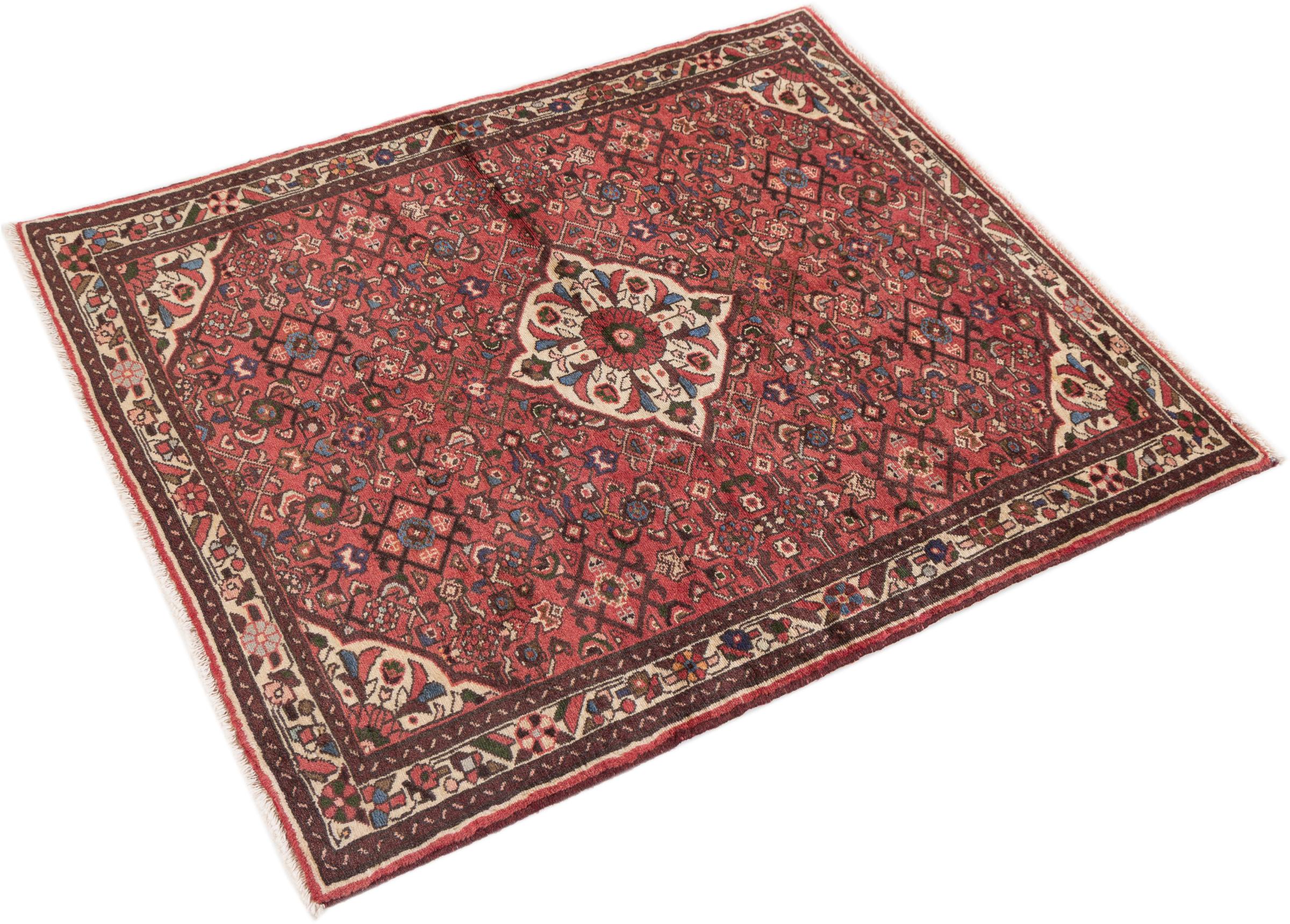 Nr.dywanu: 295863003827 Wielkość: 140x107 cm Grubość: ok. 12 mm Gęstość tkania: 200 000 - 250 000 / m² Przetwarzanie: Ręcznie tkane Włosie: Wełna ręcznie przędzona Osnowa: Bawełna Pochodzenie: Persja / Iran Wiek: nowe Waga: ok. 5 kg Znany także jako Huseinabad Ilość w magazynie: Unikalny - Tylko 1 na składzie