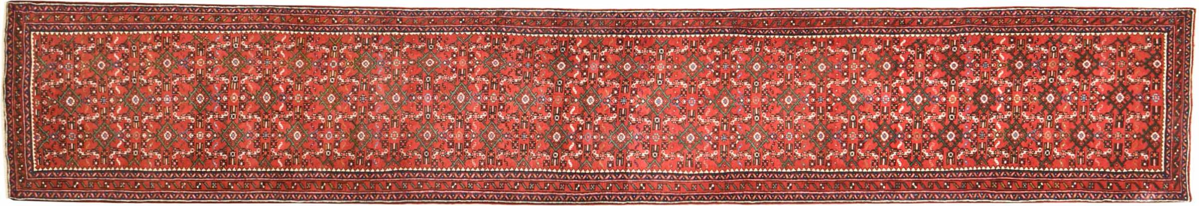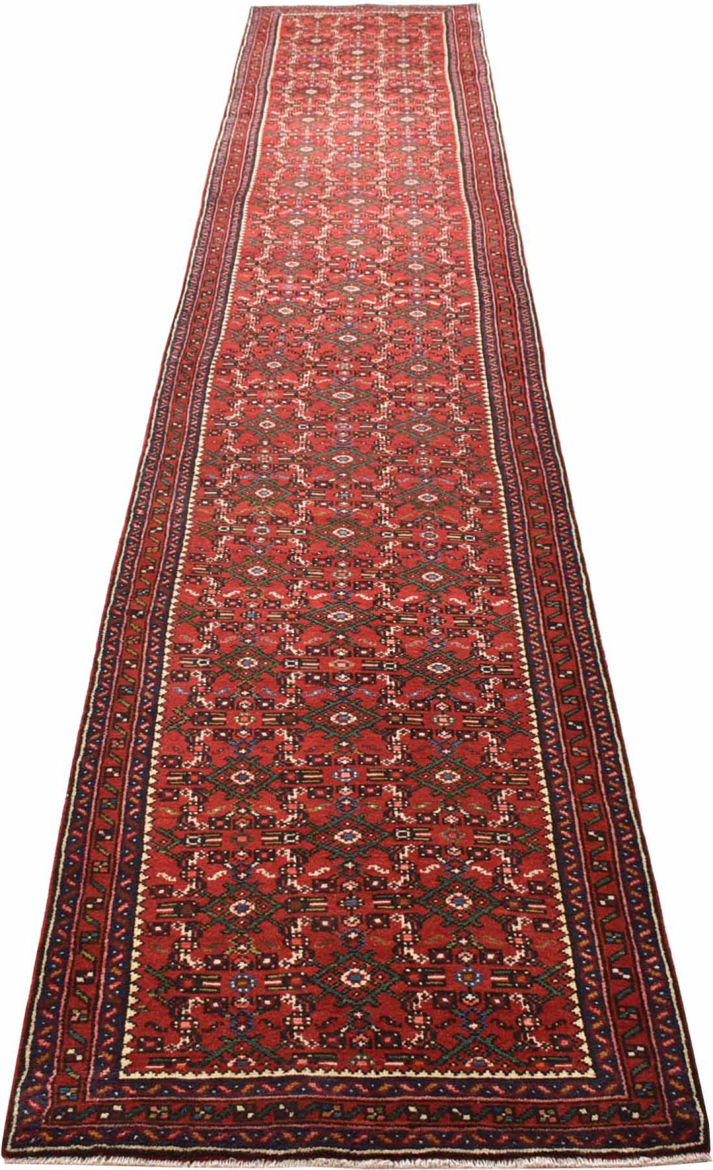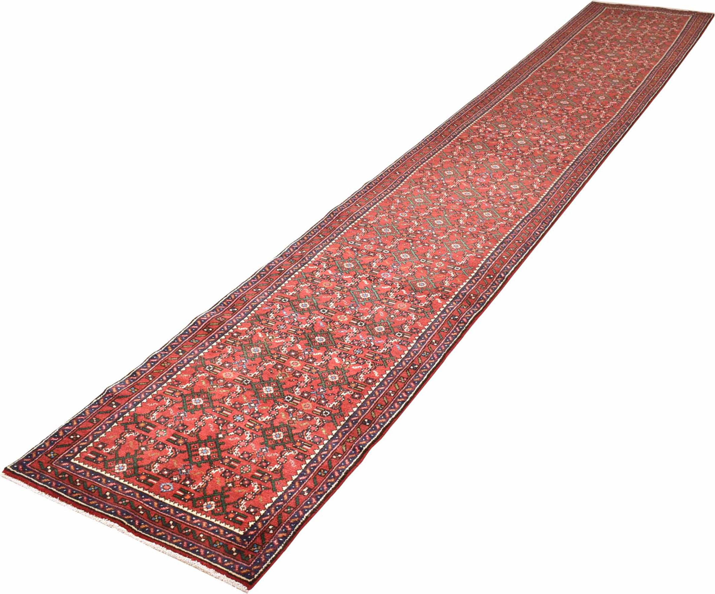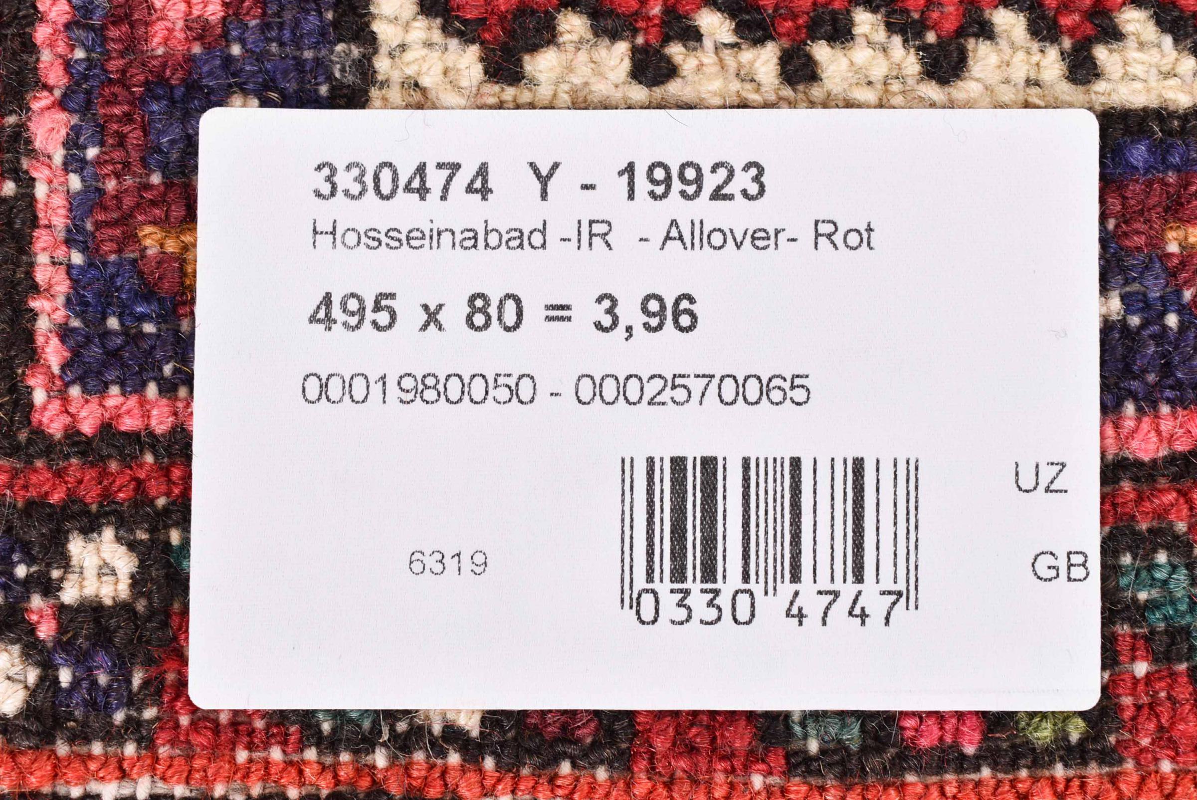 Nr.dywanu: 300905006130317 Wielkość: 494x79 cm Grubość: ok. 12 mm Gęstość tkania: 128 000 - 160 000 / m² Przetwarzanie: Ręcznie tkane Włosie: Wełna ręcznie przędzona Osnowa: Bawełna Pochodzenie: Persja / Iran Wiek: nowe Waga: ok. 14 kg Znany także jako Huseinabad Ilość w magazynie: Unikalny - Tylko 1 na składzie