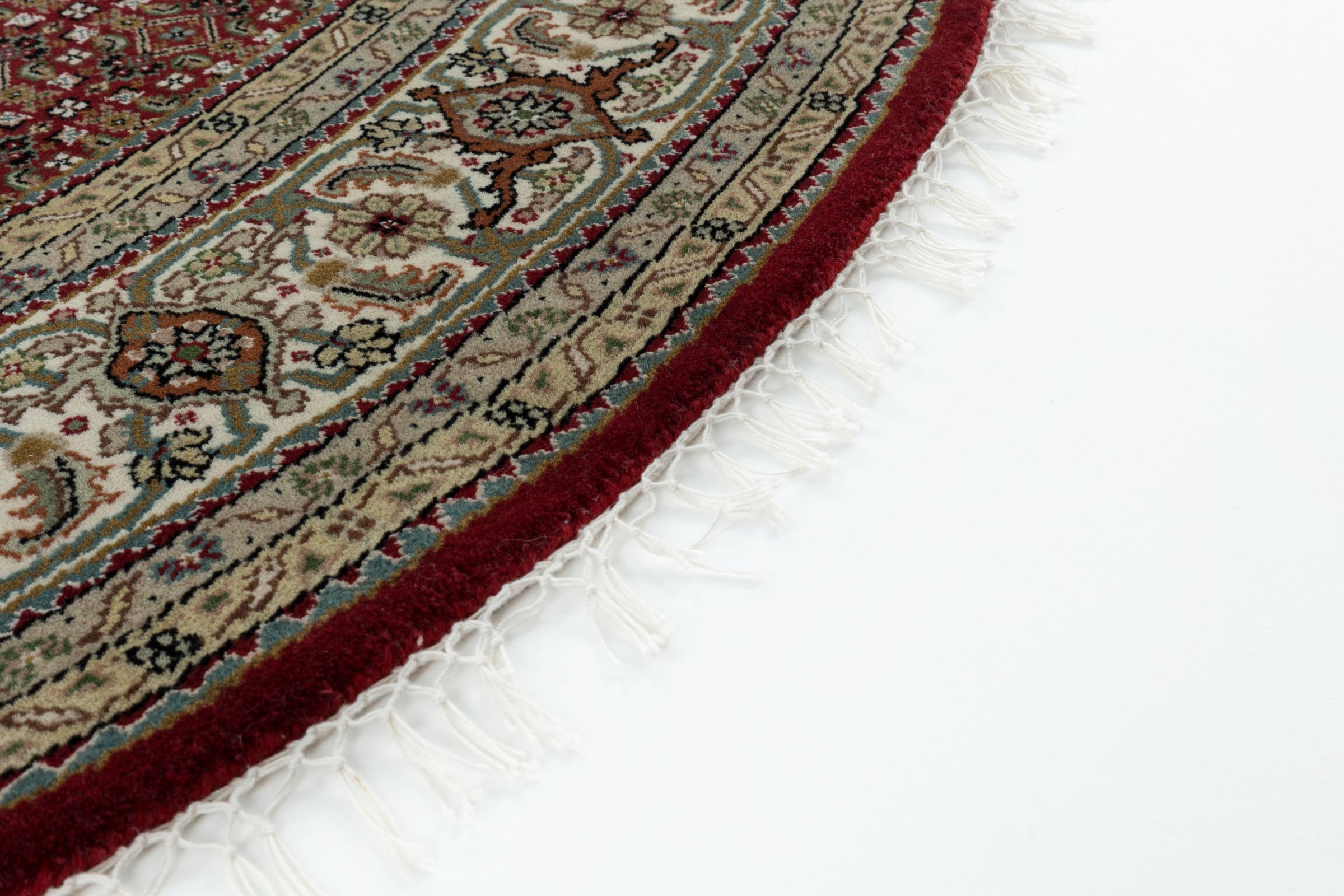 Nr.dywanu: 263363005593309 Wielkość: 200x197 cm Grubość: ok. 15 mm Gęstość tkania: 200 000 - 250 000 / m² Przetwarzanie: Ręcznie tkane Włosie: Wełna ręcznie przędzona Osnowa: Bawełna Pochodzenie: Indie Wiek: nowe Waga: ok. 20 kg Ilość w magazynie: Unikalny - Tylko 1 na składzie