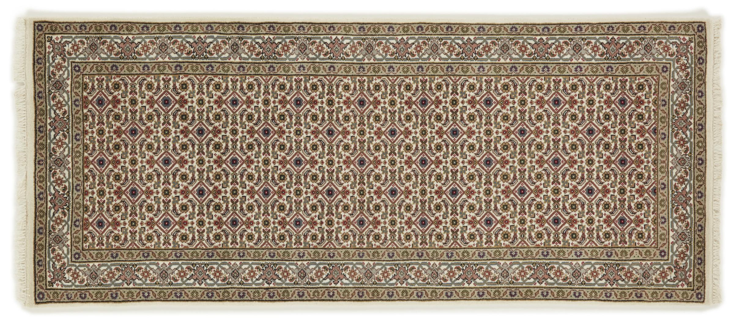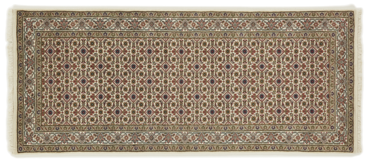 Nr.dywanu: 300005009166210 Wielkość: 202x85 cm Grubość: ok. 12 mm Gęstość tkania: 160 000 - 200 000 / m² Przetwarzanie: Ręcznie tkane Włosie: Wełna ręcznie przędzona Osnowa: Bawełna Pochodzenie: Indie Wiek: nowe Waga: ok. 7 kg Znany także jako Indo Täbriz Ilość w magazynie: Unikalny - Tylko 1 na składzie
