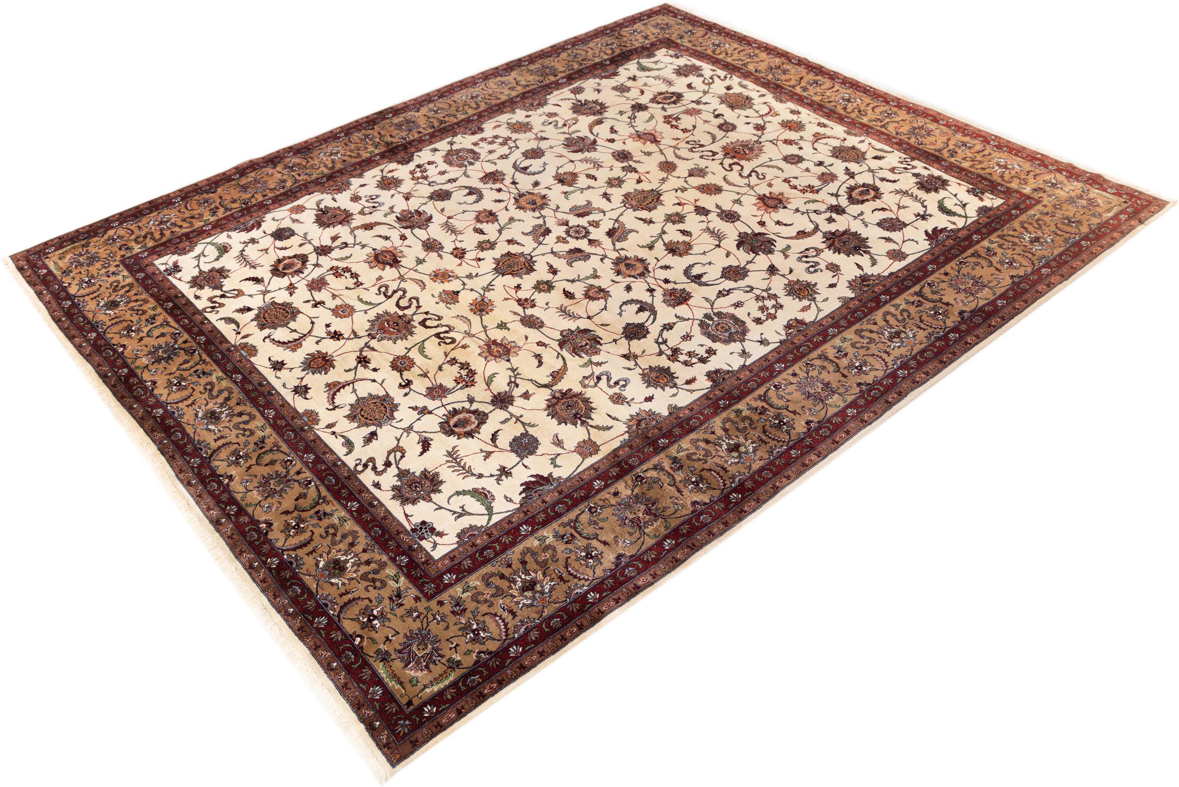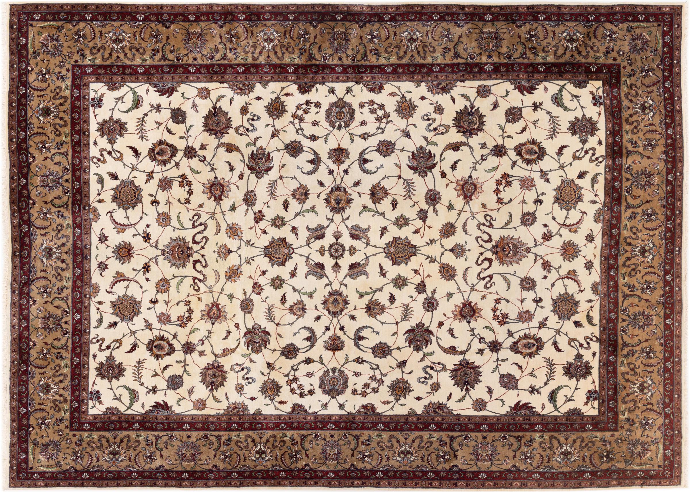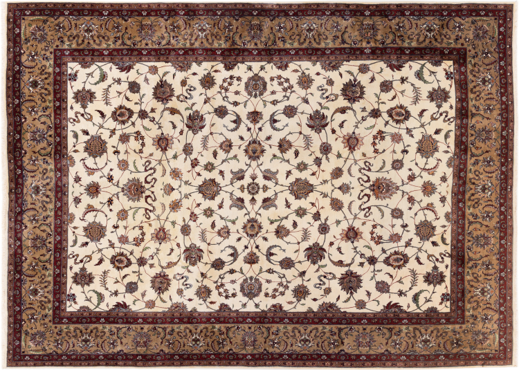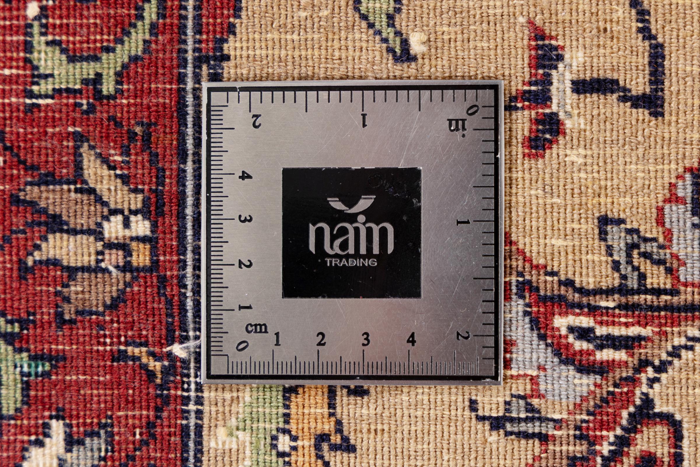 Nr.dywanu: 29736900105442 Wielkość: 380x275 cm Grubość: ok. 12 mm Gęstość tkania: 440 000 - 490 000 / m² Przetwarzanie: Ręcznie tkane Włosie: Wełna ręcznie przędzona Osnowa: Bawełna Pochodzenie: Indie Wiek: nowe Waga: ok. 42 kg Znany także jako Indo Täbriz Ilość w magazynie: Unikalny - Tylko 1 na składzie