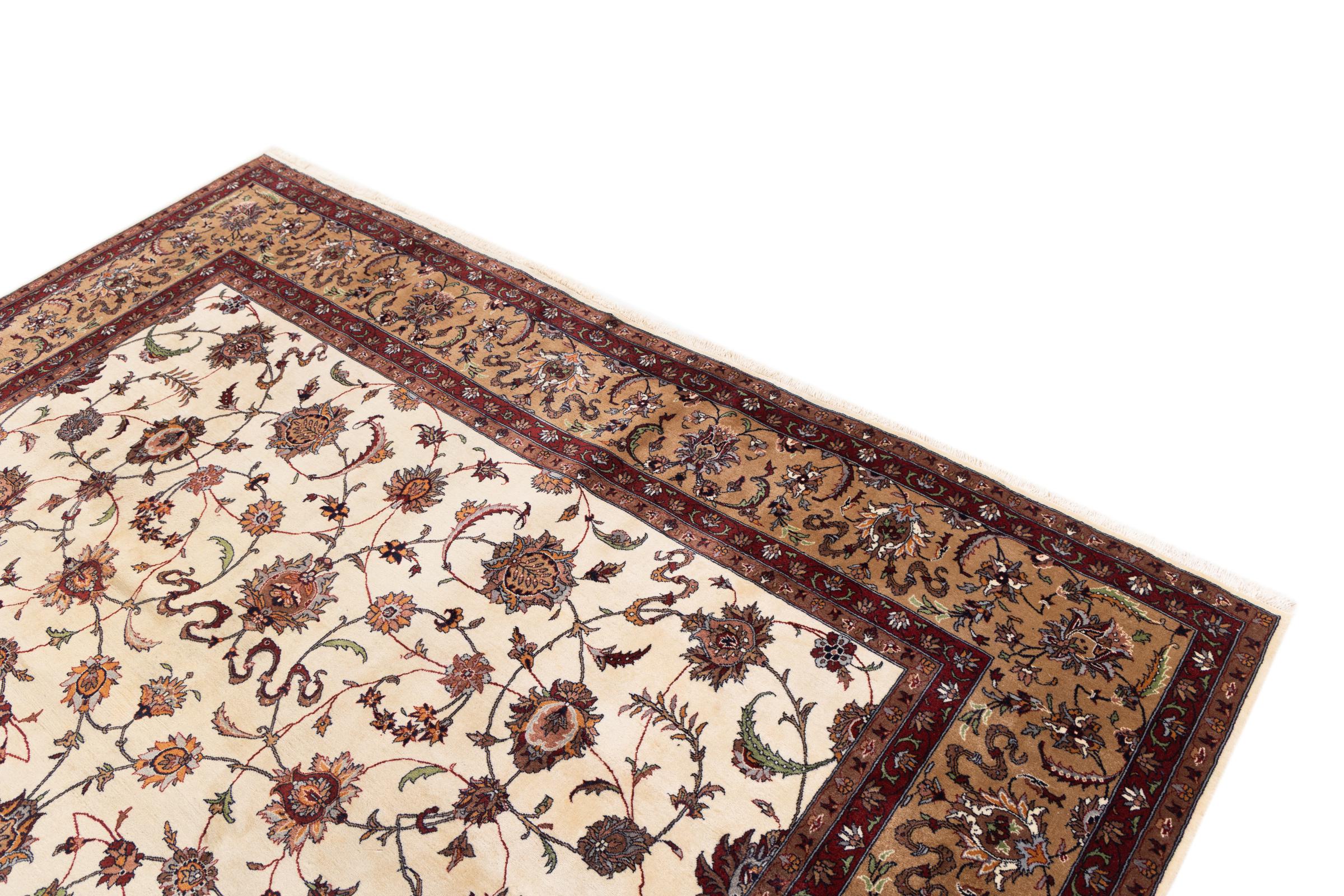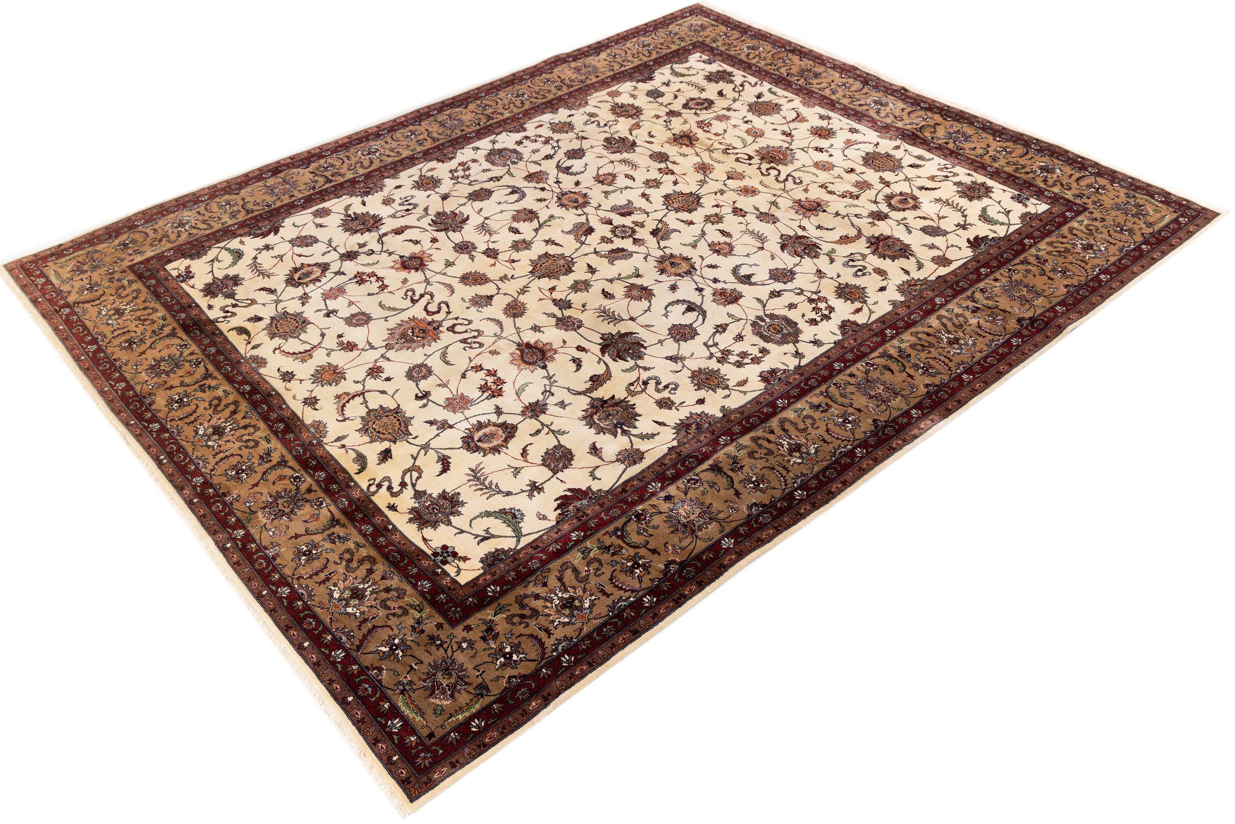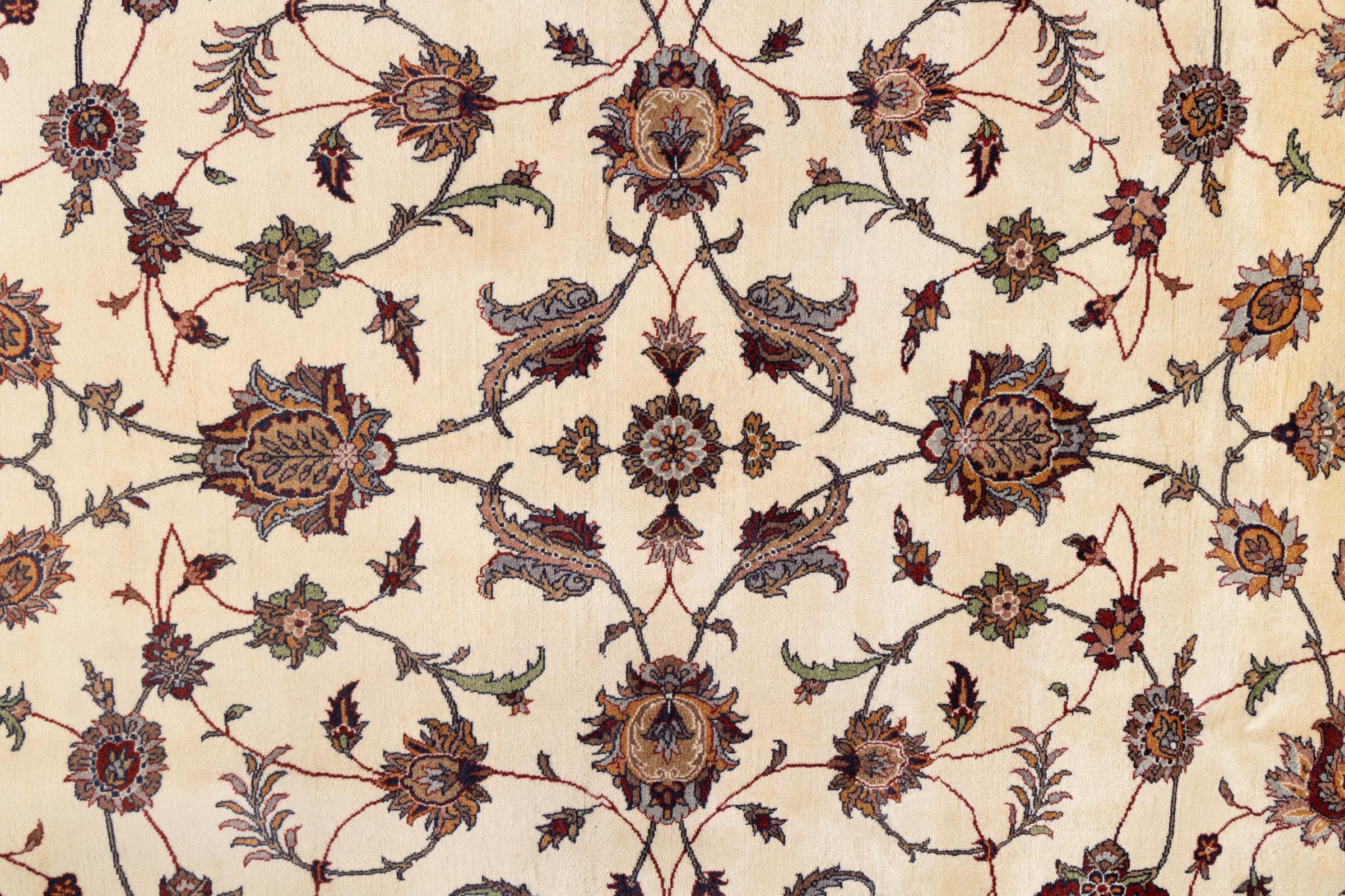 Nr.dywanu: 29736900105442 Wielkość: 380x275 cm Grubość: ok. 12 mm Gęstość tkania: 440 000 - 490 000 / m² Przetwarzanie: Ręcznie tkane Włosie: Wełna ręcznie przędzona Osnowa: Bawełna Pochodzenie: Indie Wiek: nowe Waga: ok. 42 kg Znany także jako Indo Täbriz Ilość w magazynie: Unikalny - Tylko 1 na składzie