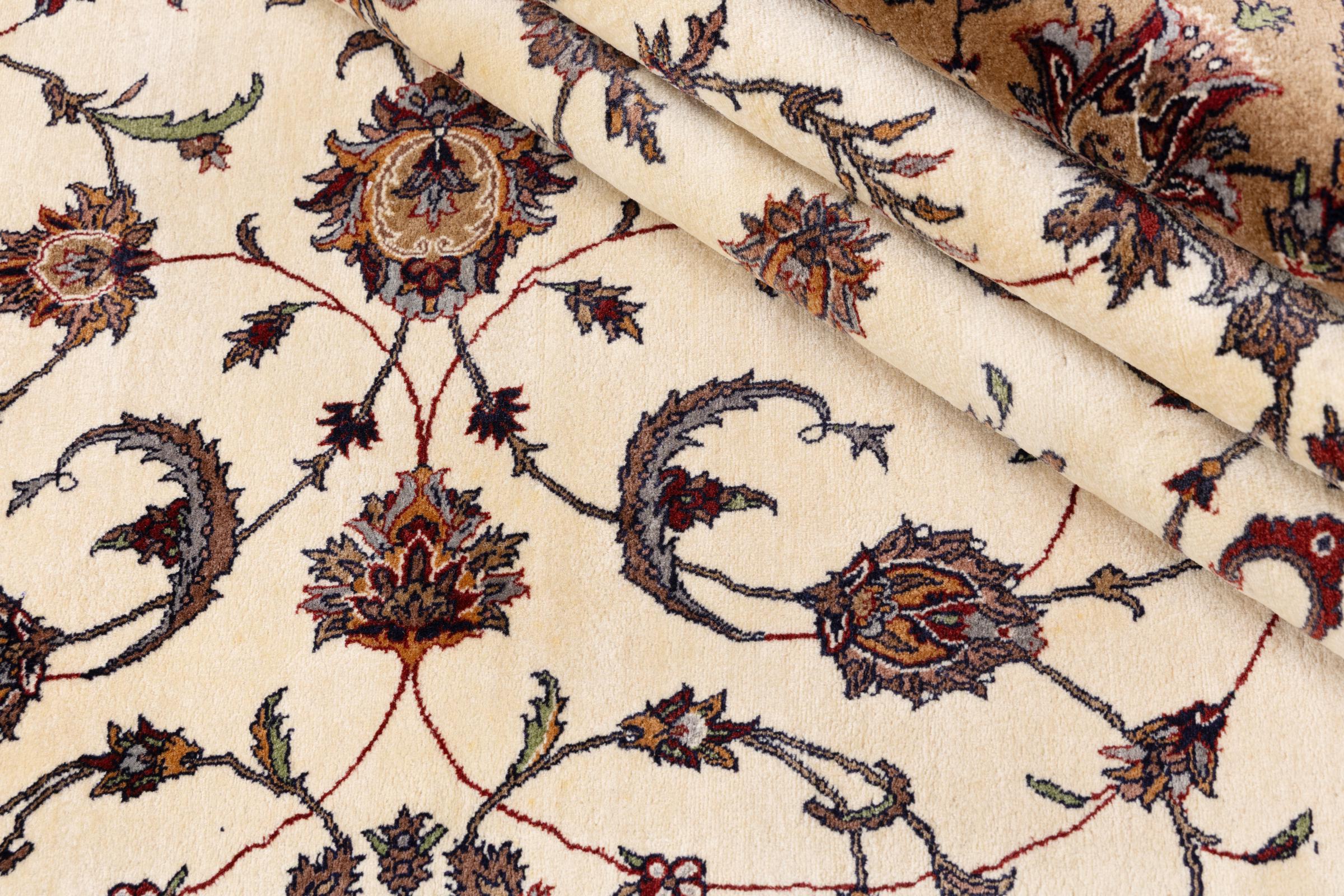 Dywan ten wykonany jest z ręcznie formowanej wełny owczej najwyższej jakości. Zwłaszcza w Iranie (była Persja), Afganistanie i Pakistanie wełna jest nadal ręcznie skręcana, zanim rozpocznie się faktyczne wiązanie dywanu. Wełna sprawdziła się jako naturalny i niezwykle wytrzymały materiał na przestrzeni wieków. Ma m.in. właściwości antybrudzące i termoizolacyjne. Jednocześnie wełna jest nieporównywalnie miękka i ma naturalny połysk.