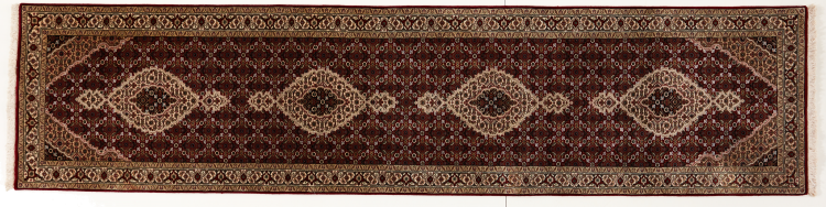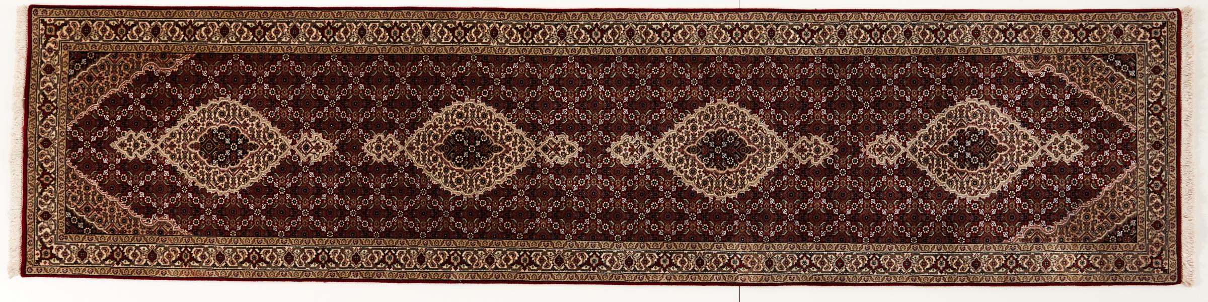 Nr.dywanu: 146377006669021 Wielkość: 343x82 cm Grubość: ok. 12 mm Gęstość tkania: 320 000 - 350 000 / m² Przetwarzanie: Ręcznie tkane Włosie: Wełna ręcznie przędzona Osnowa: Bawełna Pochodzenie: Indie Wiek: nowe Waga: ok. 11 kg Znany także jako Indo Täbriz Ilość w magazynie: Unikalny - Tylko 1 na składzie