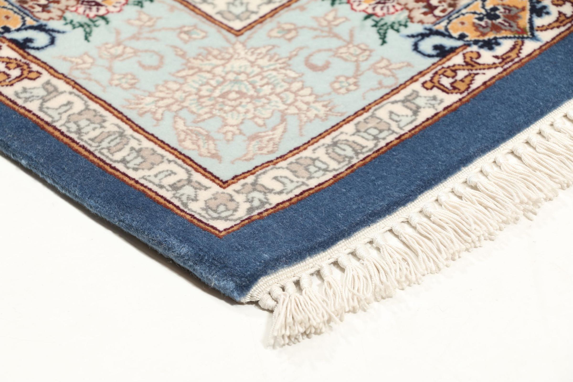 Nr.dywanu: 308726006392660 Wielkość: 124x84 cm Grubość: ok. 6 mm Gęstość tkania: 810 000 / m² Przetwarzanie: Ręcznie tkane Włosie: Wełna z jedwabiem Osnowa: Jewab Pochodzenie: Persja / Iran Wiek: nowe Waga: ok. 3 kg Ilość w magazynie: Unikalny - Tylko 1 na składzie