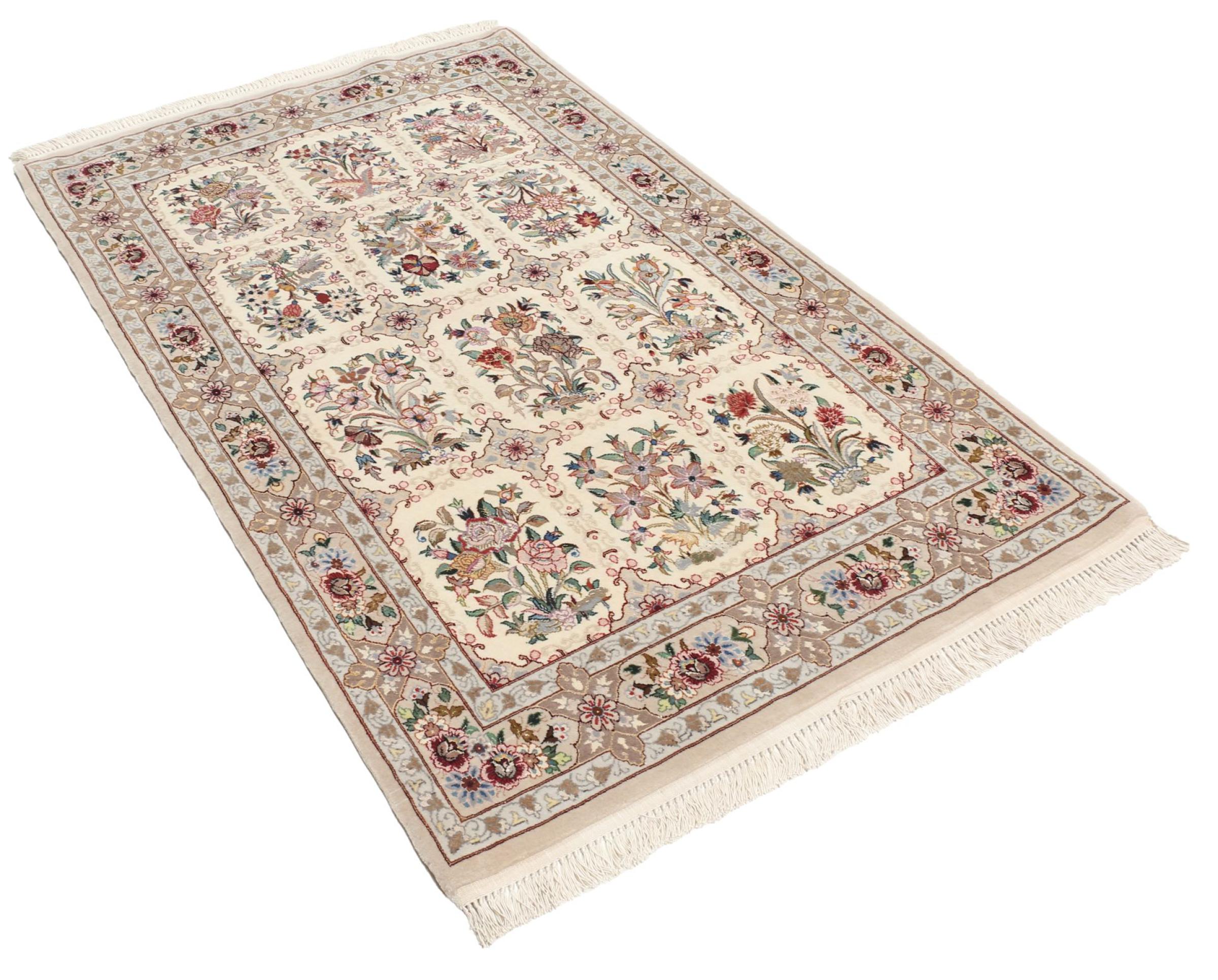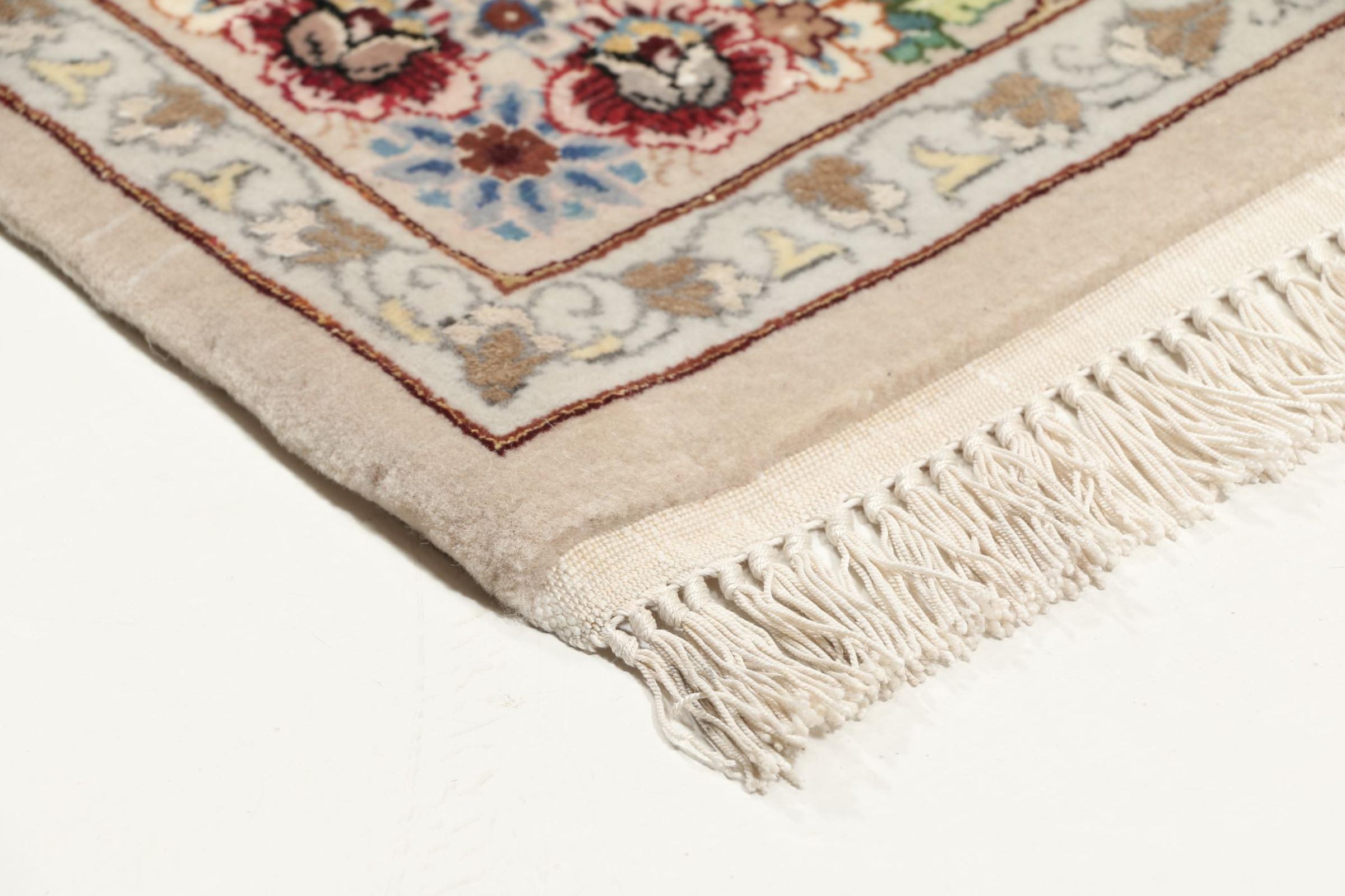 Nr.dywanu: 30936500123046 Wielkość: 136x79 cm Grubość: ok. 6 mm Gęstość tkania: 810 000 / m² Przetwarzanie: Ręcznie tkane Włosie: Wełna z jedwabiem Osnowa: Jewab Pochodzenie: Persja / Iran Wiek: nowe Waga: ok. 3 kg Ilość w magazynie: Unikalny - Tylko 1 na składzie