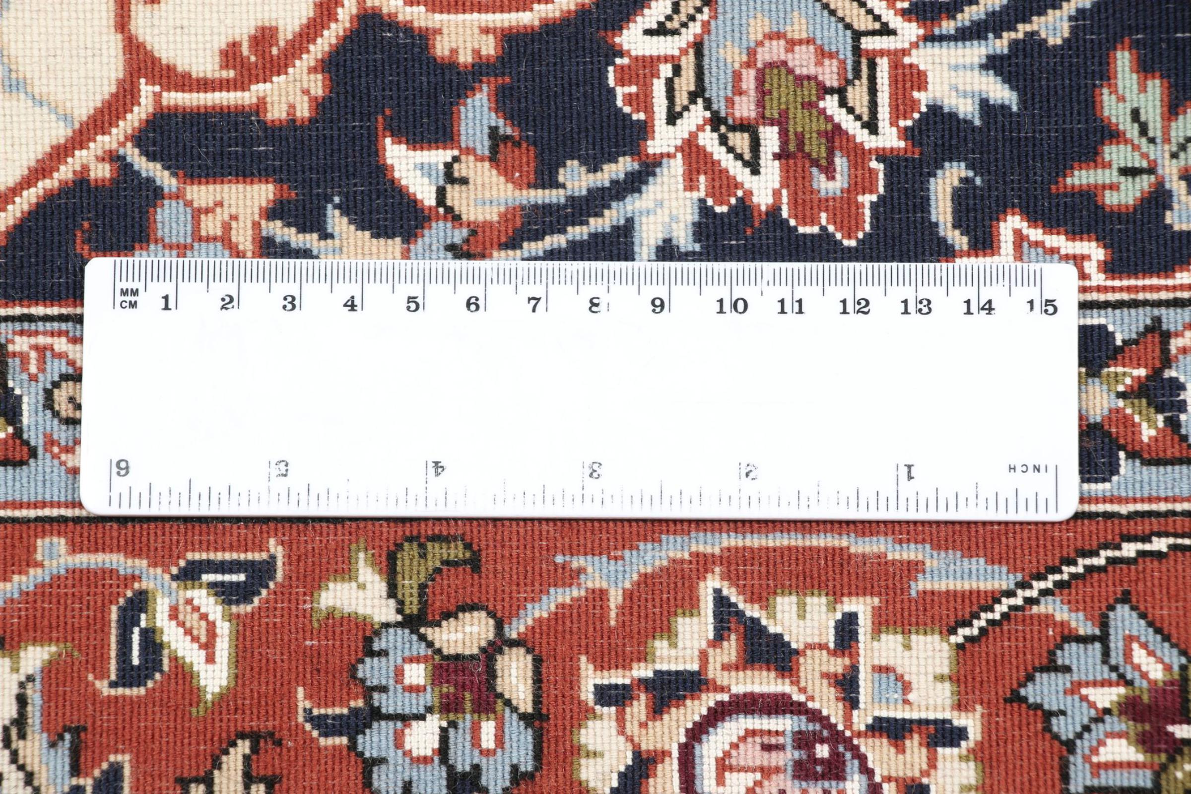 Nr.dywanu: 30899100655741 Wielkość: 171x111 cm Grubość: ok. 6 mm Gęstość tkania: 810 000 / m² Przetwarzanie: Ręcznie tkane Włosie: Wełna z jedwabiem Osnowa: Jewab Pochodzenie: Persja / Iran Wiek: nowe Waga: ok. 6 kg Ilość w magazynie: Unikalny - Tylko 1 na składzie