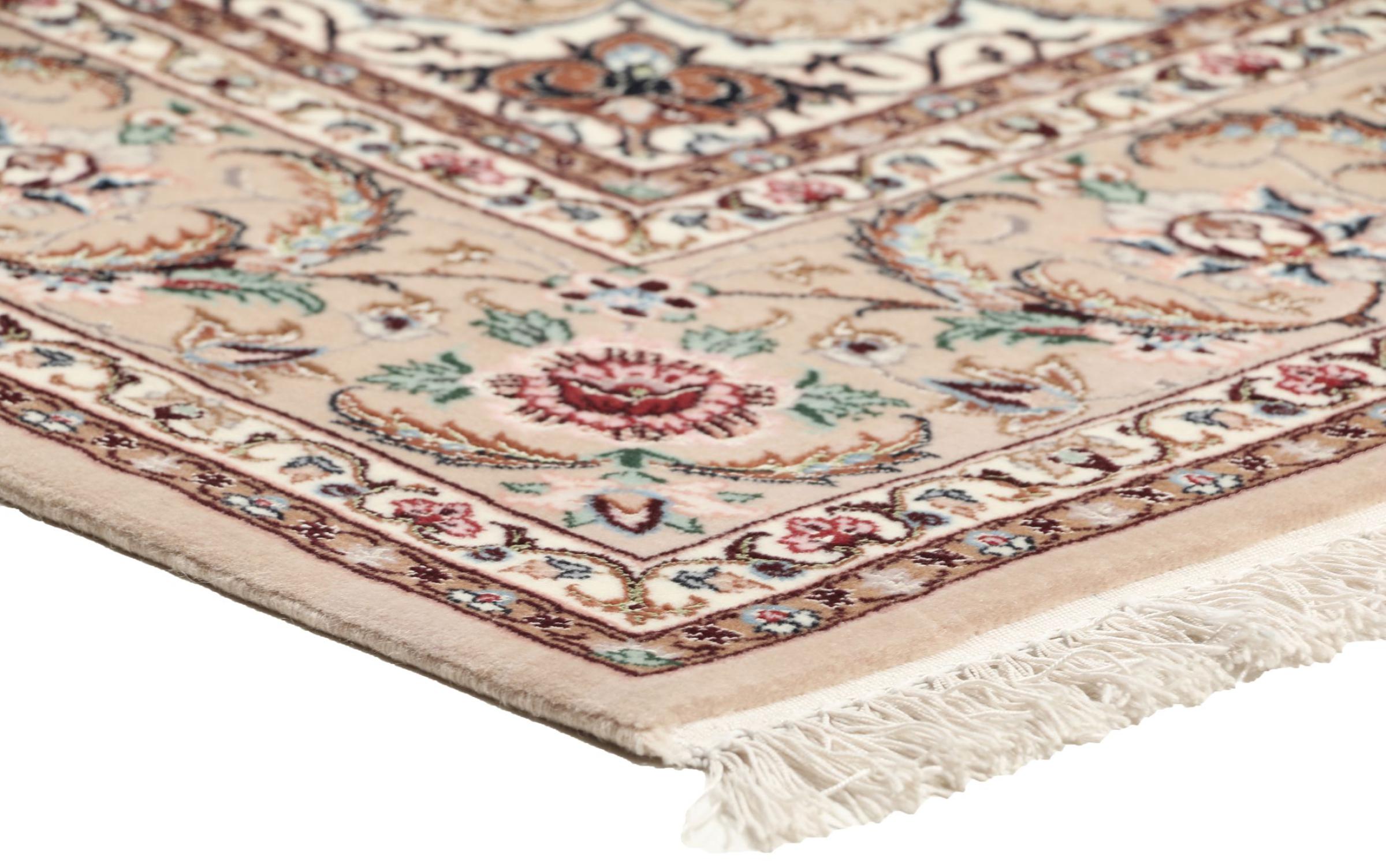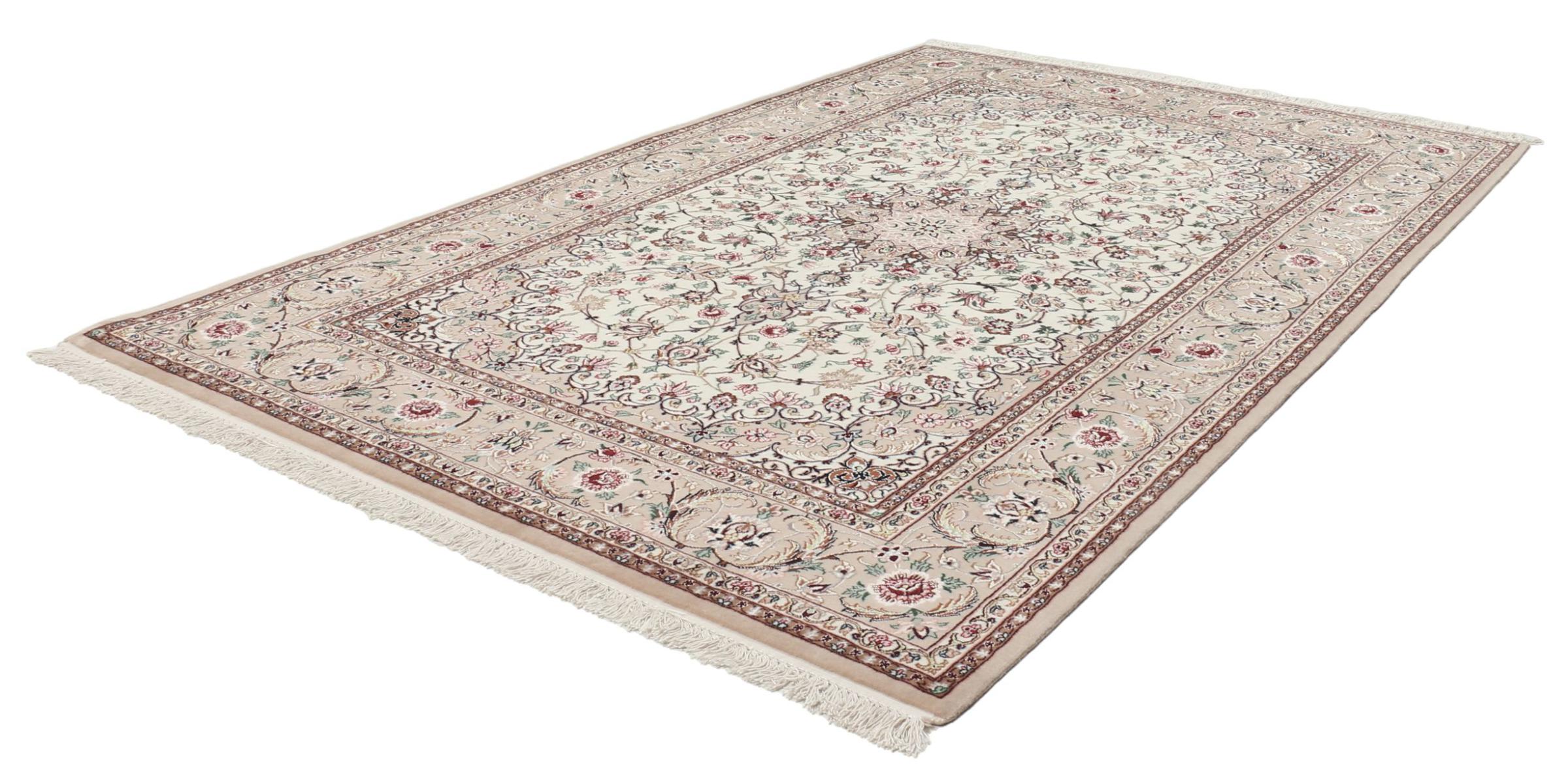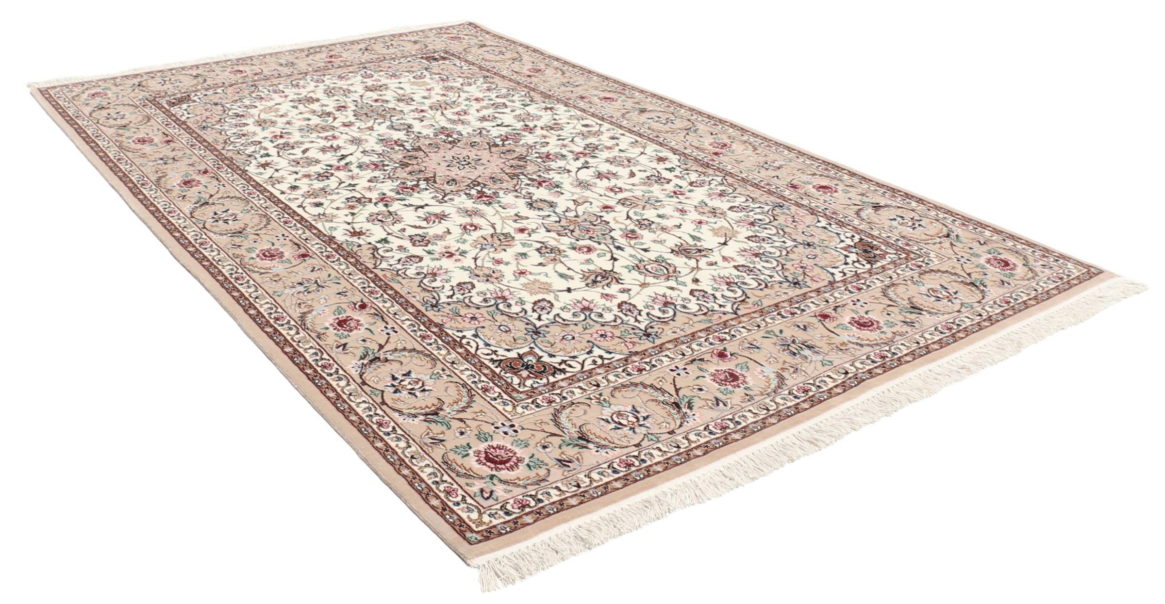 Nr.dywanu: 309394006816103 Wielkość: 206x126 cm Grubość: ok. 6 mm Gęstość tkania: 810 000 / m² Przetwarzanie: Ręcznie tkane Włosie: Wełna z jedwabiem Osnowa: Jewab Pochodzenie: Persja / Iran Wiek: nowe Waga: ok. 8 kg Ilość w magazynie: Unikalny - Tylko 1 na składzie