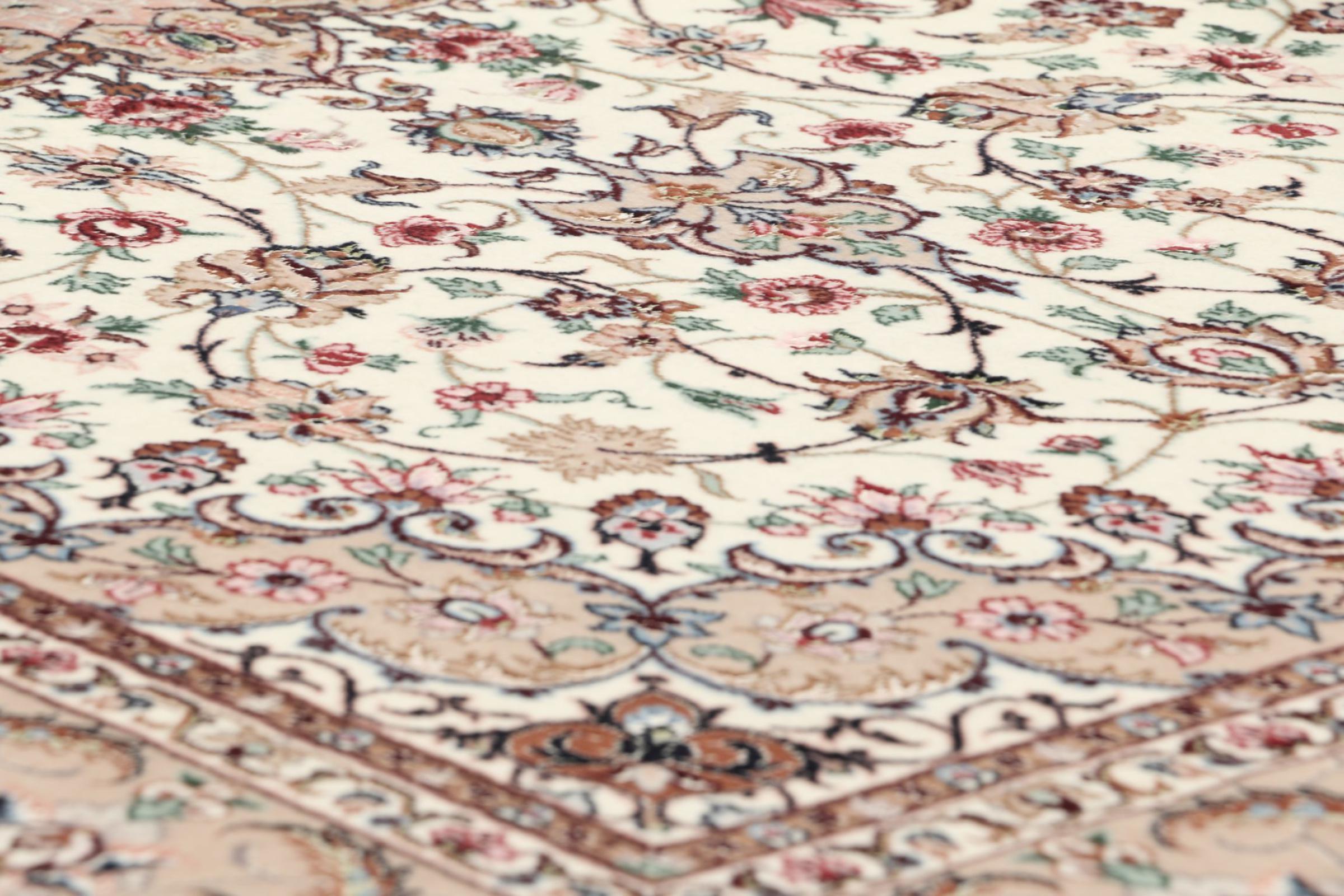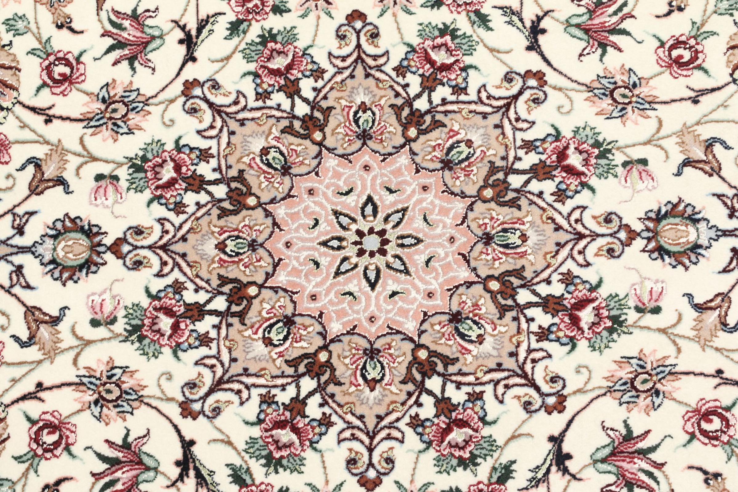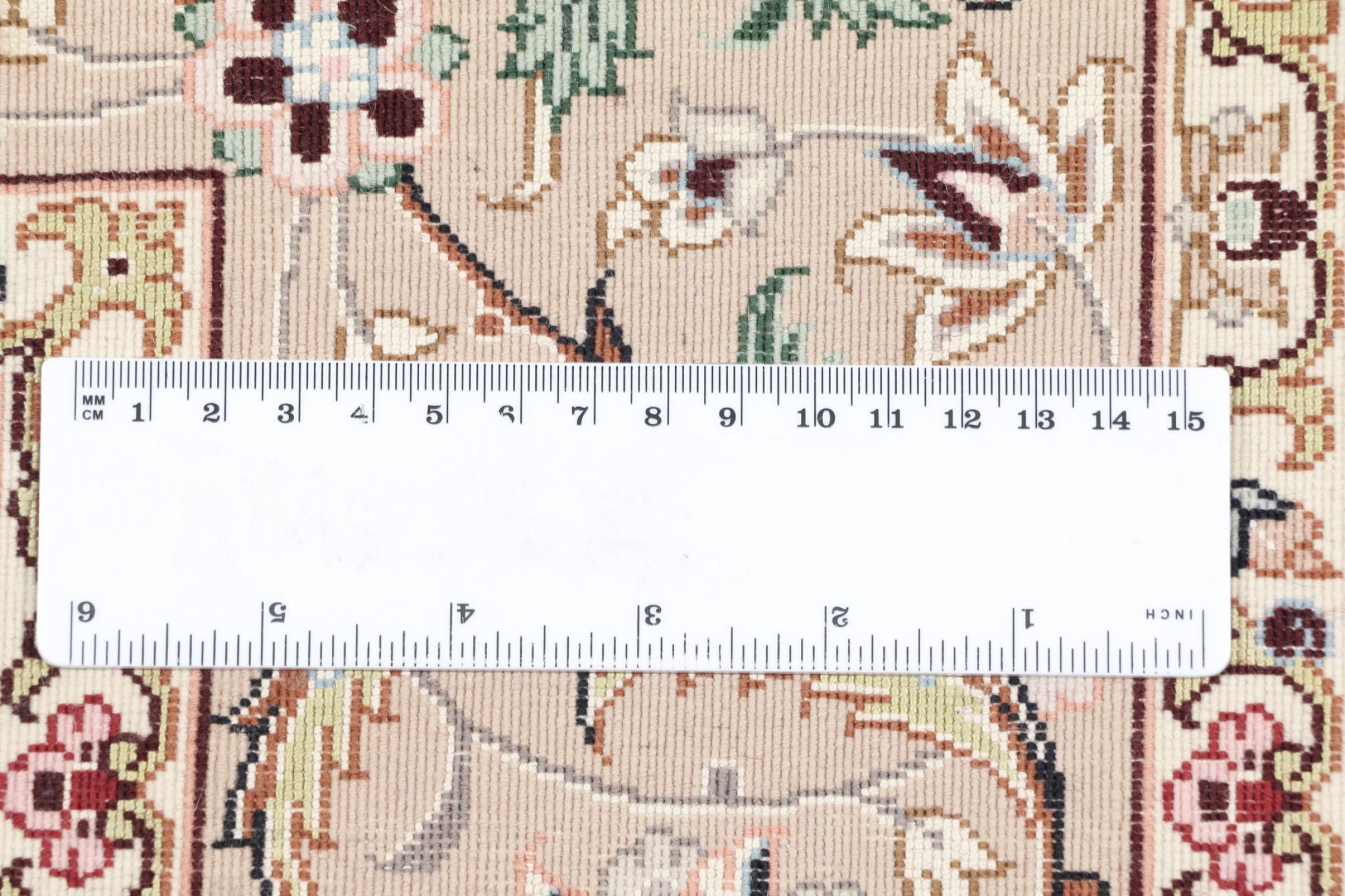 Nr.dywanu: 309394006816103 Wielkość: 206x126 cm Grubość: ok. 6 mm Gęstość tkania: 810 000 / m² Przetwarzanie: Ręcznie tkane Włosie: Wełna z jedwabiem Osnowa: Jewab Pochodzenie: Persja / Iran Wiek: nowe Waga: ok. 8 kg Ilość w magazynie: Unikalny - Tylko 1 na składzie