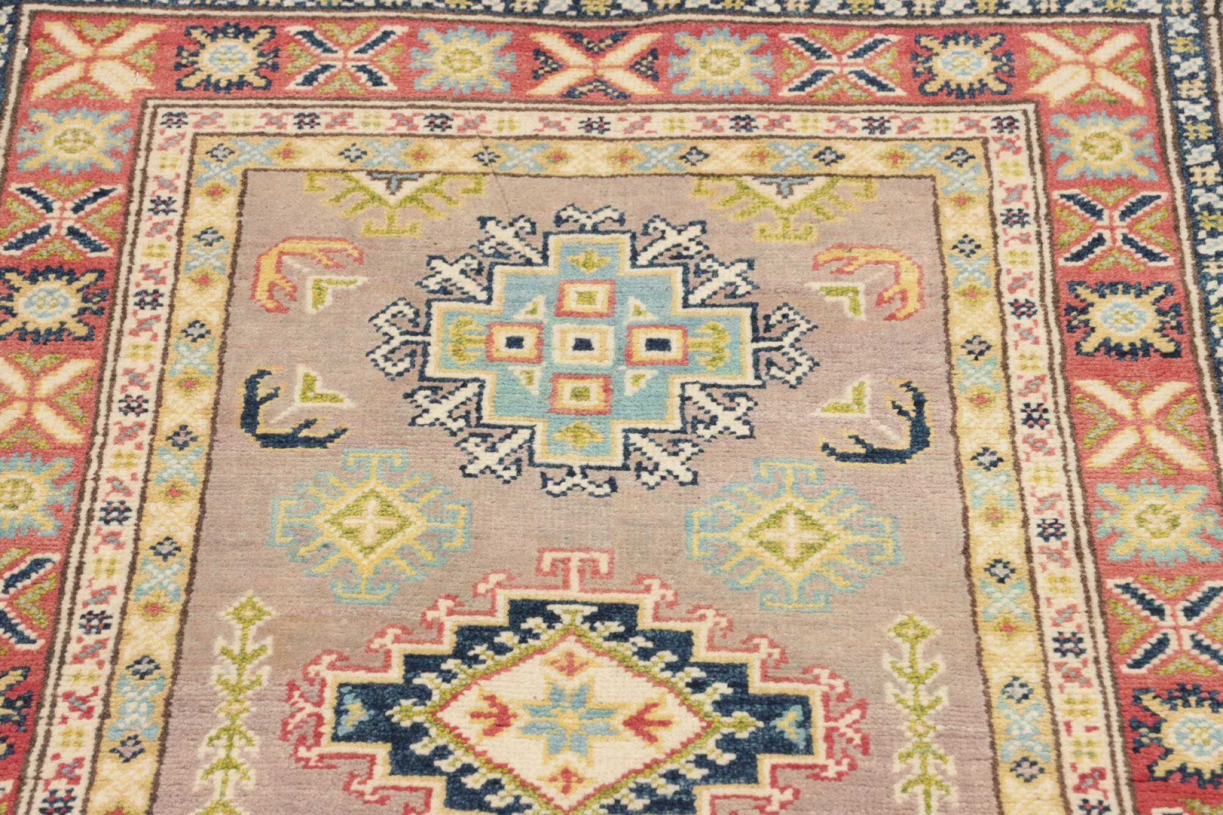 Nr.dywanu: 231289006948883 Wielkość: 131x80 cm Grubość: ok. 5 mm Gęstość tkania: 120 000 - 150 000 / m² Przetwarzanie: Ręcznie tkane Włosie: Wełna ręcznie przędzona Osnowa: Bawełna Pochodzenie: Pakistan Wiek: nowe Waga: ok. 3 kg Ilość w magazynie: Unikalny - Tylko 1 na składzie