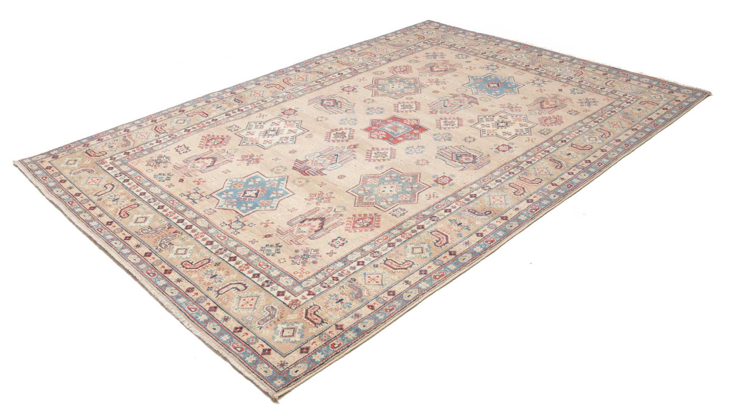 Nr.dywanu: 284307006969436 Wielkość: 273x190 cm Grubość: ok. 5 mm Gęstość tkania: 96 000 - 120 000 / m² Przetwarzanie: Ręcznie tkane Włosie: Wełna ręcznie przędzona Osnowa: Bawełna Pochodzenie: Afganistan Wiek: nowe Waga: ok. 13 kg Ilość w magazynie: Unikalny - Tylko 1 na składzie