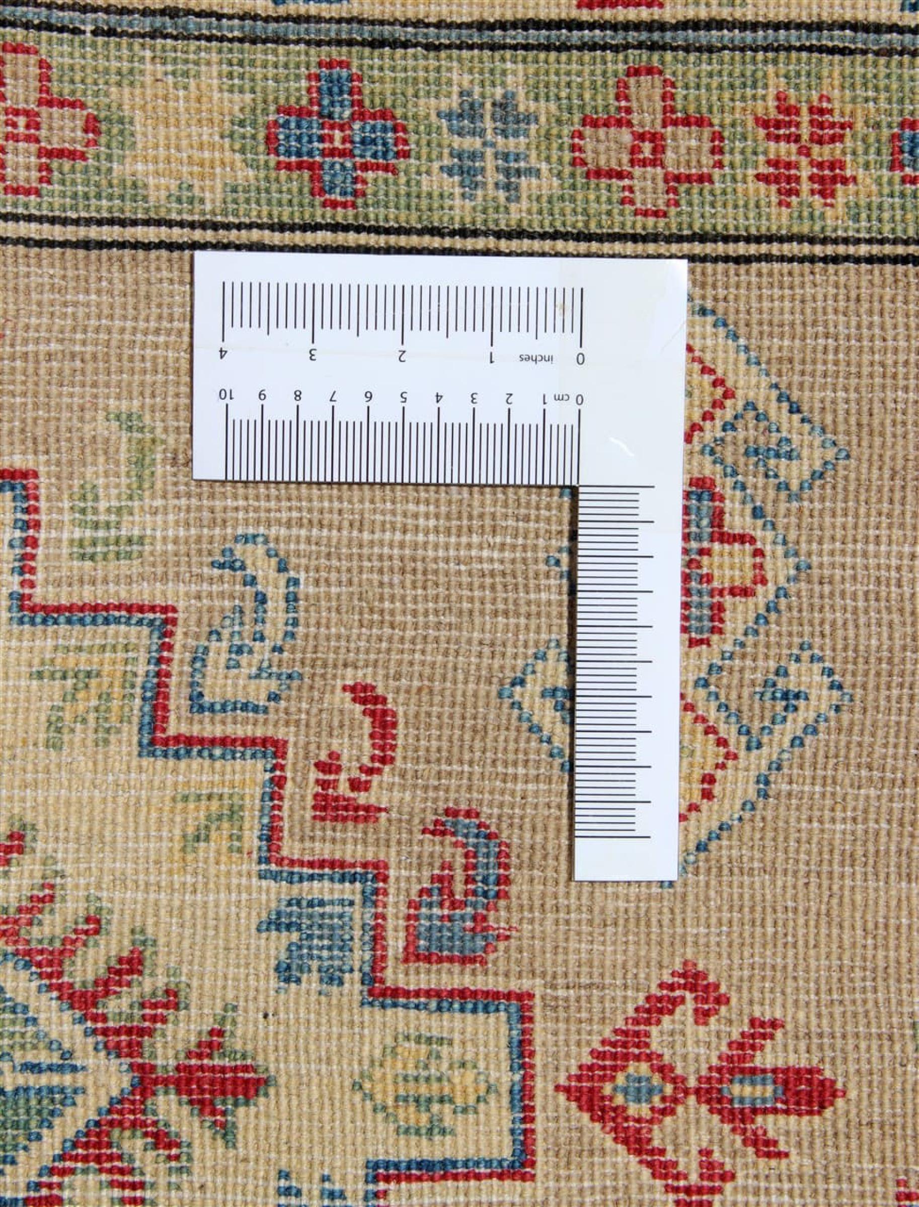 Nr.dywanu: 304773001457071 Wielkość: 290x198 cm Grubość: ok. 5 mm Gęstość tkania: 96 000 - 120 000 / m² Przetwarzanie: Ręcznie tkane Włosie: Wełna ręcznie przędzona Osnowa: Bawełna Pochodzenie: Afganistan Wiek: nowe Waga: ok. 14 kg Ilość w magazynie: Unikalny - Tylko 1 na składzie