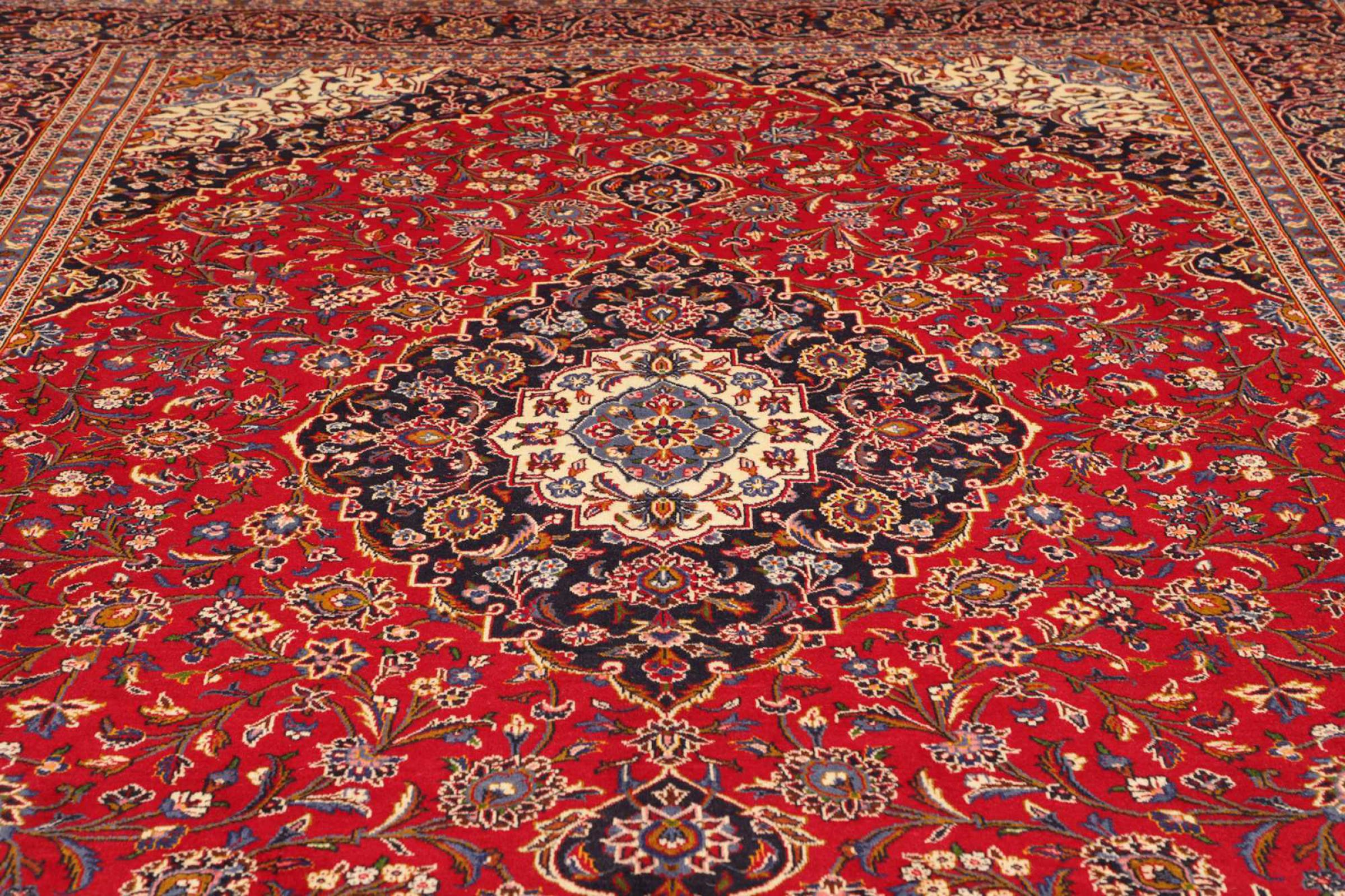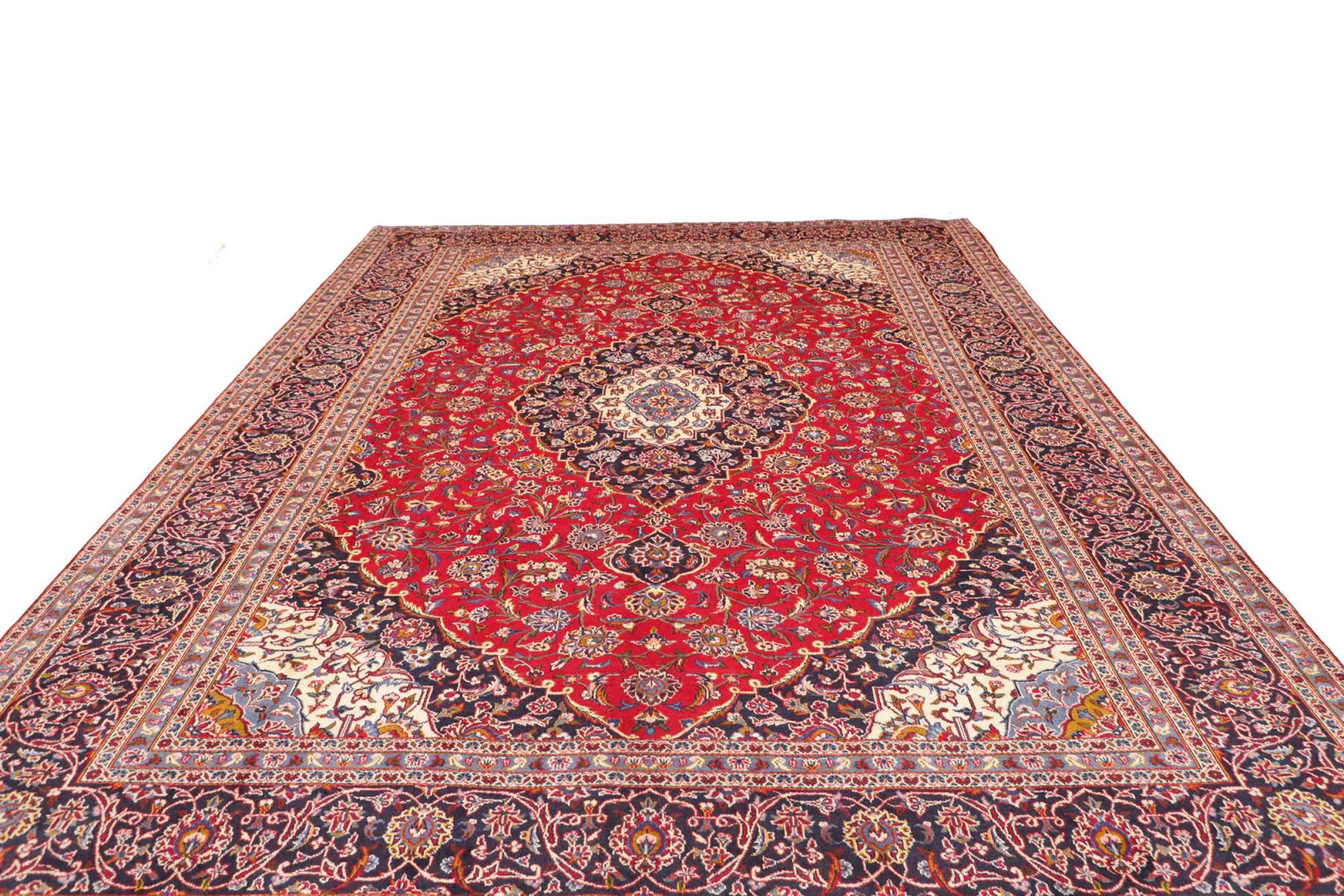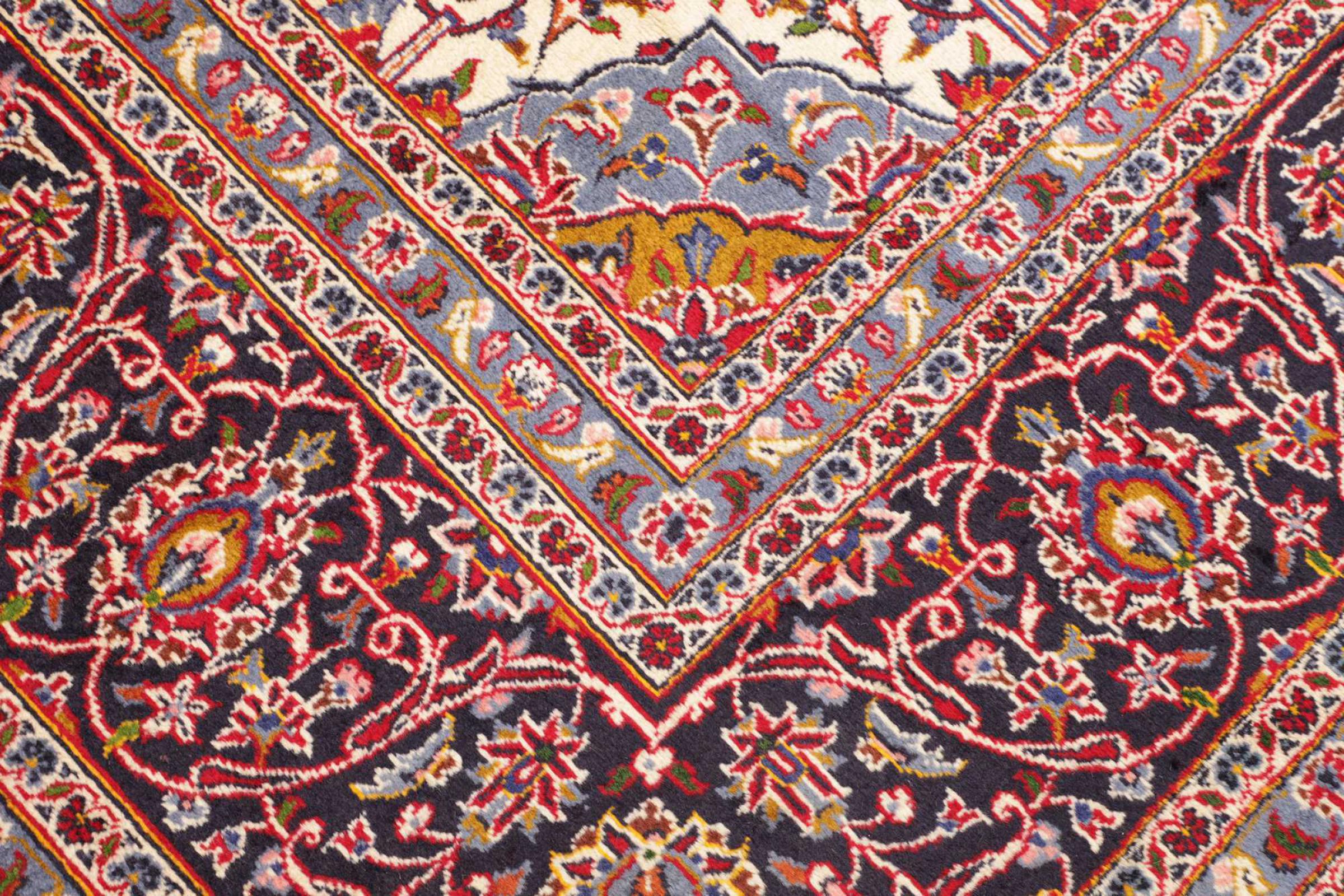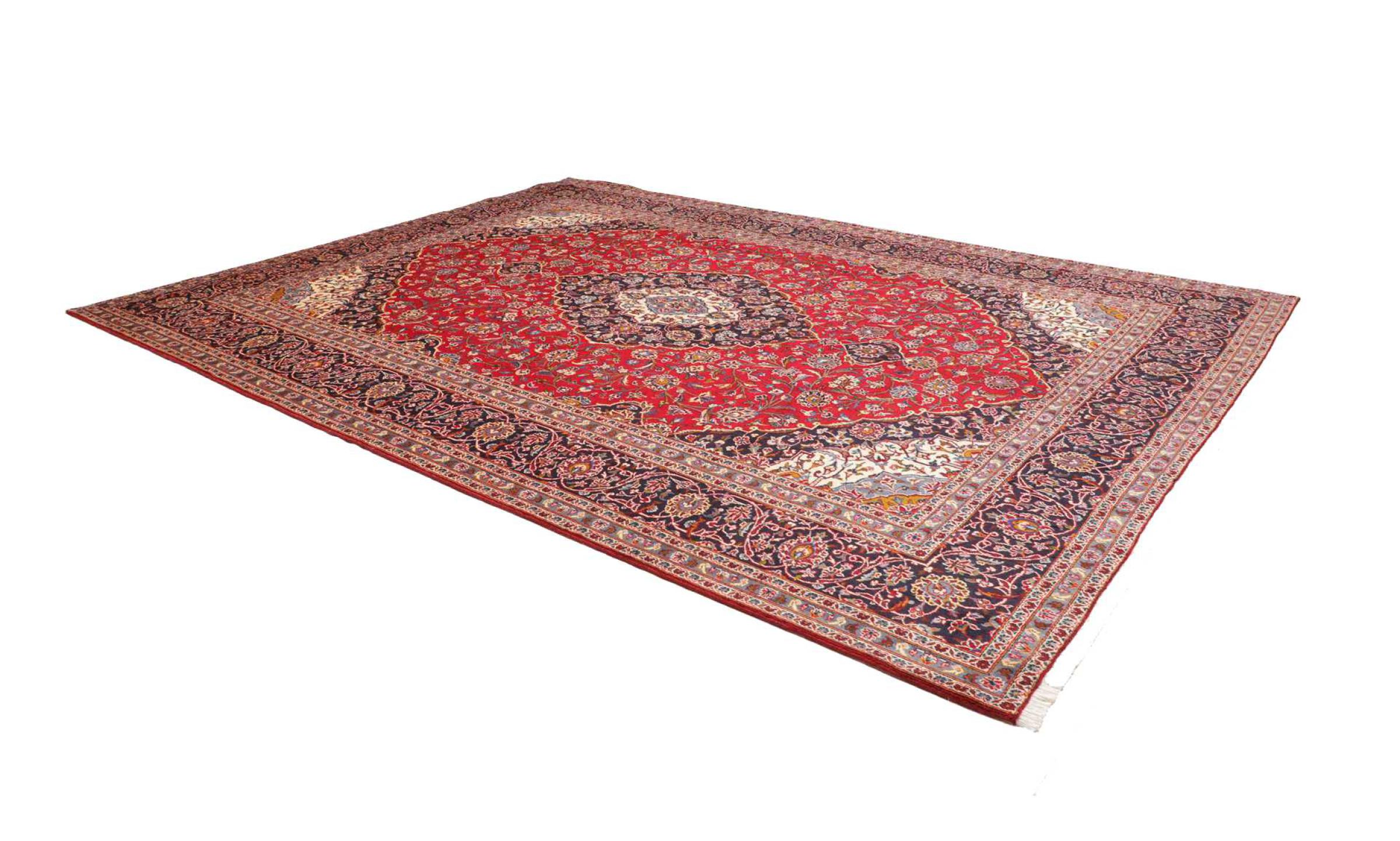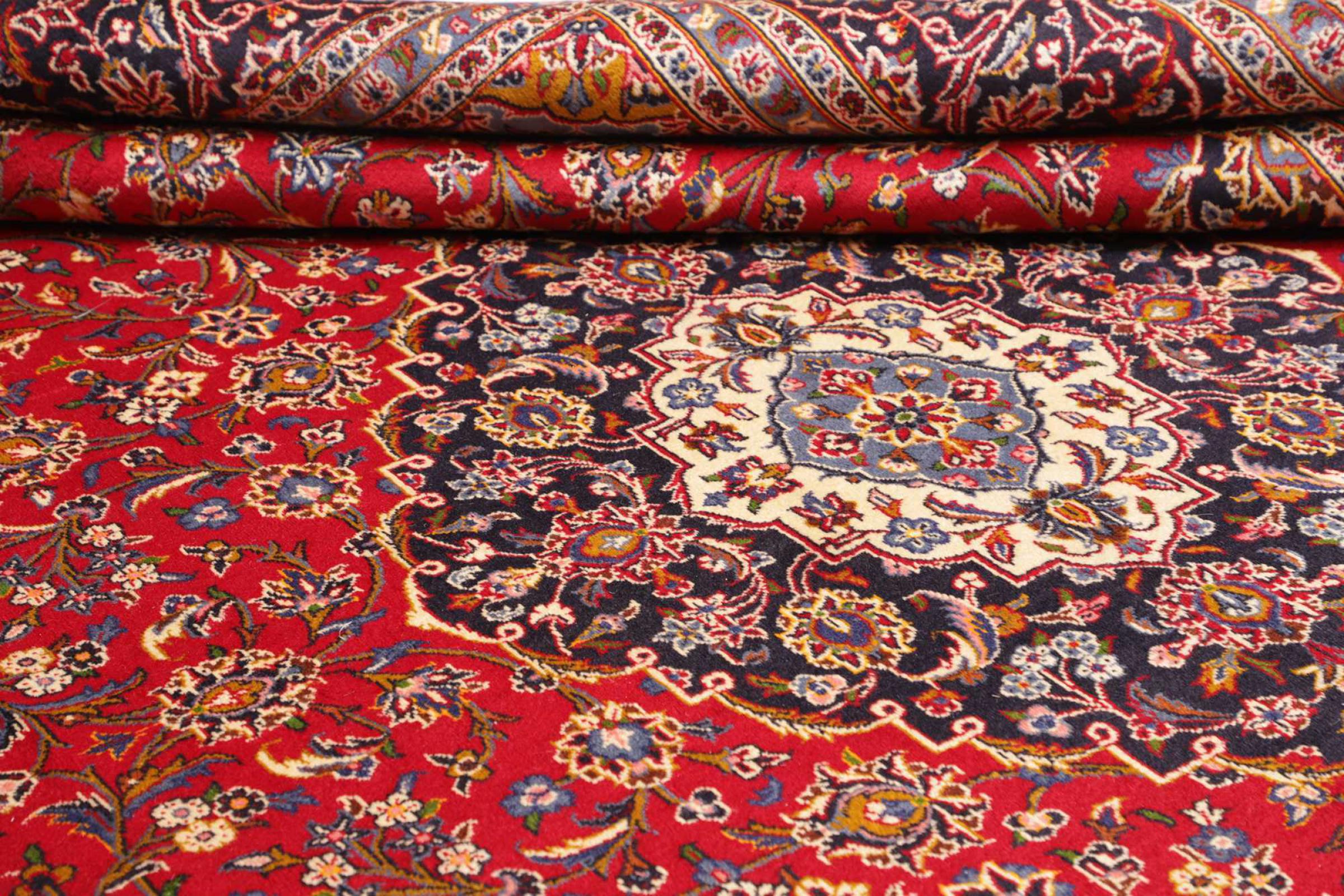 Ten dywan z Kashan (Keshan) ma bardzo tradycyjny i typowy perski wzór z pięknymi ornamentami. Dywany Kashan cieszą się dużą popularnością ze względu na ich wyjątkowo elegancki design. Dywany te pochodzą z Kaszanu, miasta leżącego na starożytnym Jedwabnym Szlaku. Ten dywan został ręcznie tkany z wysokiej jakości wełny owczej i będzie jedyną w swoim rodzaju atrakcją w Twoim domu.