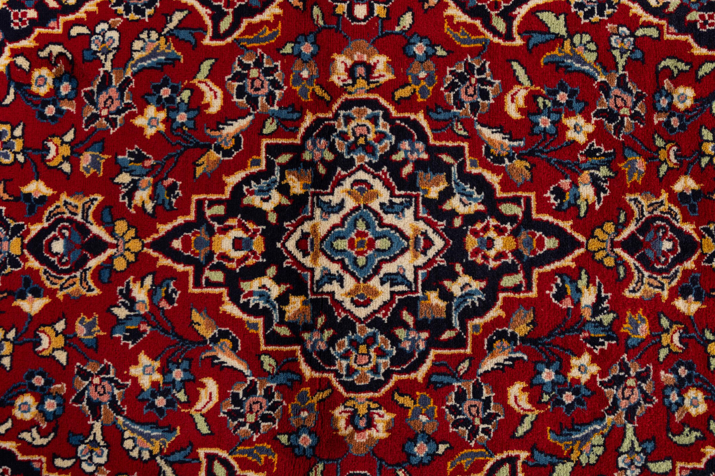 Ten dywan z Kashan (Keshan) ma bardzo tradycyjny i typowy perski wzór z pięknymi ornamentami. Dywany Kashan cieszą się dużą popularnością ze względu na ich wyjątkowo elegancki design. Dywany te pochodzą z Kaszanu, miasta leżącego na starożytnym Jedwabnym Szlaku. Ten dywan został ręcznie tkany z wysokiej jakości wełny owczej i będzie jedyną w swoim rodzaju atrakcją w Twoim domu.