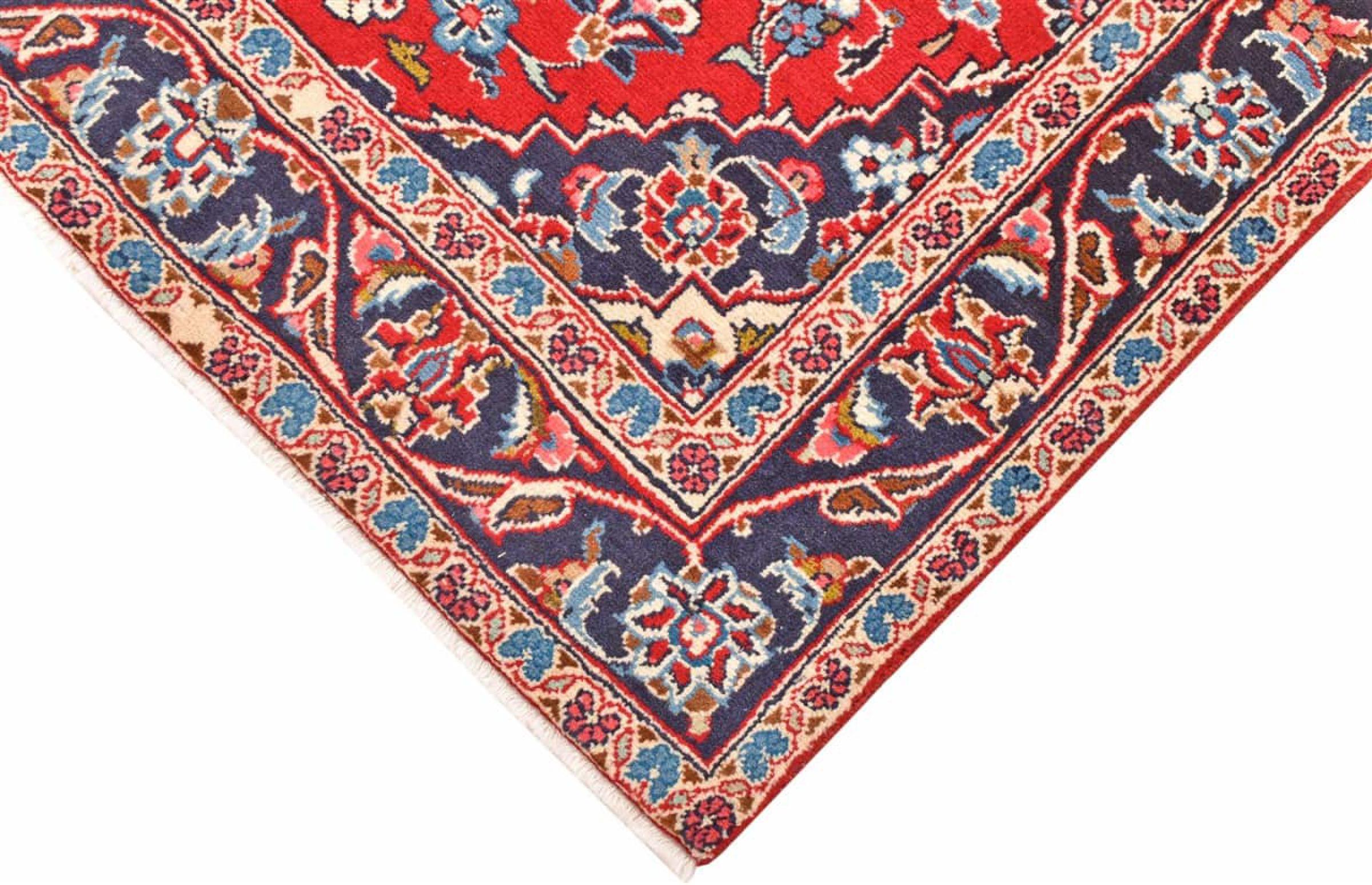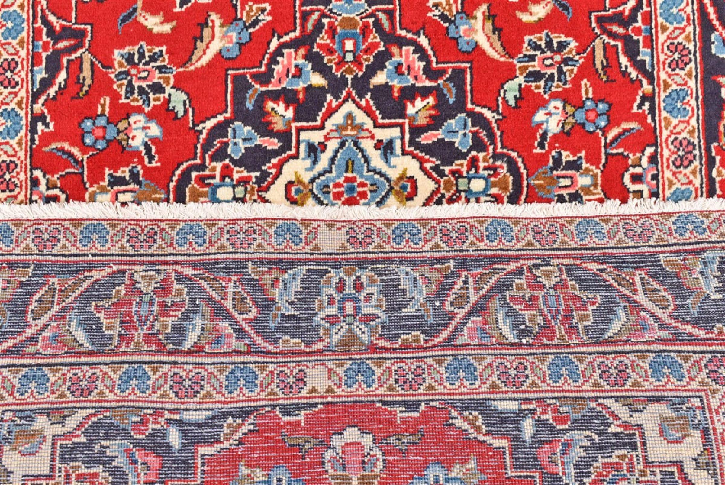 Ten dywan z Kashan (Keshan) ma bardzo tradycyjny i typowy perski wzór z pięknymi ornamentami. Dywany Kashan cieszą się dużą popularnością ze względu na ich wyjątkowo elegancki design. Dywany te pochodzą z Kaszanu, miasta leżącego na starożytnym Jedwabnym Szlaku. Ten dywan został ręcznie tkany z wysokiej jakości wełny owczej i będzie jedyną w swoim rodzaju atrakcją w Twoim domu.