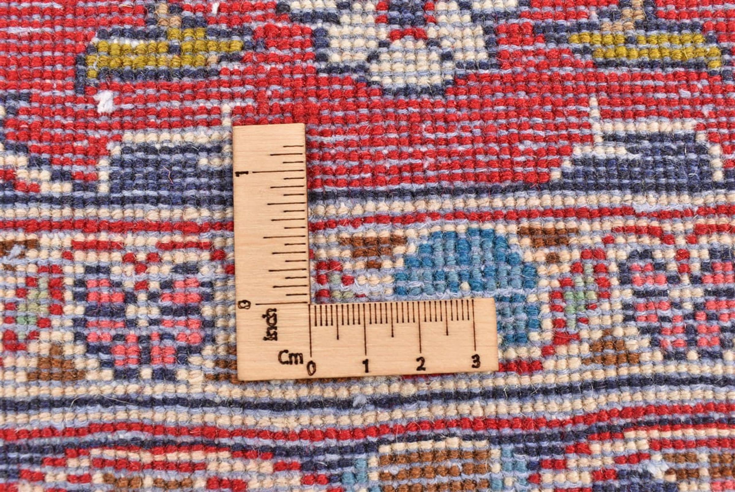 Dywan ten wykonany jest z ręcznie formowanej wełny owczej najwyższej jakości. Zwłaszcza w Iranie (była Persja), Afganistanie i Pakistanie wełna jest nadal ręcznie skręcana, zanim rozpocznie się faktyczne wiązanie dywanu. Wełna sprawdziła się jako naturalny i niezwykle wytrzymały materiał na przestrzeni wieków. Ma m.in. właściwości antybrudzące i termoizolacyjne. Jednocześnie wełna jest nieporównywalnie miękka i ma naturalny połysk.