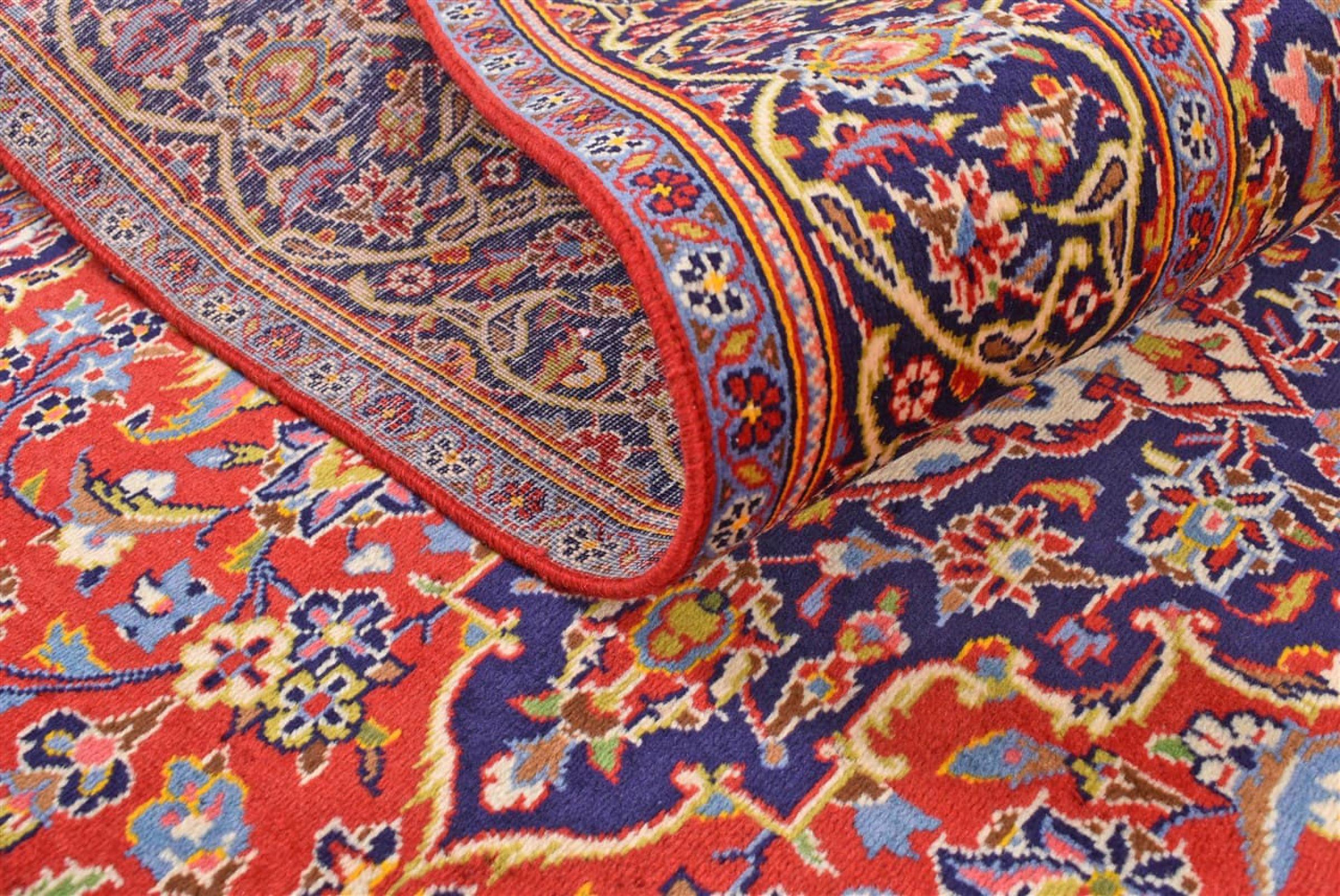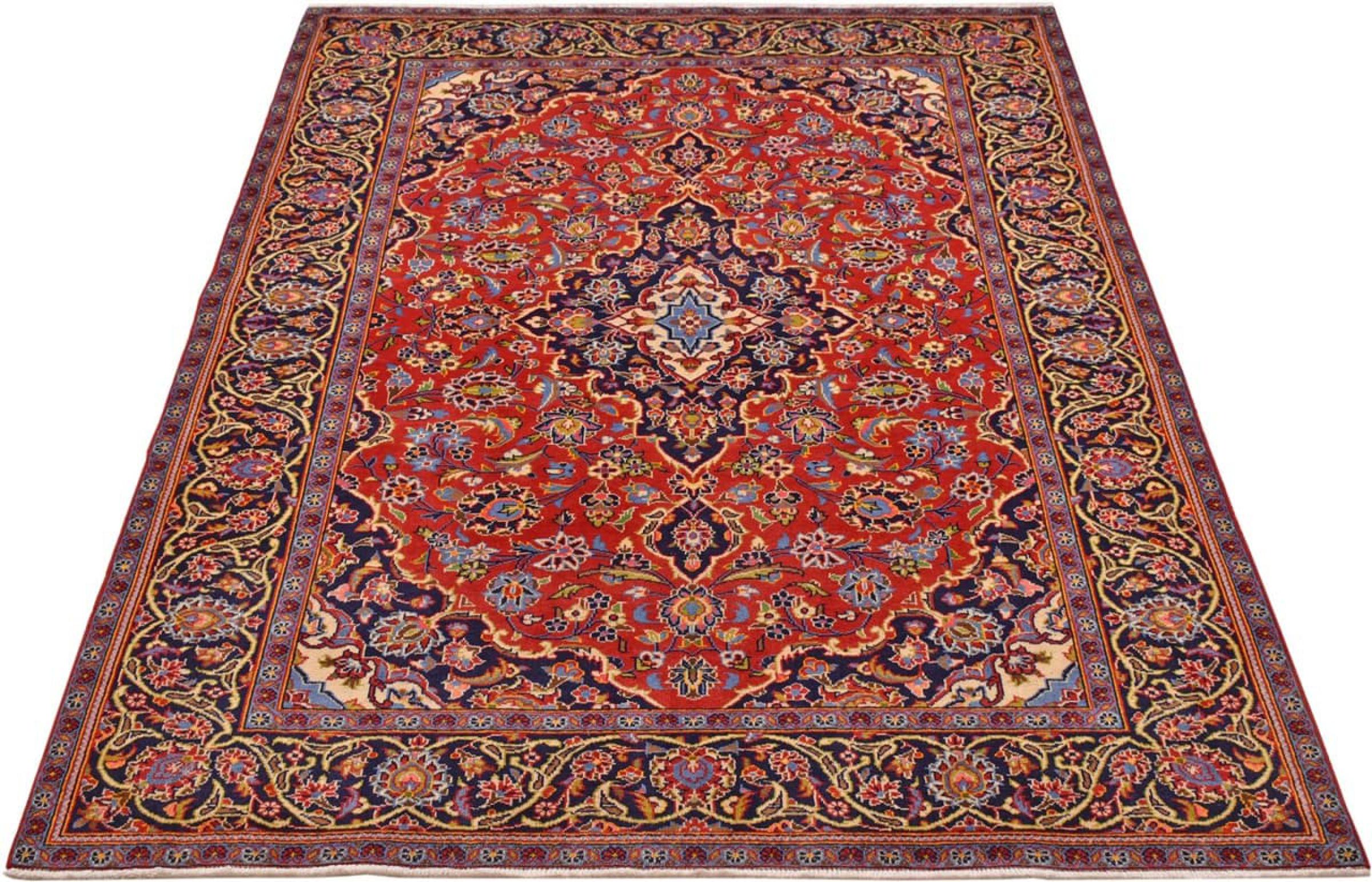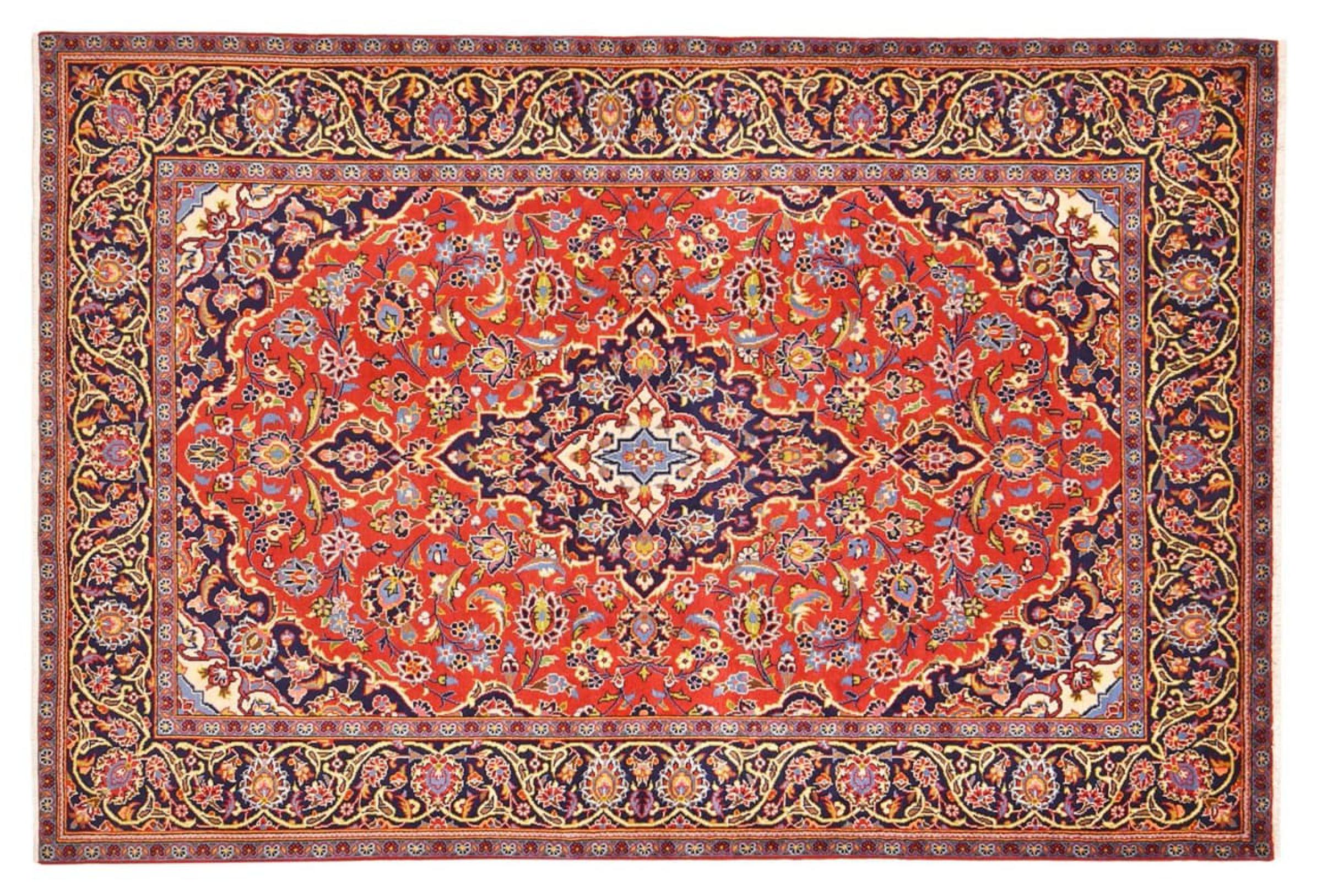 Ten dywan z Kashan (Keshan) ma bardzo tradycyjny i typowy perski wzór z pięknymi ornamentami. Dywany Kashan cieszą się dużą popularnością ze względu na ich wyjątkowo elegancki design. Dywany te pochodzą z Kaszanu, miasta leżącego na starożytnym Jedwabnym Szlaku. Ten dywan został ręcznie tkany z wysokiej jakości wełny owczej i będzie jedyną w swoim rodzaju atrakcją w Twoim domu.
