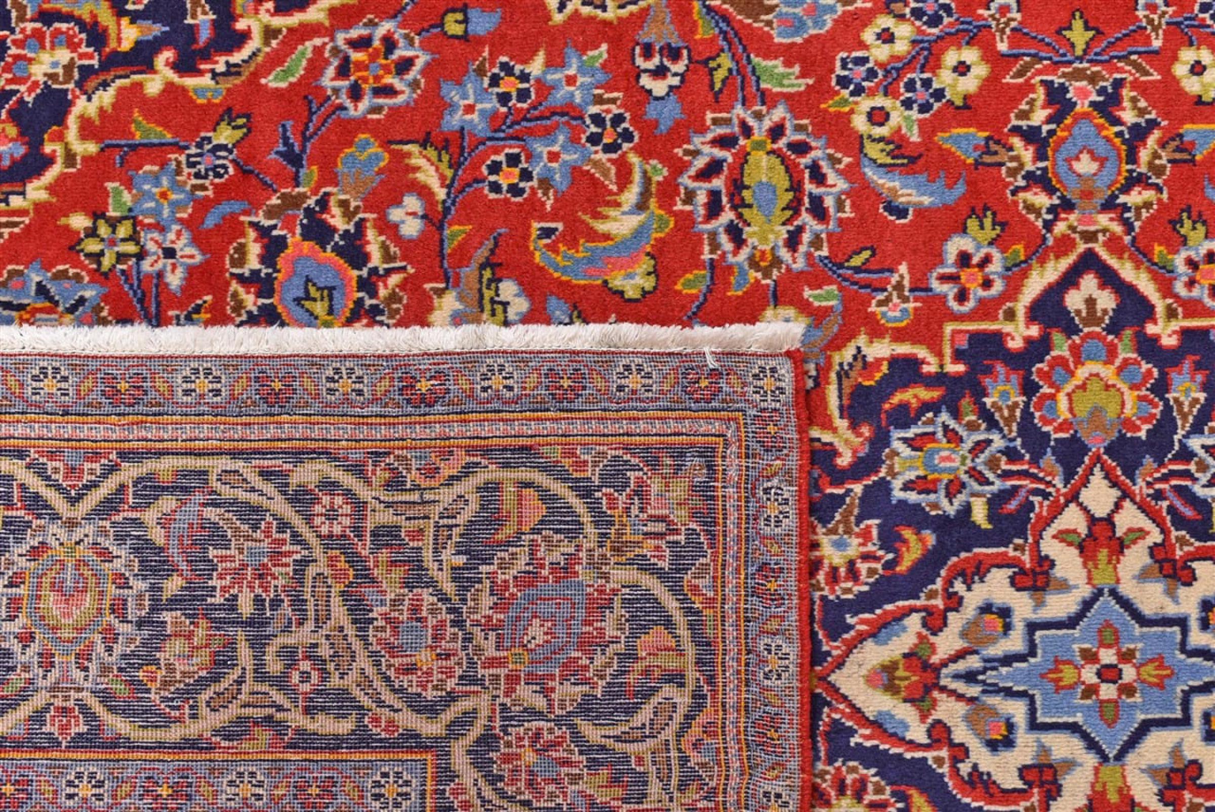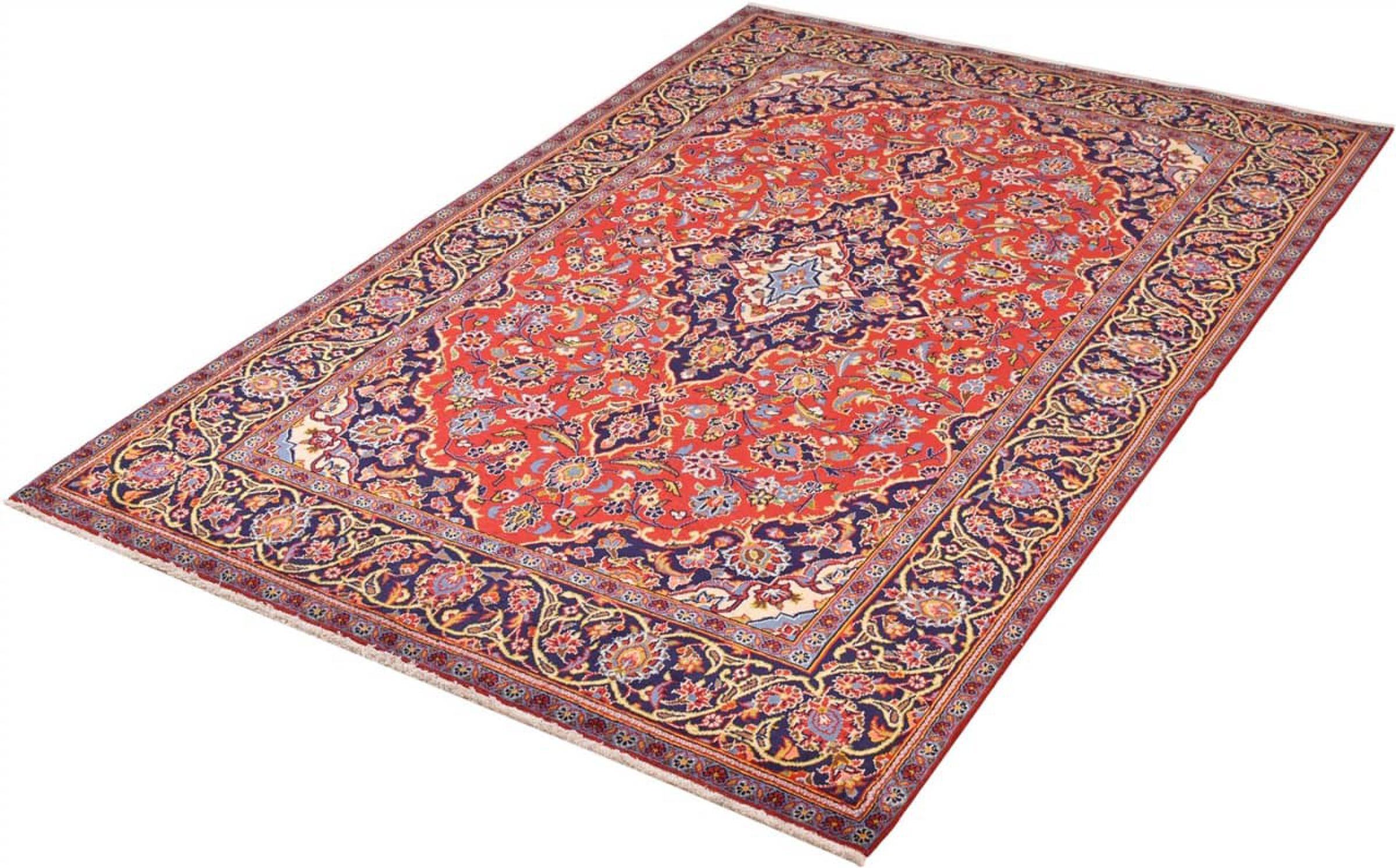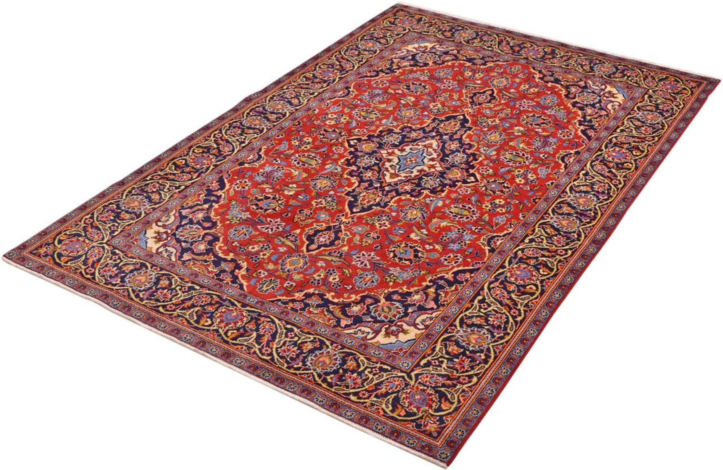 Ten dywan z Kashan (Keshan) ma bardzo tradycyjny i typowy perski wzór z pięknymi ornamentami. Dywany Kashan cieszą się dużą popularnością ze względu na ich wyjątkowo elegancki design. Dywany te pochodzą z Kaszanu, miasta leżącego na starożytnym Jedwabnym Szlaku. Ten dywan został ręcznie tkany z wysokiej jakości wełny owczej i będzie jedyną w swoim rodzaju atrakcją w Twoim domu.