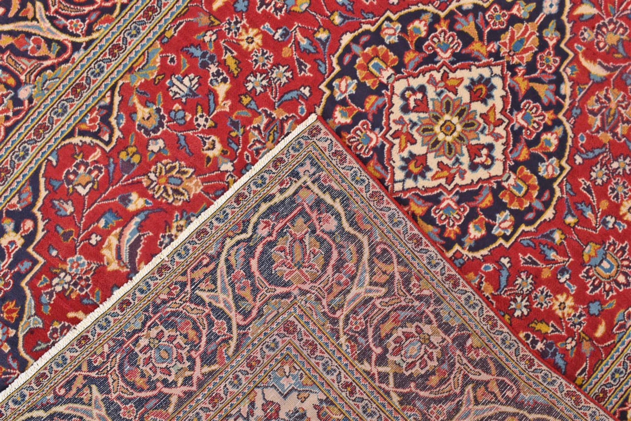 Ten dywan z Kashan (Keshan) ma bardzo tradycyjny i typowy perski wzór z pięknymi ornamentami. Dywany Kashan cieszą się dużą popularnością ze względu na ich wyjątkowo elegancki design. Dywany te pochodzą z Kaszanu, miasta leżącego na starożytnym Jedwabnym Szlaku. Ten dywan został ręcznie tkany z wysokiej jakości wełny owczej i będzie jedyną w swoim rodzaju atrakcją w Twoim domu.