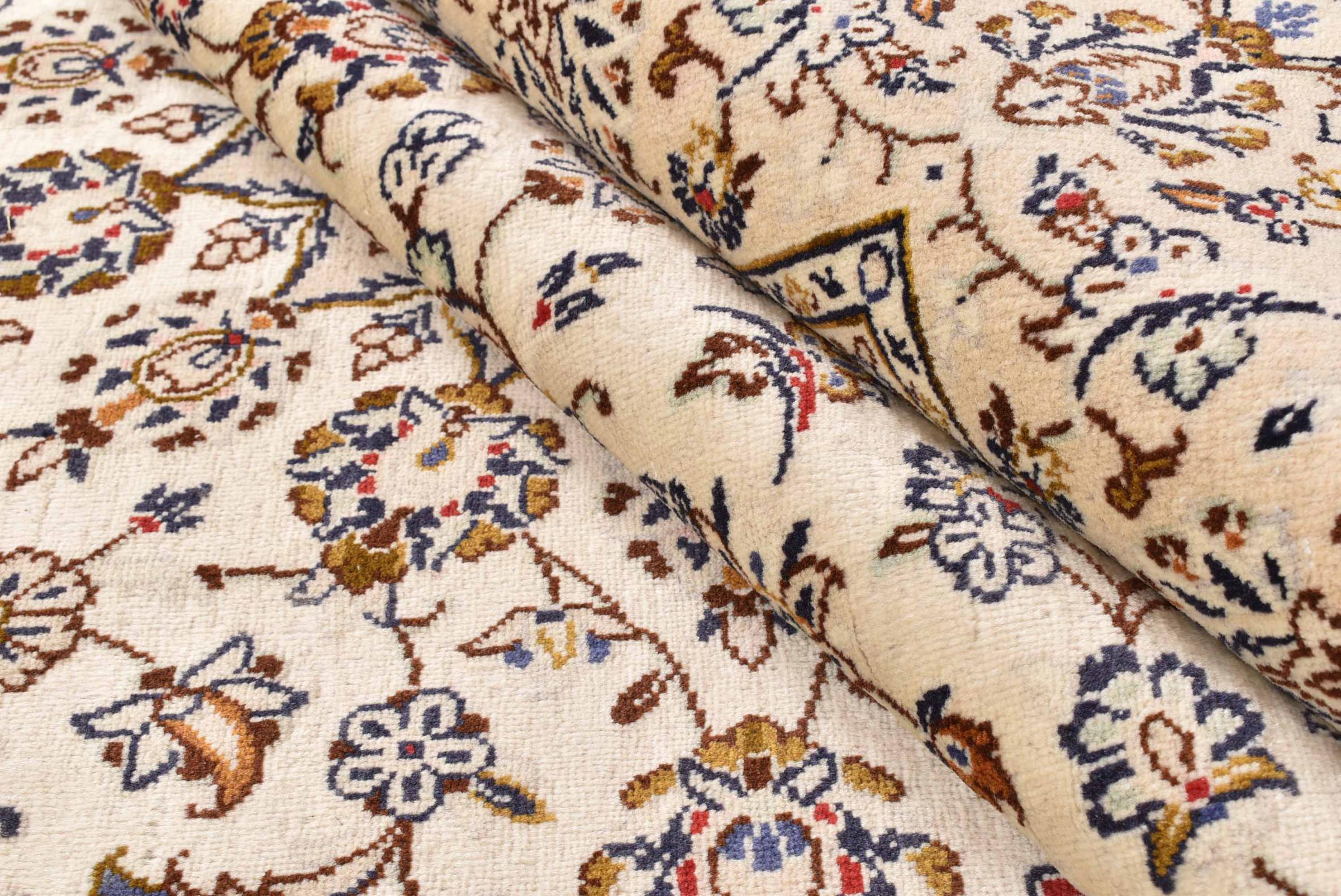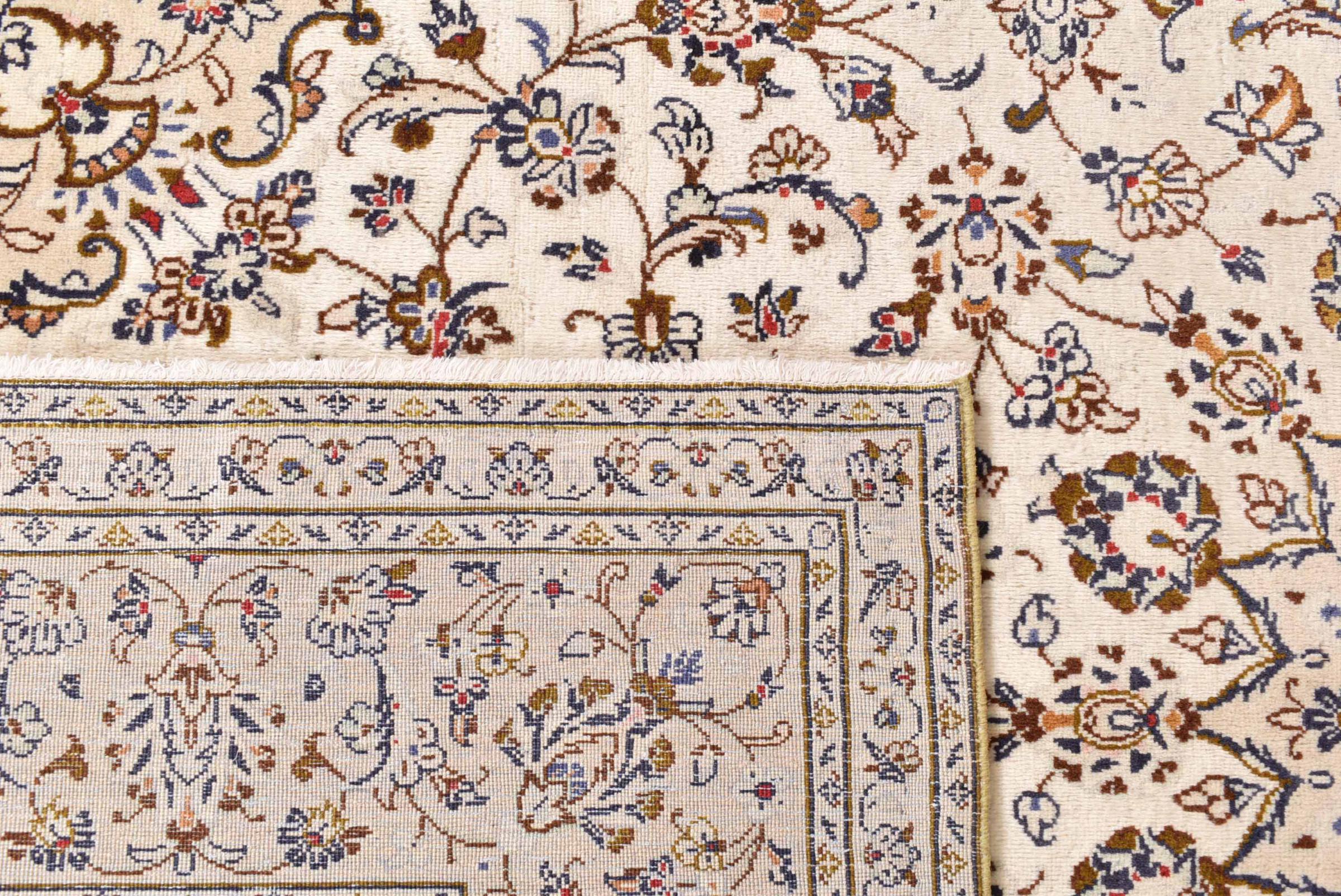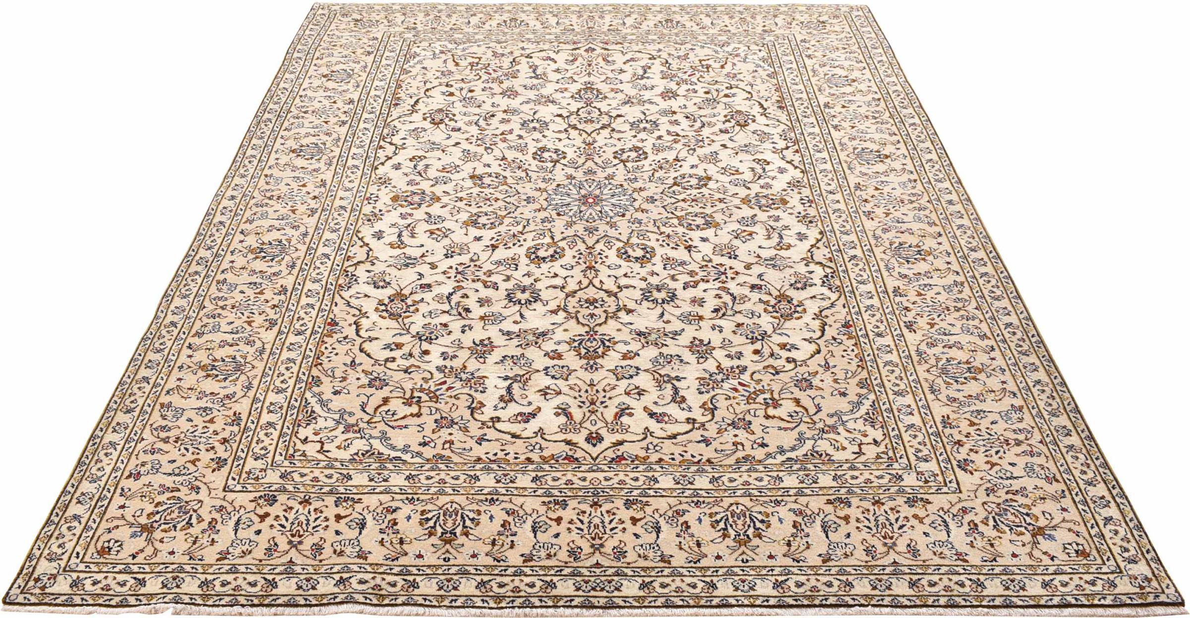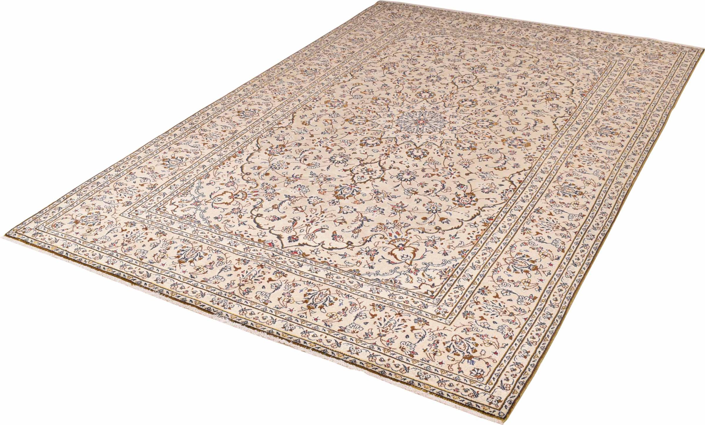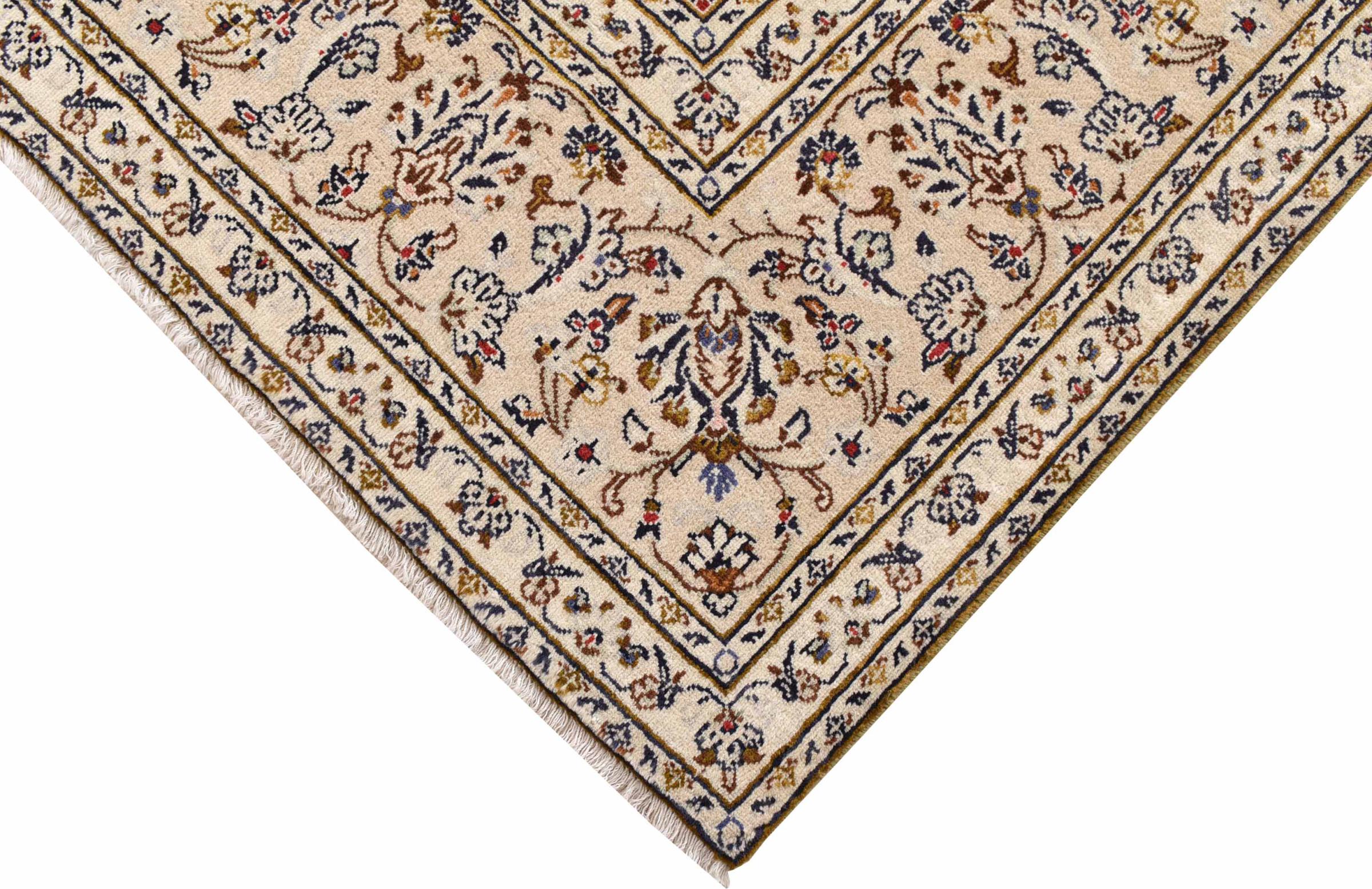 Ten dywan z Kashan (Keshan) ma bardzo tradycyjny i typowy perski wzór z pięknymi ornamentami. Dywany Kashan cieszą się dużą popularnością ze względu na ich wyjątkowo elegancki design. Dywany te pochodzą z Kaszanu, miasta leżącego na starożytnym Jedwabnym Szlaku. Ten dywan został ręcznie tkany z wysokiej jakości wełny owczej i będzie jedyną w swoim rodzaju atrakcją w Twoim domu.