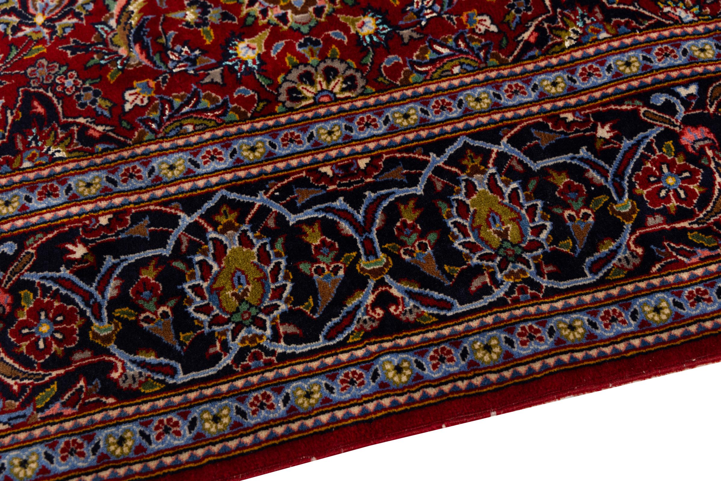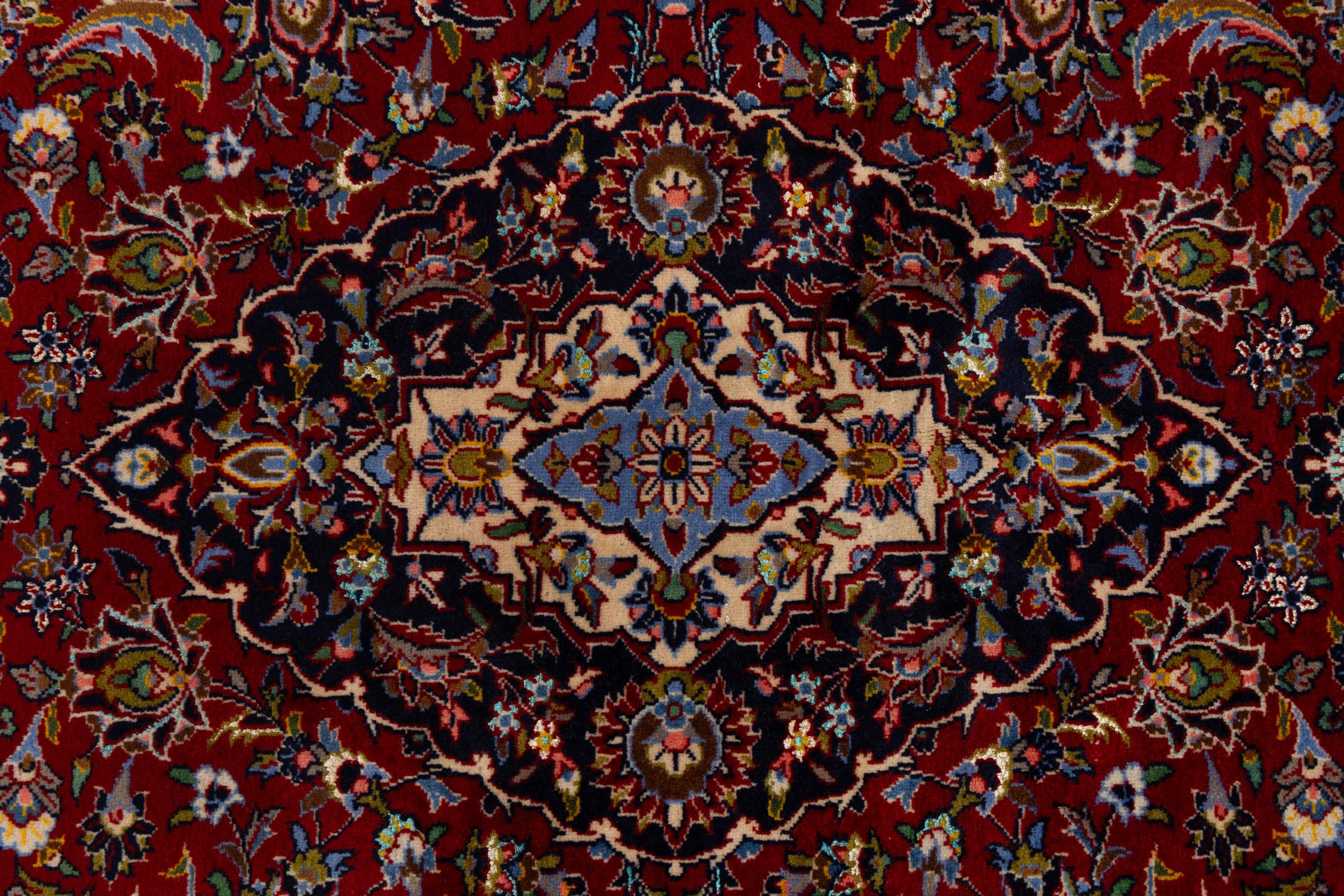 Ten dywan z Kashan (Keshan) ma bardzo tradycyjny i typowy perski wzór z pięknymi ornamentami. Dywany Kashan cieszą się dużą popularnością ze względu na ich wyjątkowo elegancki design. Dywany te pochodzą z Kaszanu, miasta leżącego na starożytnym Jedwabnym Szlaku. Ten dywan został ręcznie tkany z wysokiej jakości wełny owczej i będzie jedyną w swoim rodzaju atrakcją w Twoim domu.