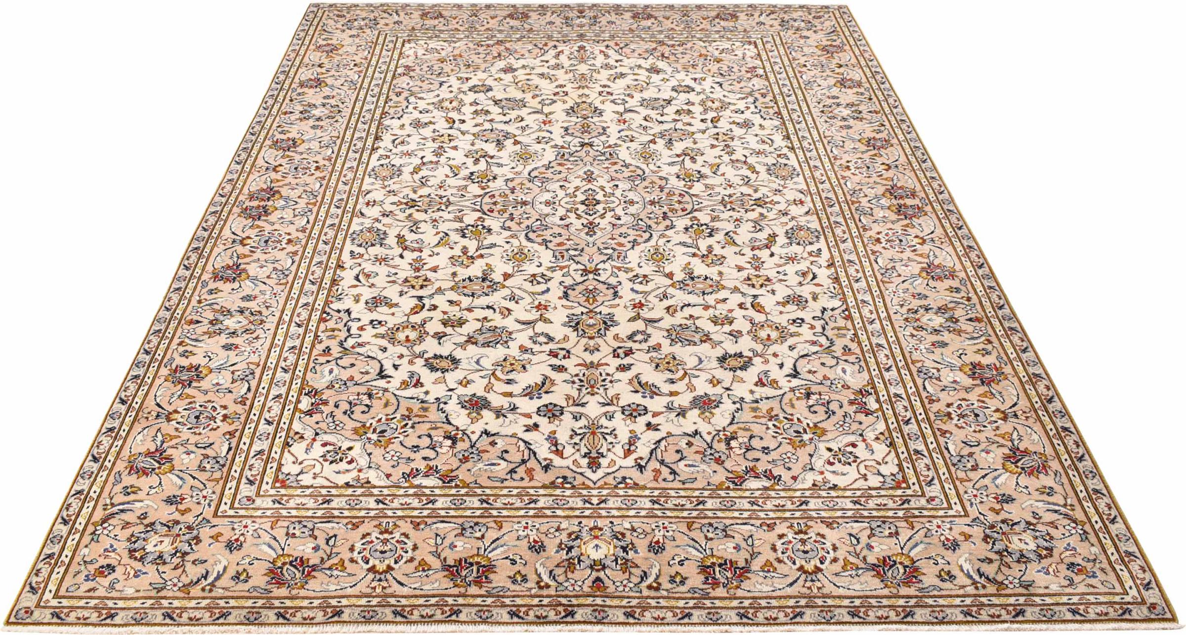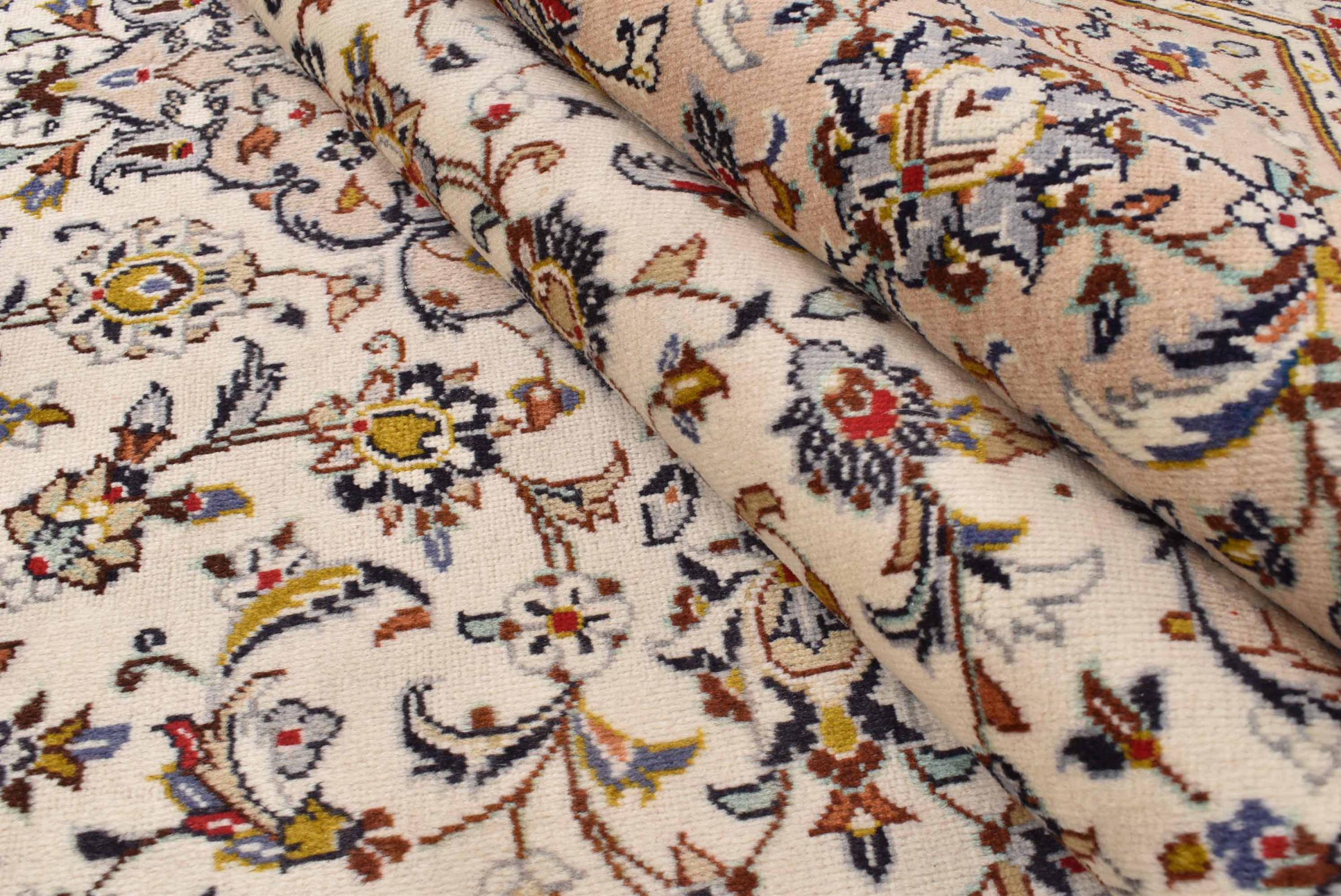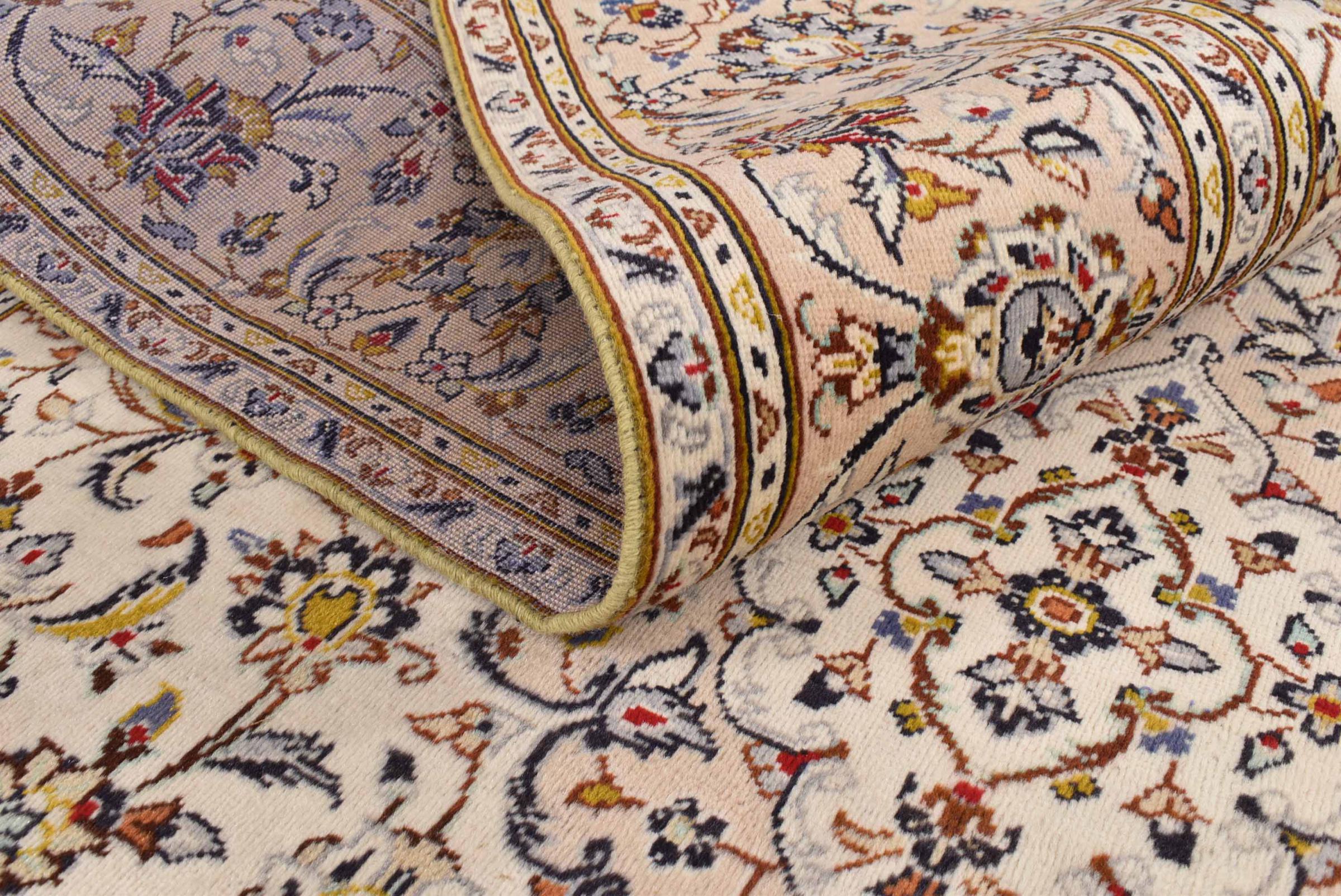 Ten dywan z Kashan (Keshan) ma bardzo tradycyjny i typowy perski wzór z pięknymi ornamentami. Dywany Kashan cieszą się dużą popularnością ze względu na ich wyjątkowo elegancki design. Dywany te pochodzą z Kaszanu, miasta leżącego na starożytnym Jedwabnym Szlaku. Ten dywan został ręcznie tkany z wysokiej jakości wełny owczej i będzie jedyną w swoim rodzaju atrakcją w Twoim domu.
