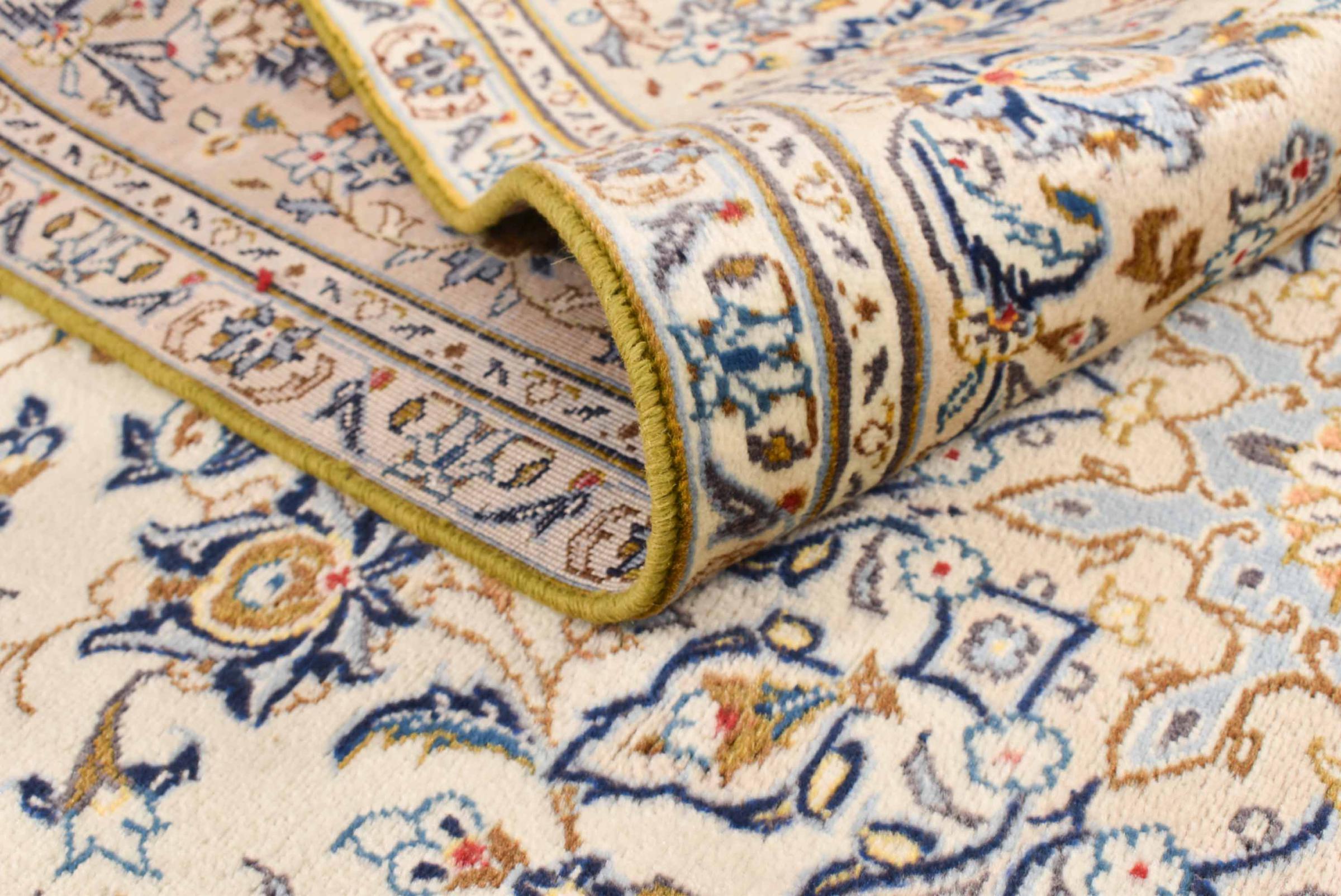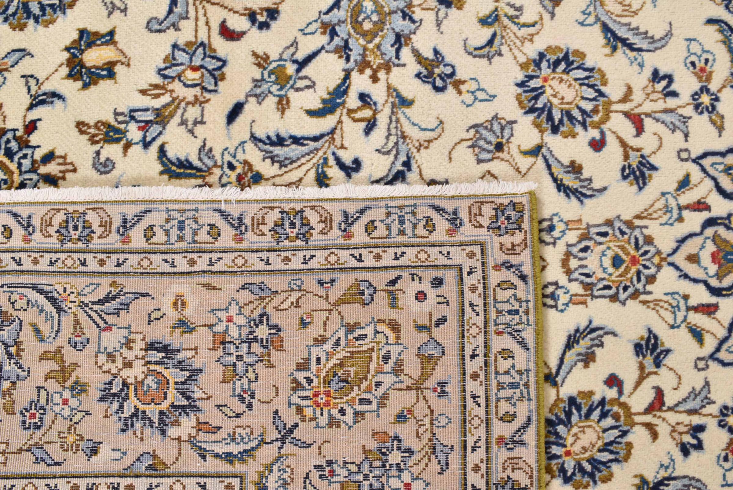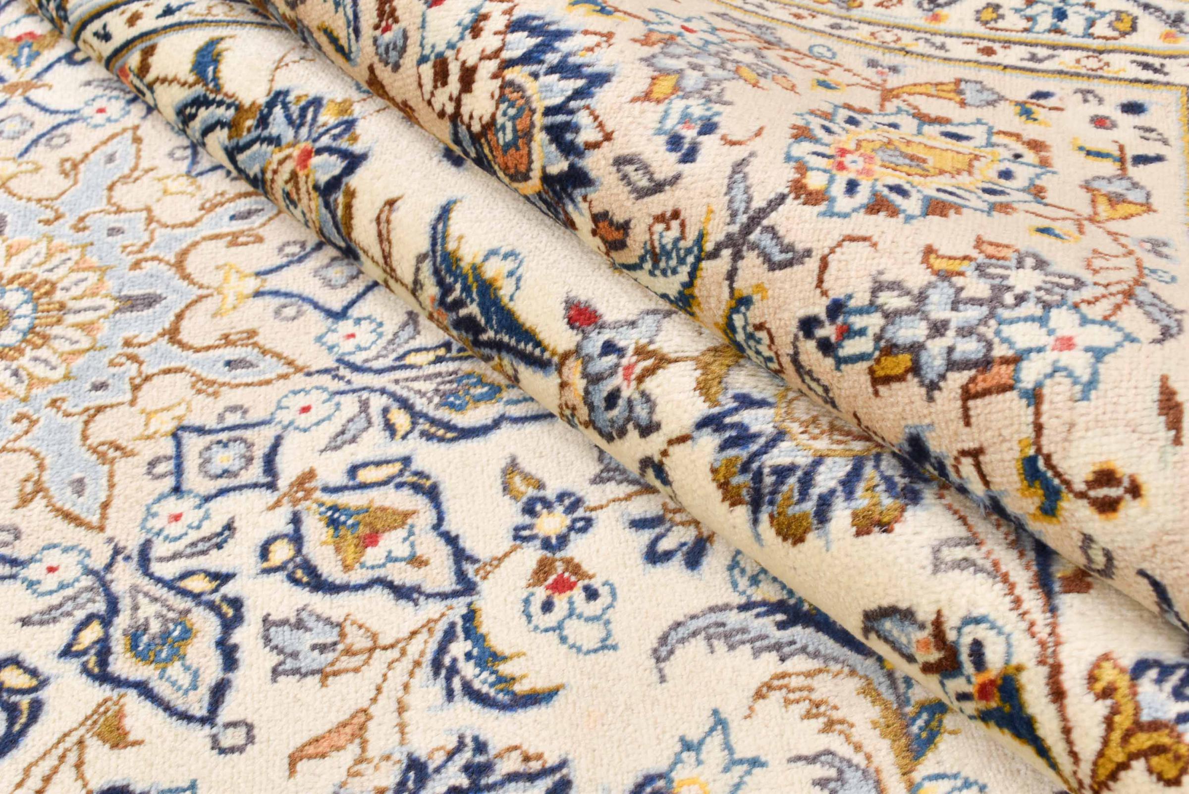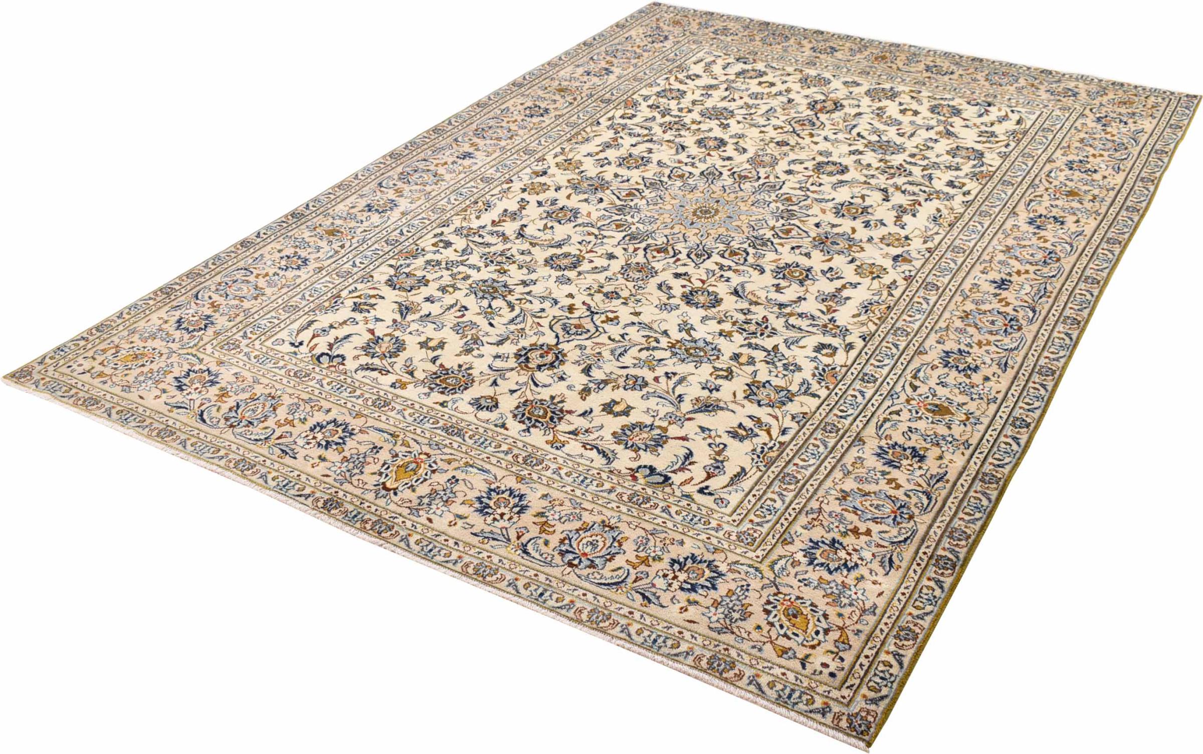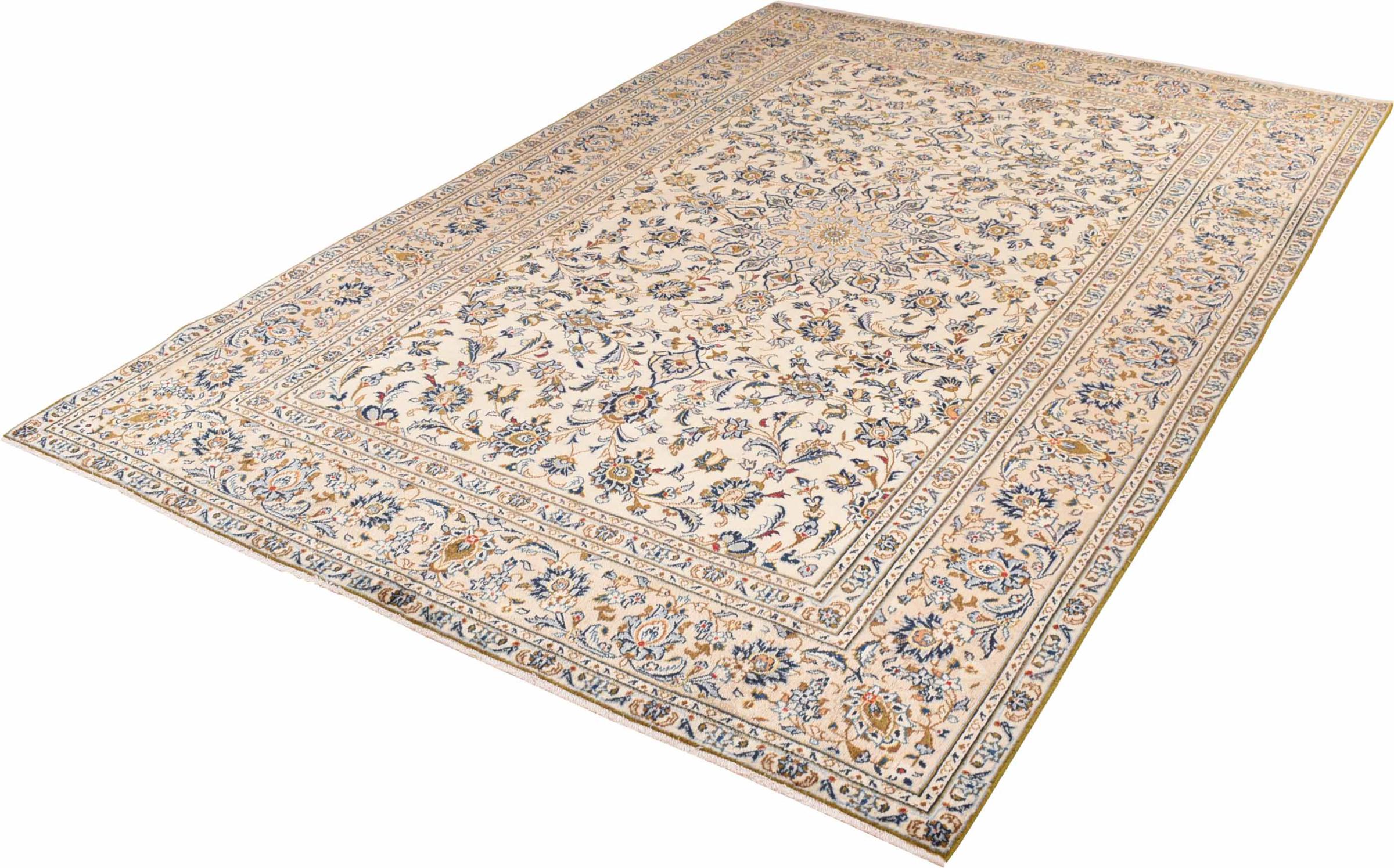Ten dywan z Kashan (Keshan) ma bardzo tradycyjny i typowy perski wzór z pięknymi ornamentami. Dywany Kashan cieszą się dużą popularnością ze względu na ich wyjątkowo elegancki design. Dywany te pochodzą z Kaszanu, miasta leżącego na starożytnym Jedwabnym Szlaku. Ten dywan został ręcznie tkany z wysokiej jakości wełny owczej i będzie jedyną w swoim rodzaju atrakcją w Twoim domu.