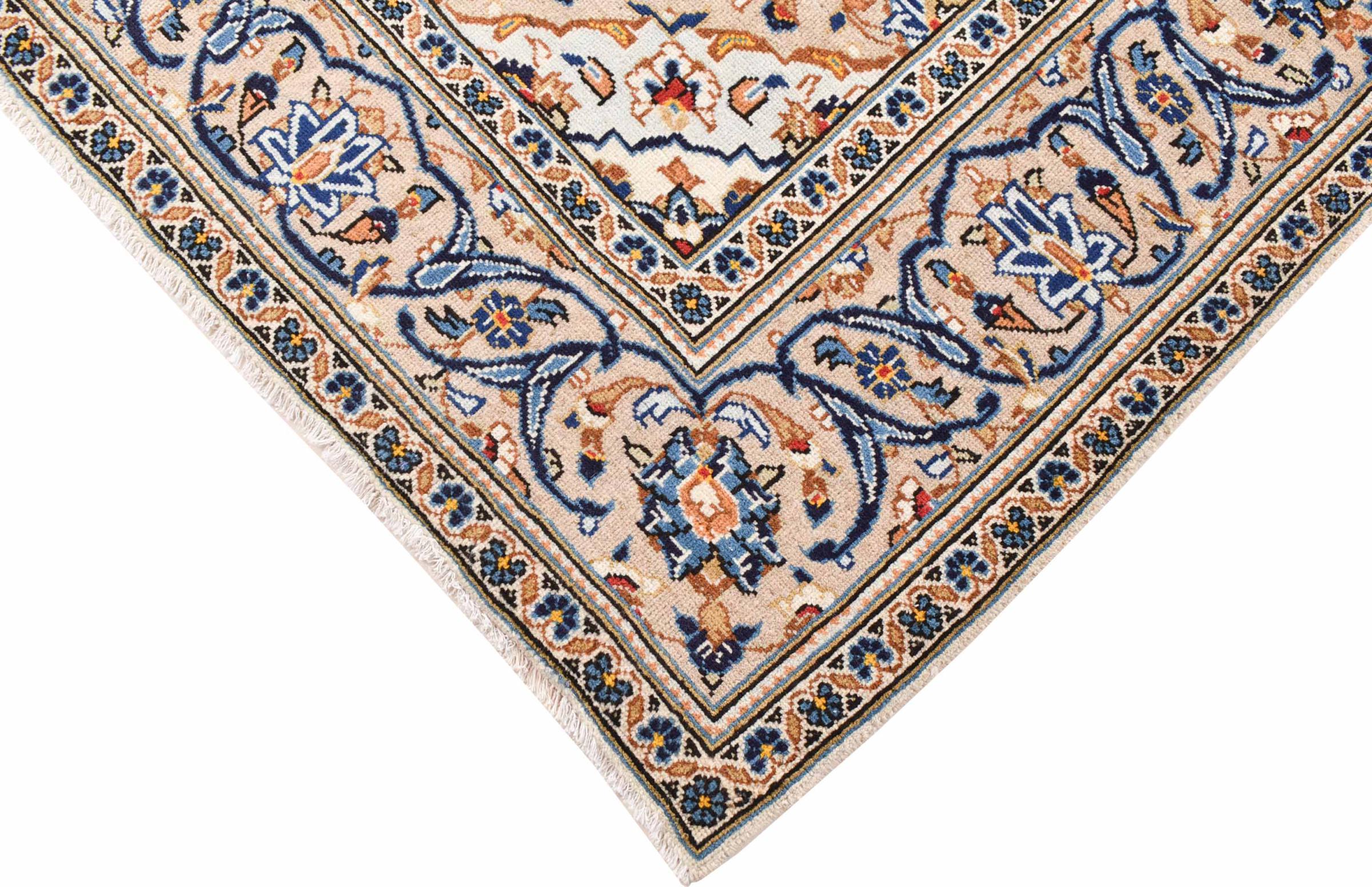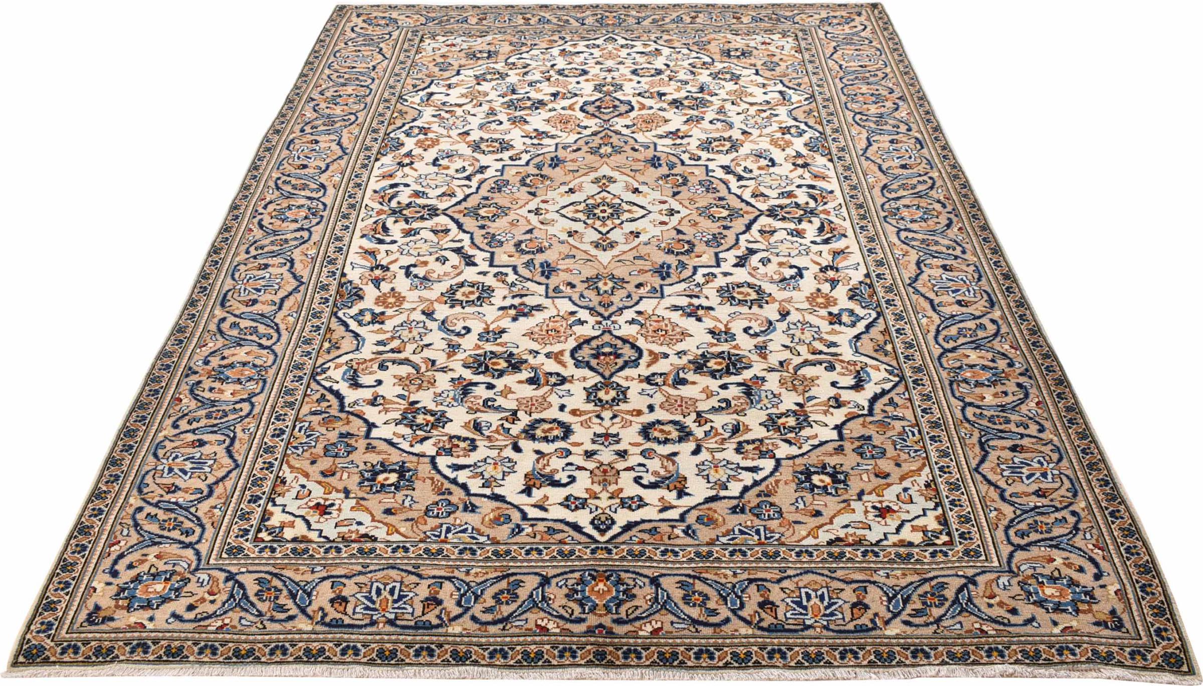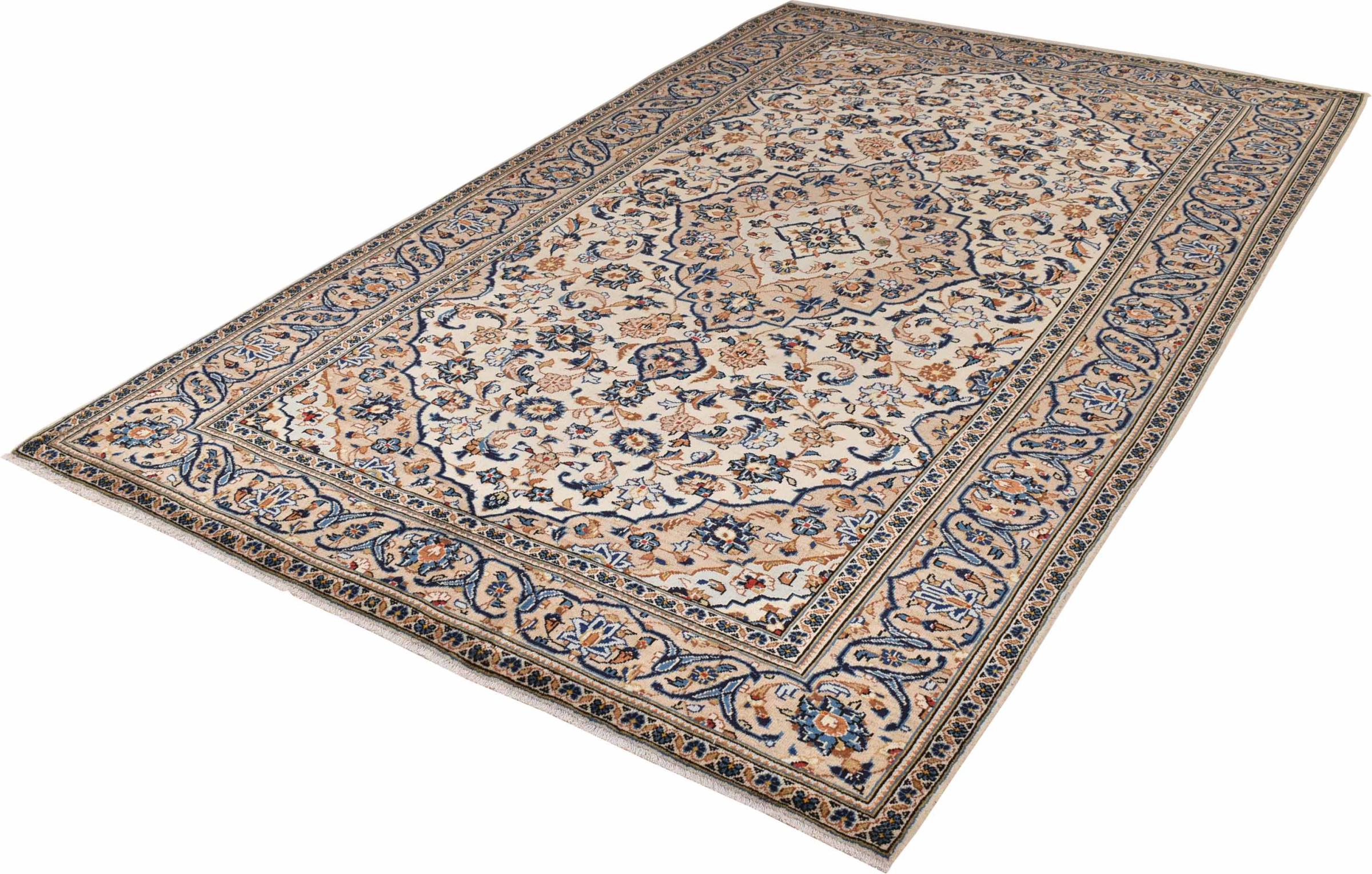 Ten dywan z Kashan (Keshan) ma bardzo tradycyjny i typowy perski wzór z pięknymi ornamentami. Dywany Kashan cieszą się dużą popularnością ze względu na ich wyjątkowo elegancki design. Dywany te pochodzą z Kaszanu, miasta leżącego na starożytnym Jedwabnym Szlaku. Ten dywan został ręcznie tkany z wysokiej jakości wełny owczej i będzie jedyną w swoim rodzaju atrakcją w Twoim domu.