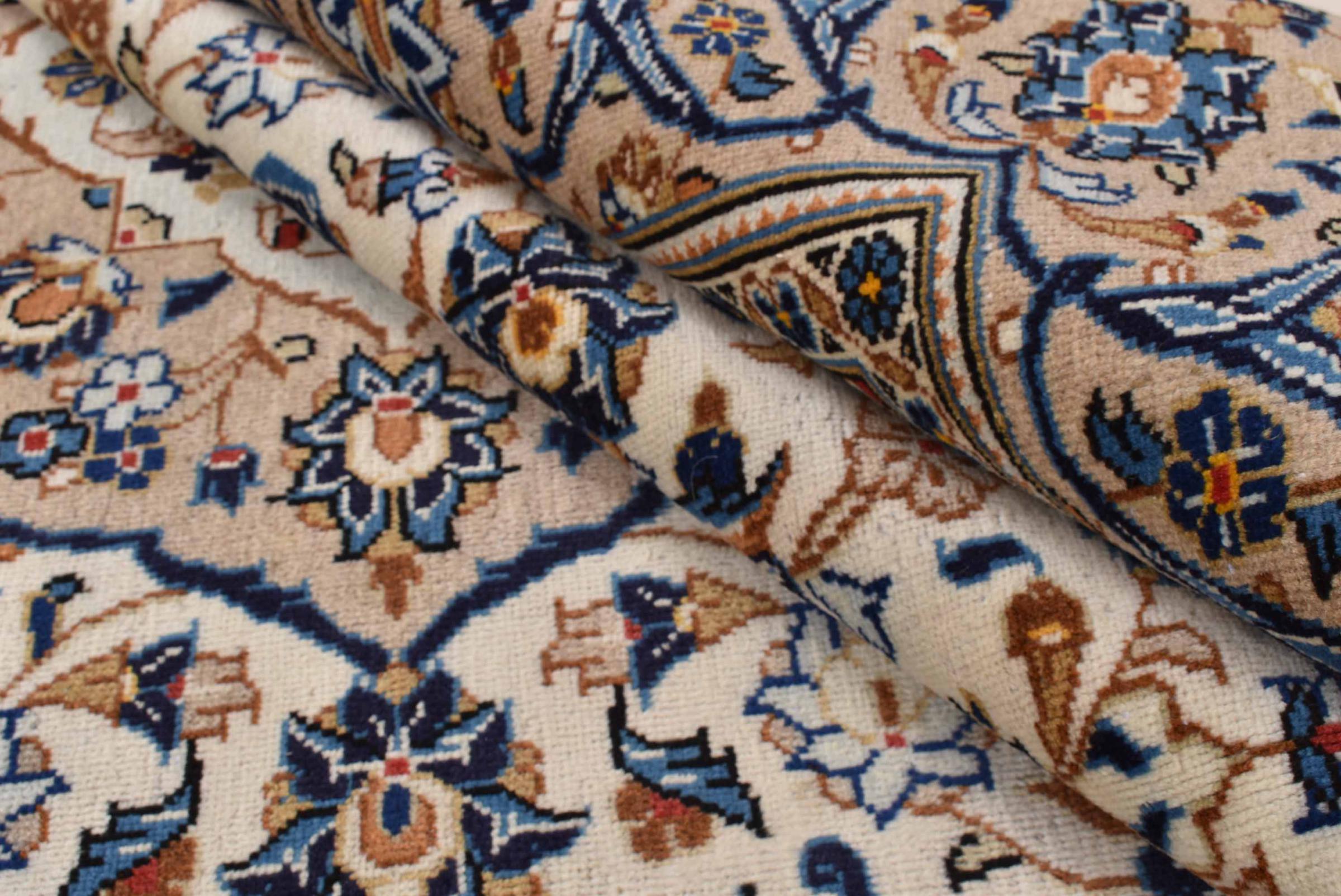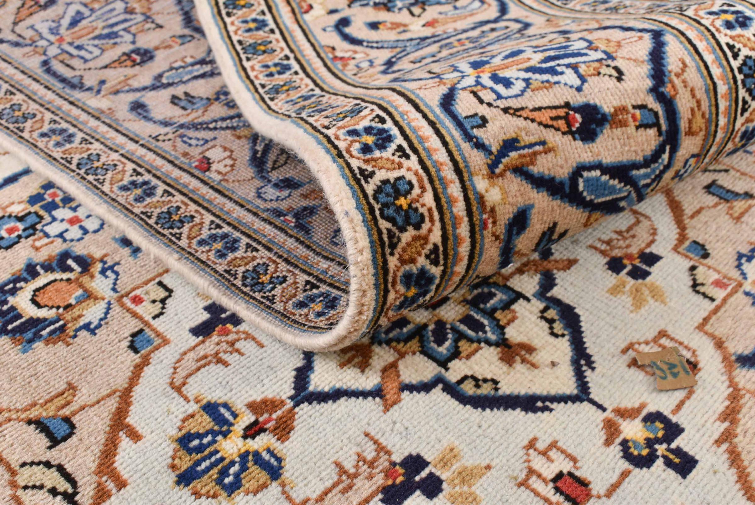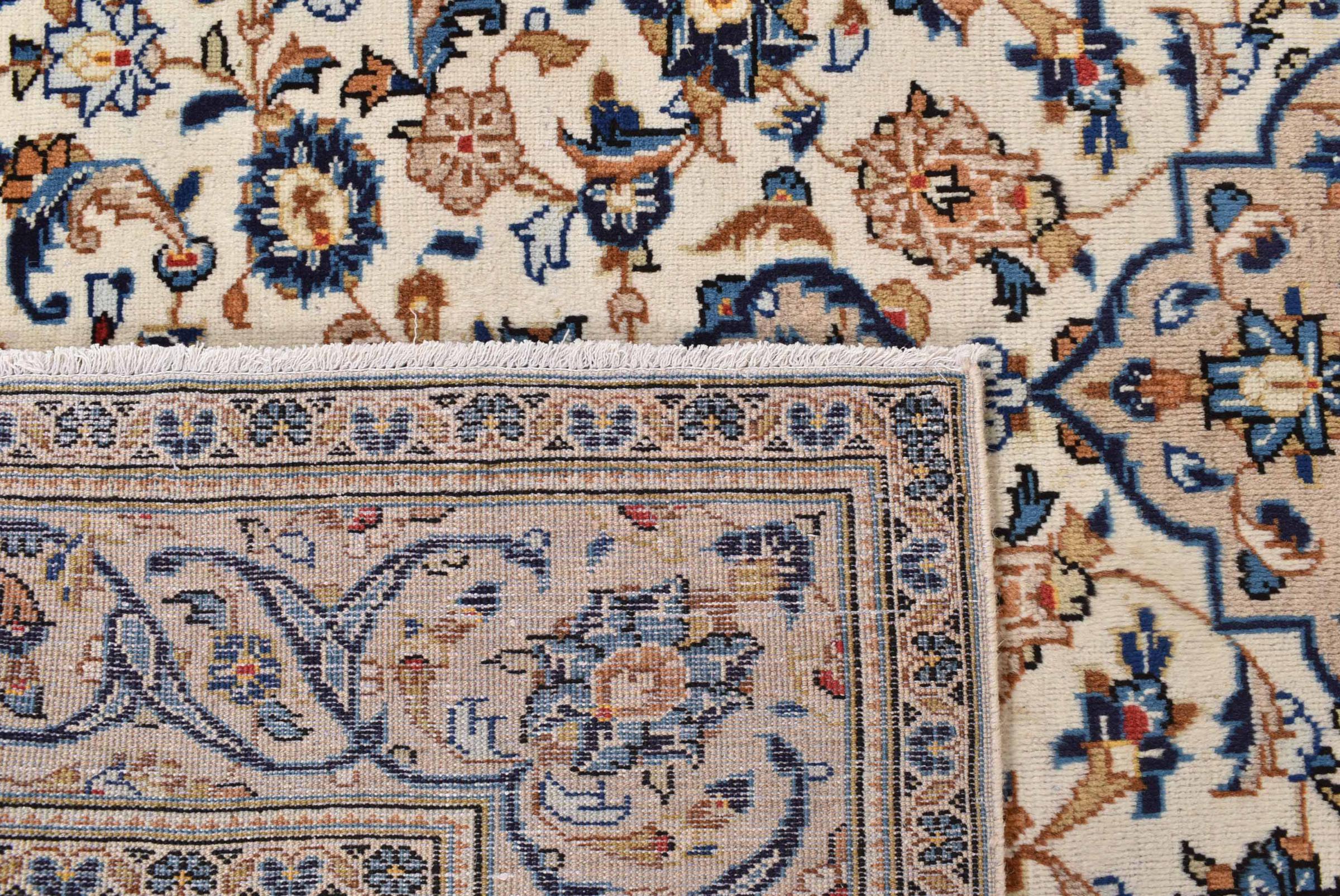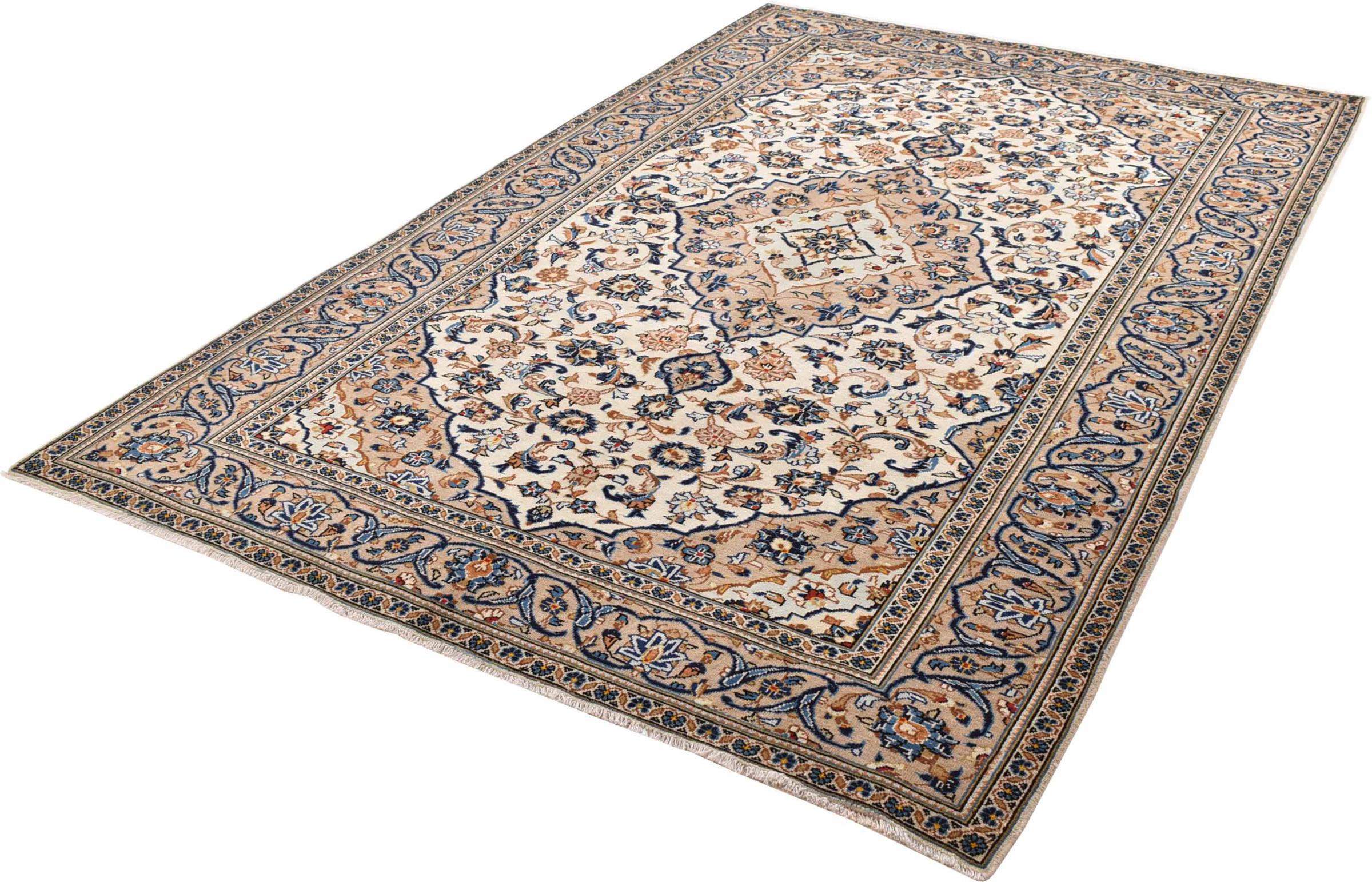 Ten dywan z Kashan (Keshan) ma bardzo tradycyjny i typowy perski wzór z pięknymi ornamentami. Dywany Kashan cieszą się dużą popularnością ze względu na ich wyjątkowo elegancki design. Dywany te pochodzą z Kaszanu, miasta leżącego na starożytnym Jedwabnym Szlaku. Ten dywan został ręcznie tkany z wysokiej jakości wełny owczej i będzie jedyną w swoim rodzaju atrakcją w Twoim domu.